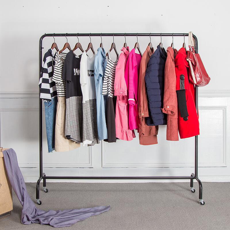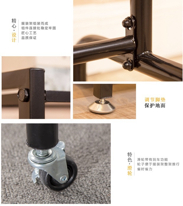 可移动服装店衣架展示架黑色简约铁艺商场货架落地陈列服装架带轮