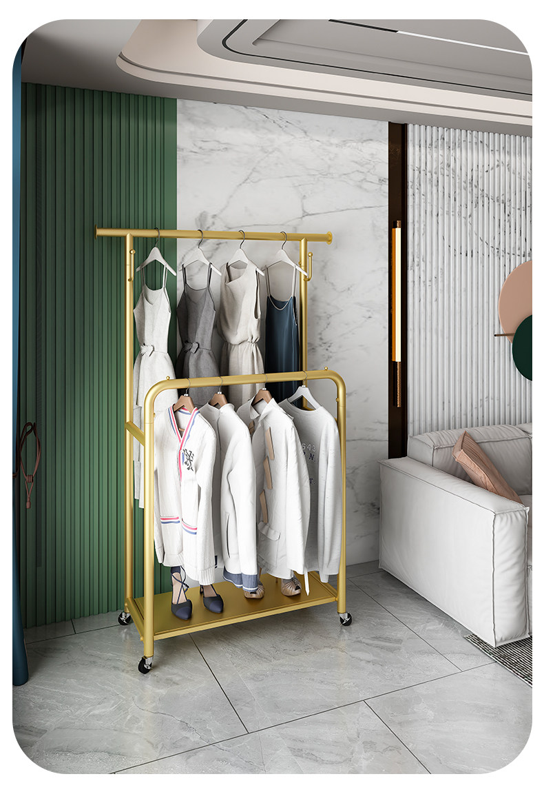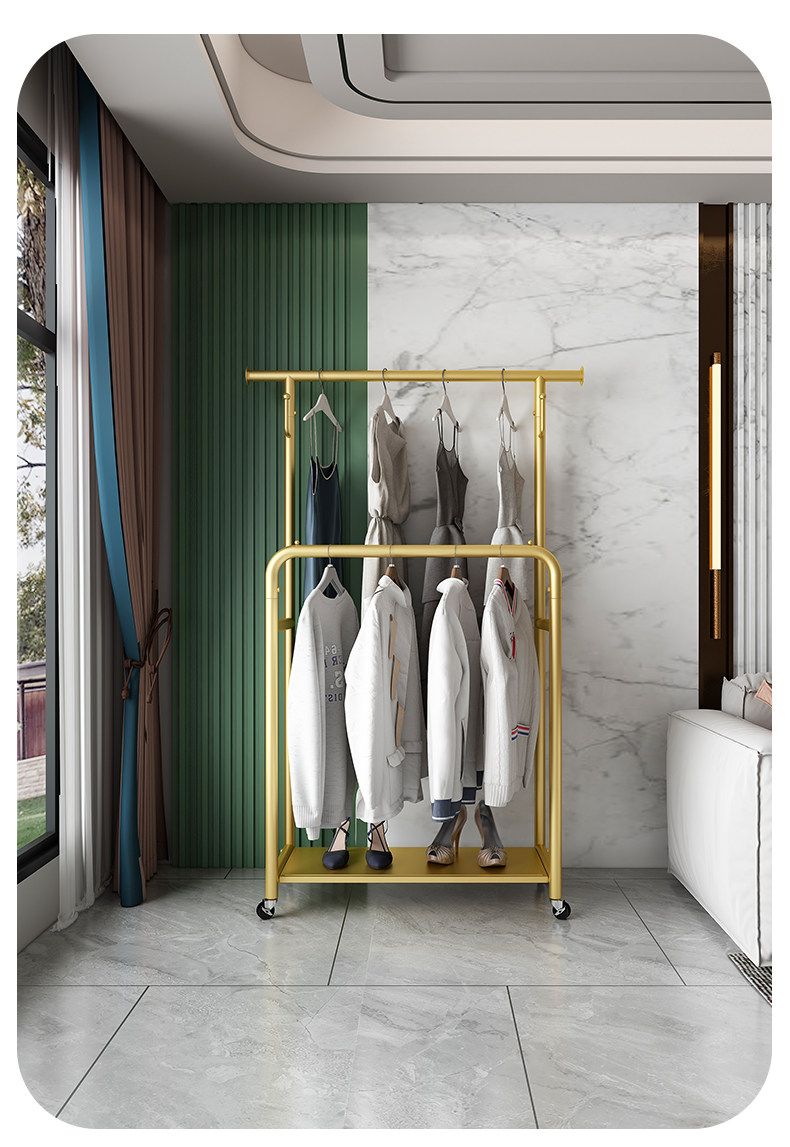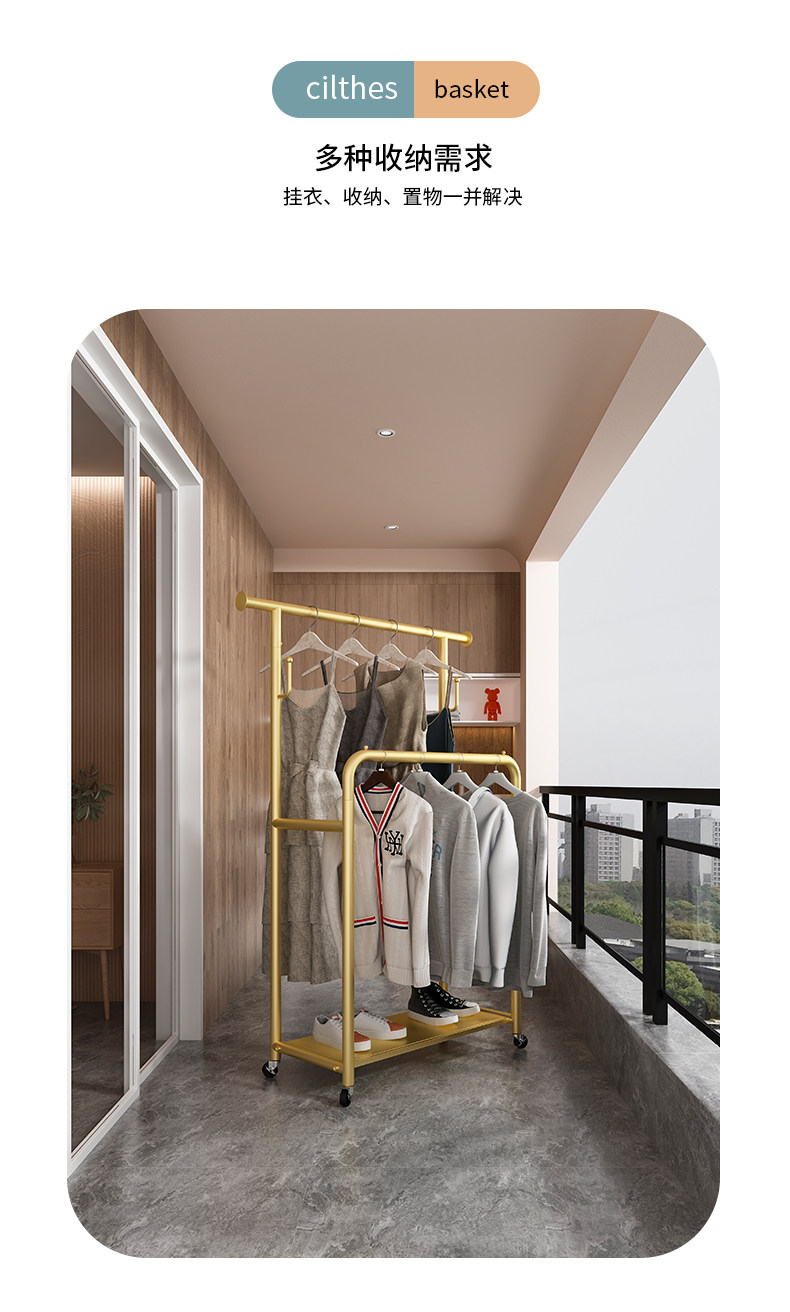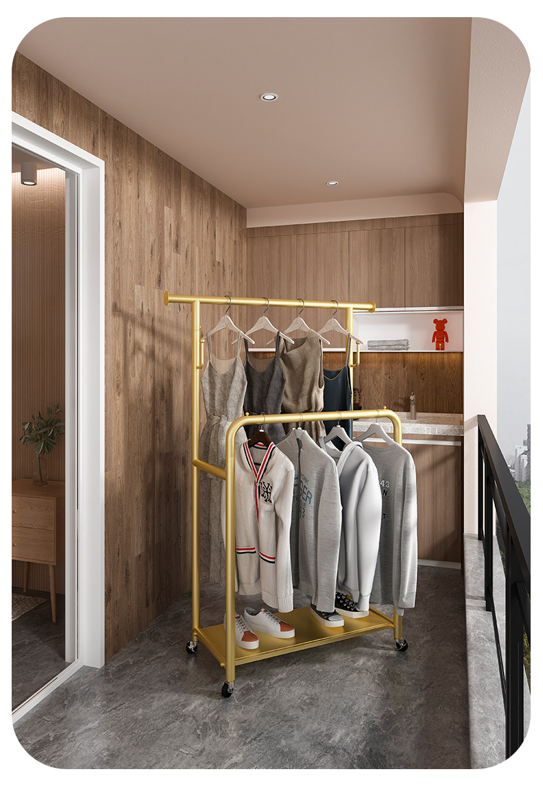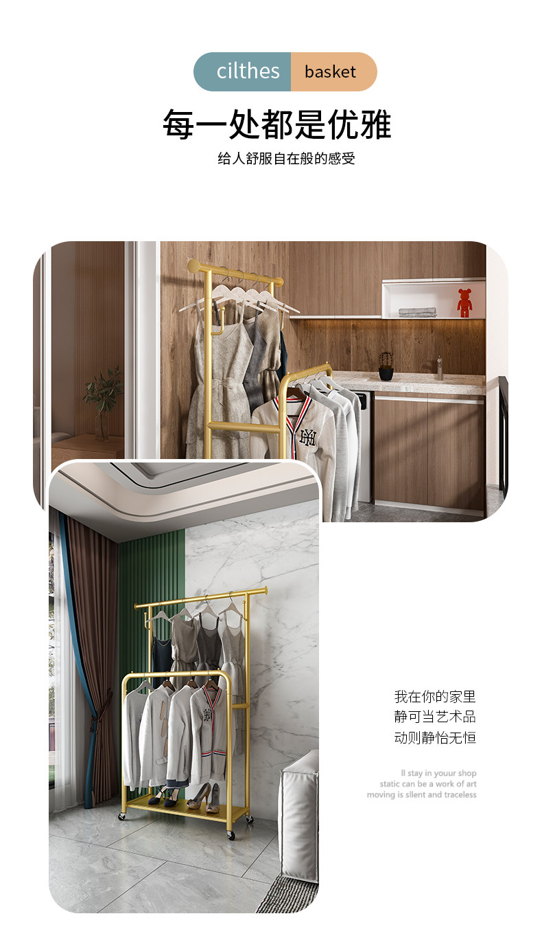 北欧双层带板移动晾衣架落地式卧室衣帽架家用阳台鞋包挂衣架带轮