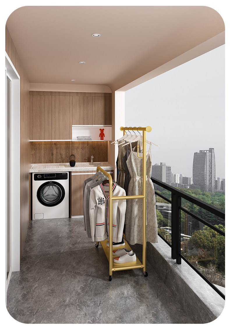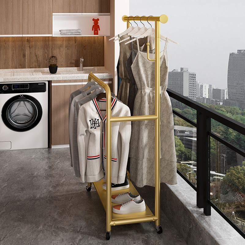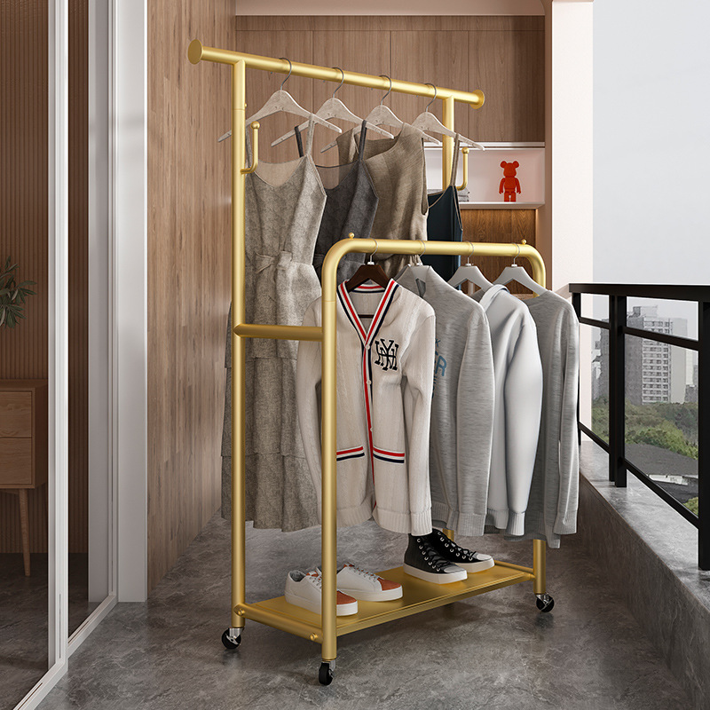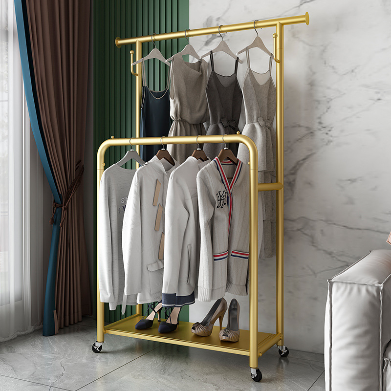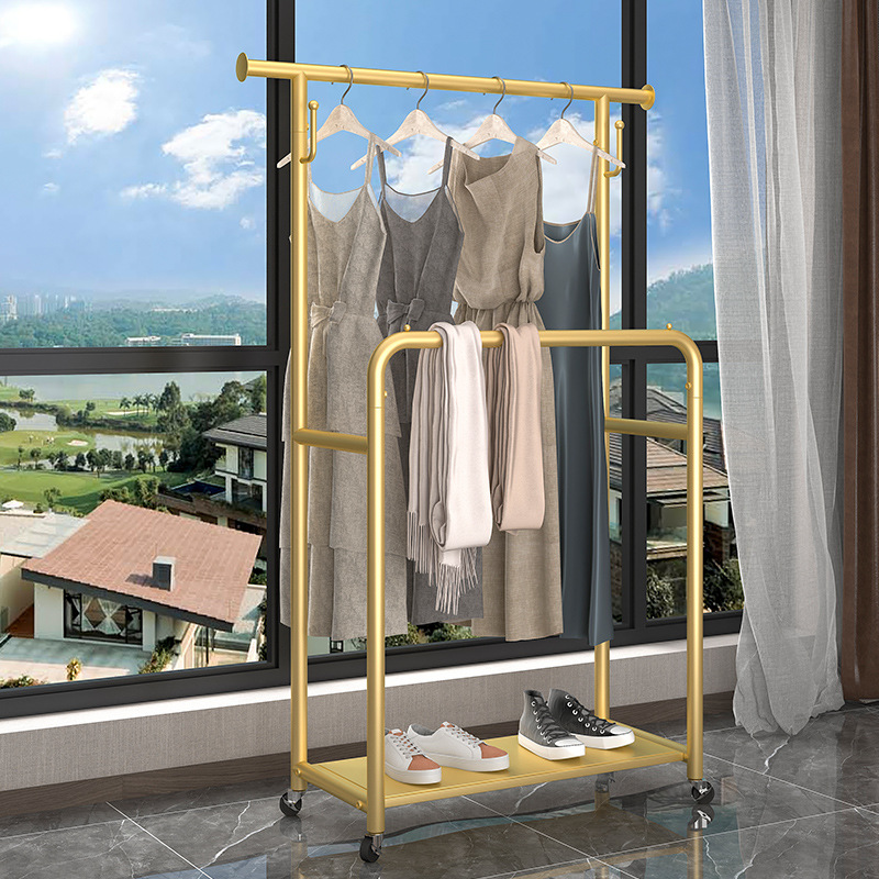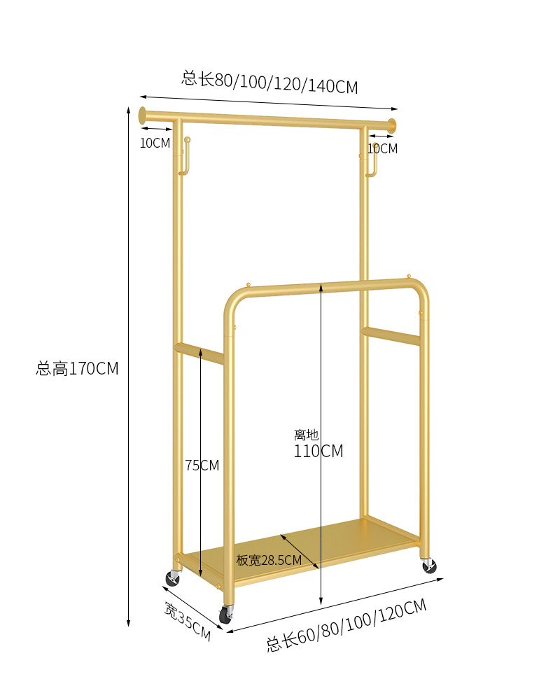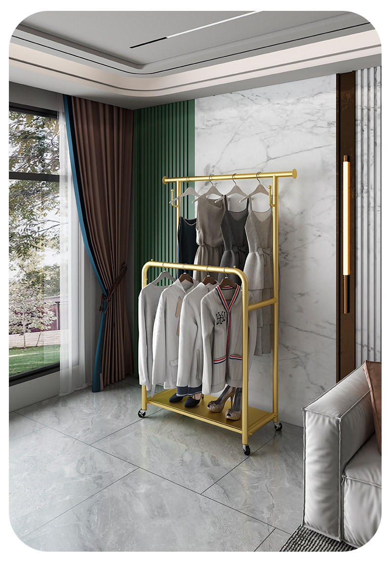 北欧双层带板移动晾衣架落地式卧室衣帽架家用阳台鞋包挂衣架带轮