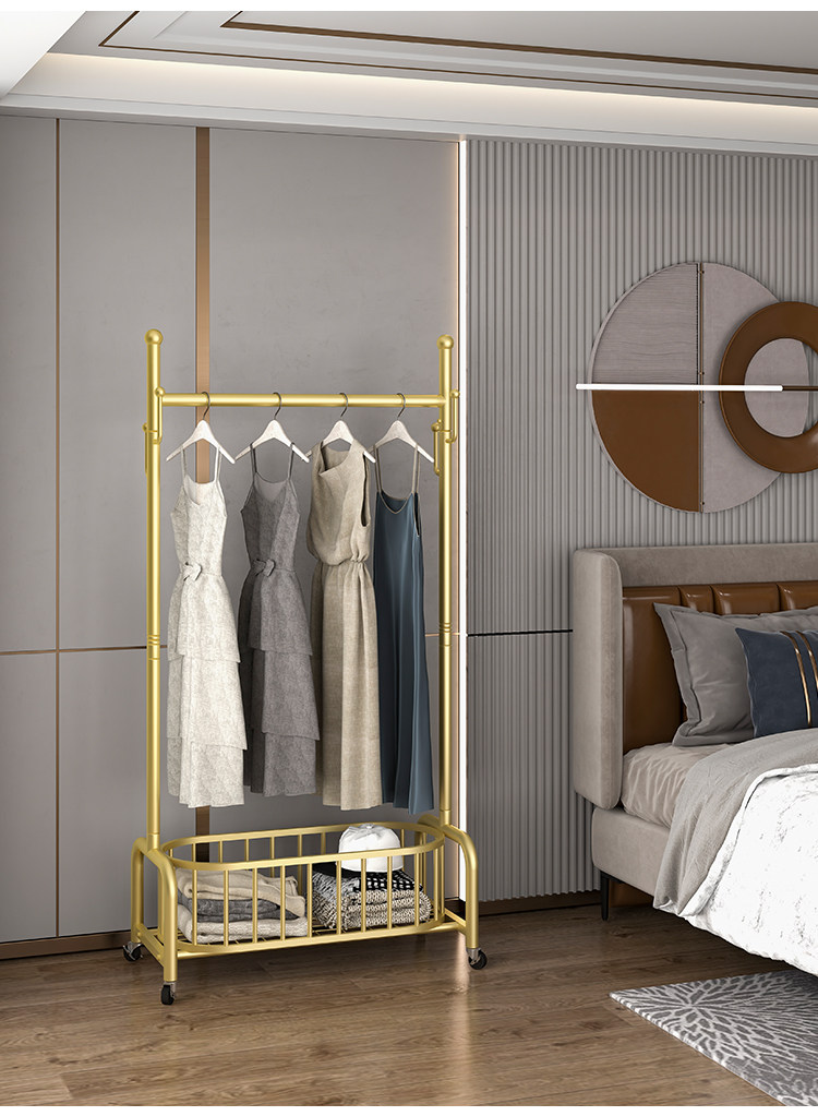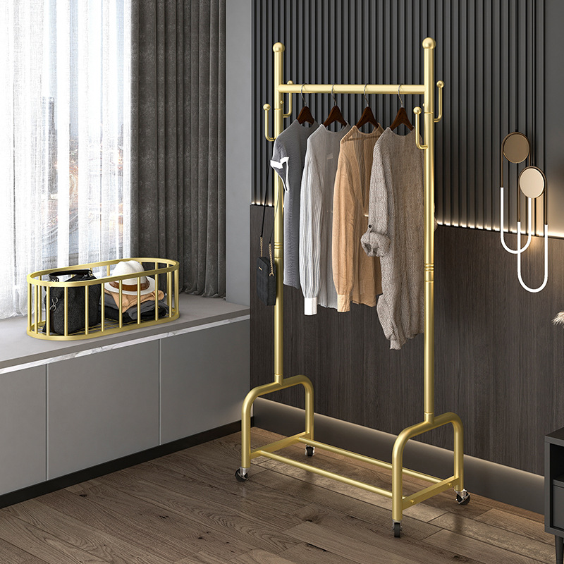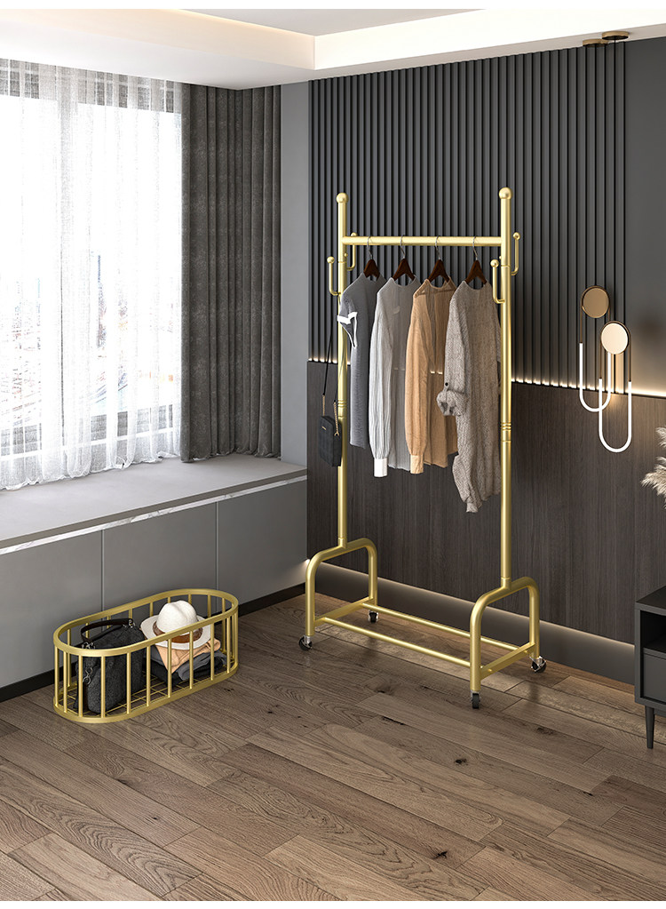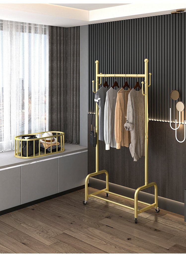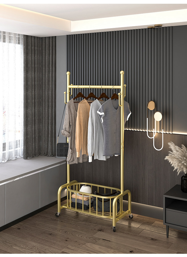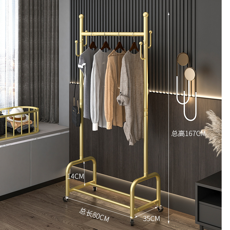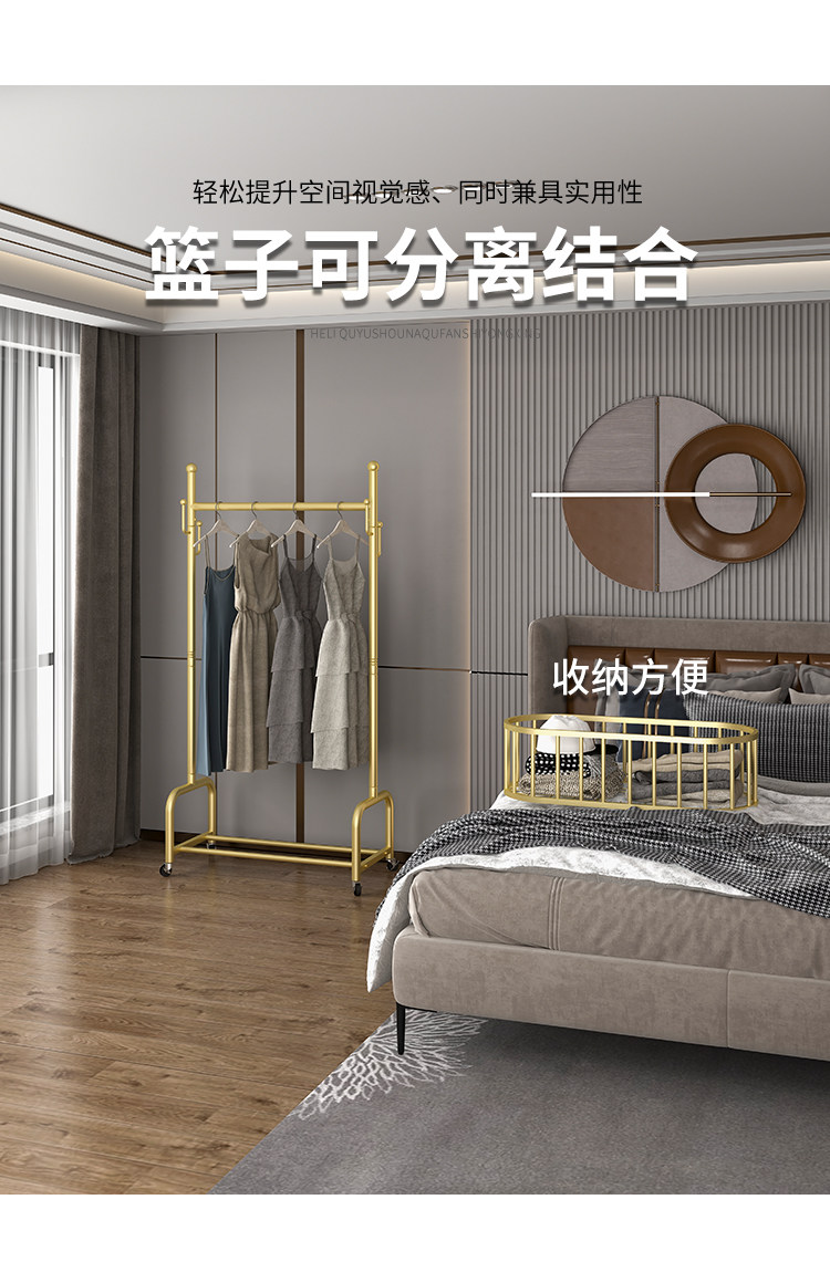 衣架落地卧室挂衣架家用轻奢客厅衣帽架可移动带轮晾衣服架子简约