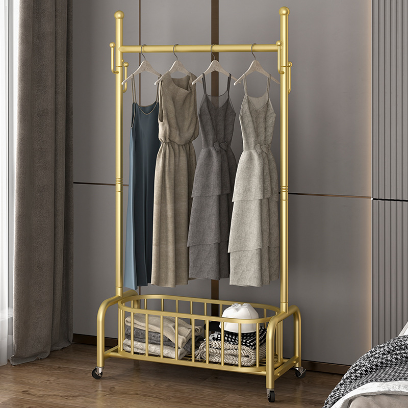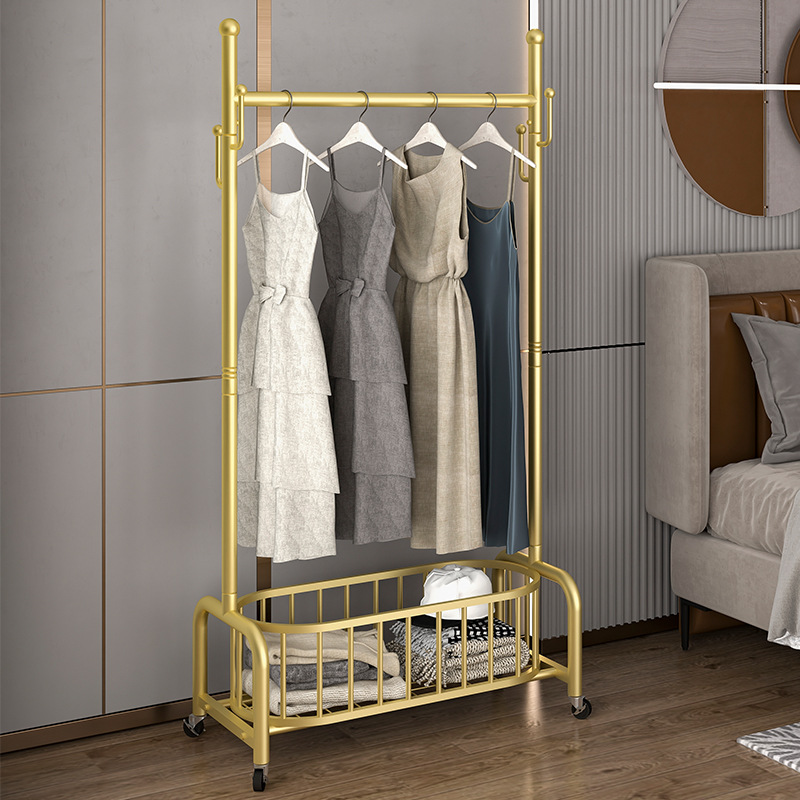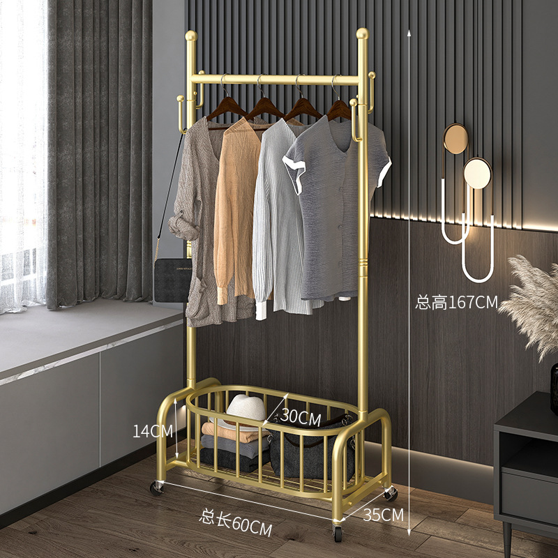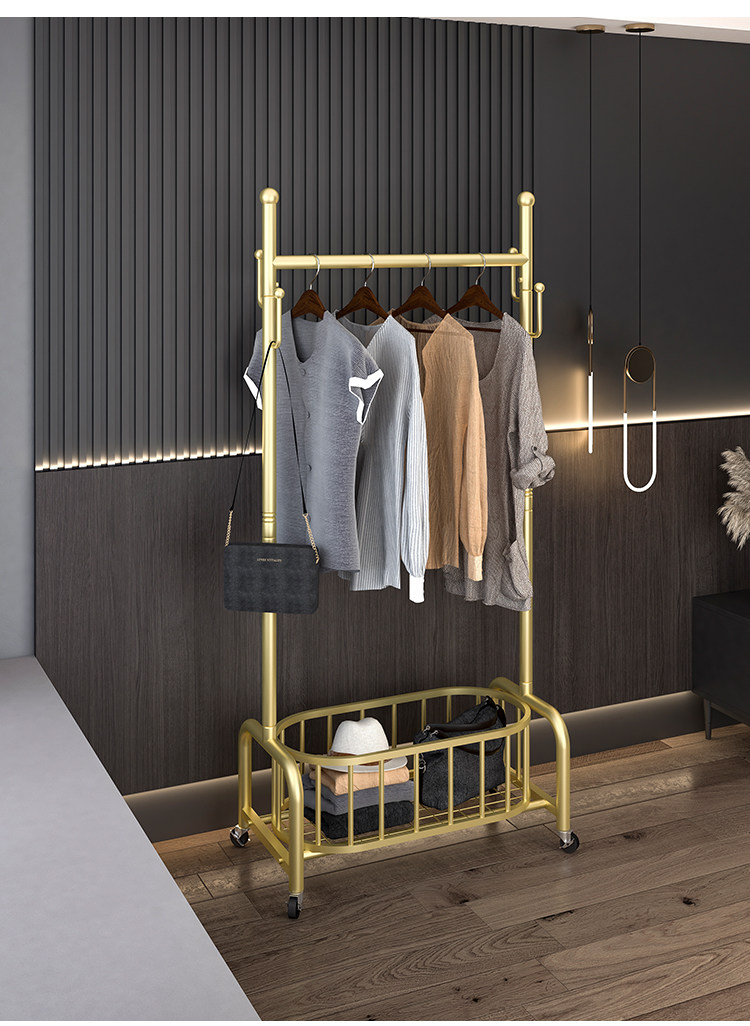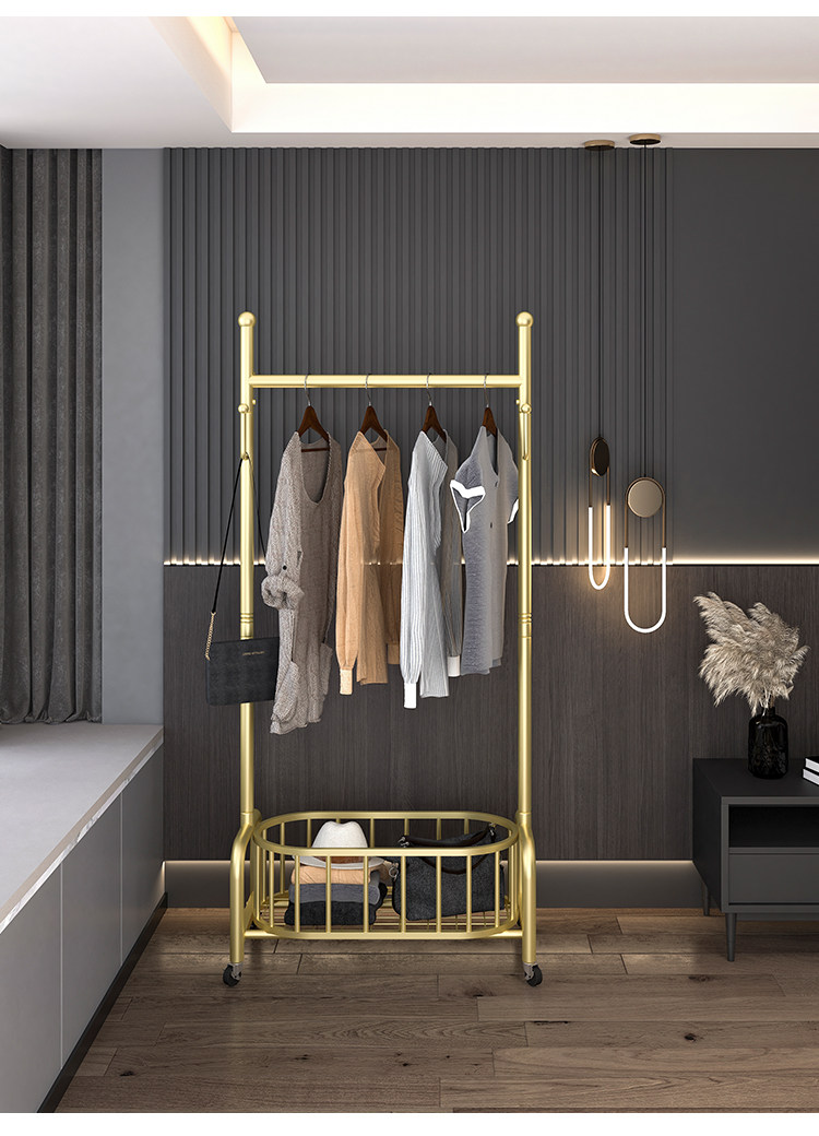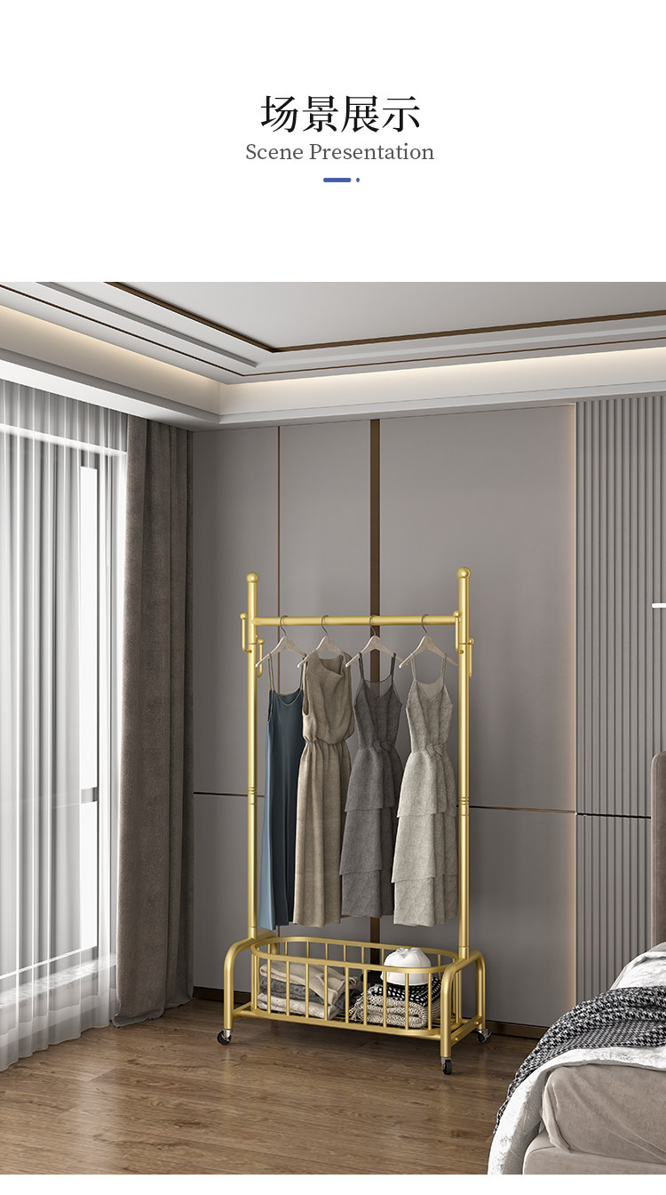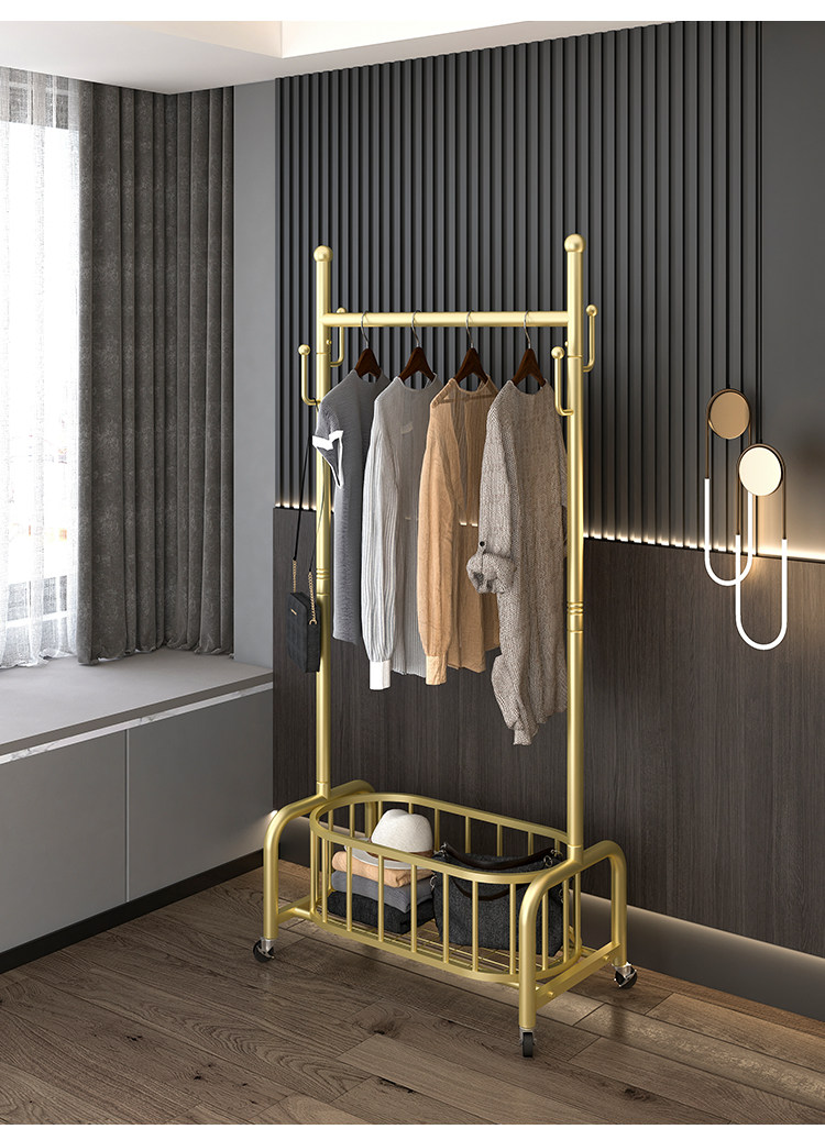 衣架落地卧室挂衣架家用轻奢客厅衣帽架可移动带轮晾衣服架子简约