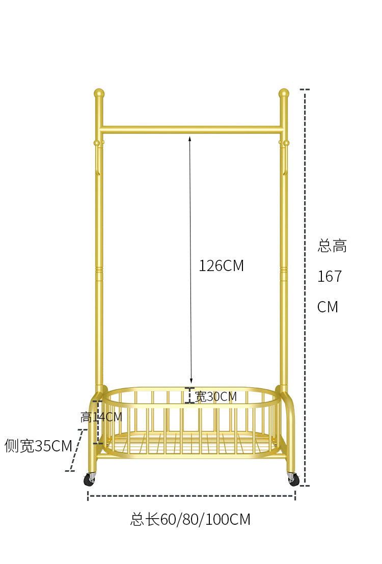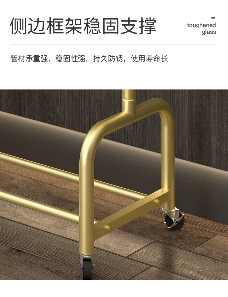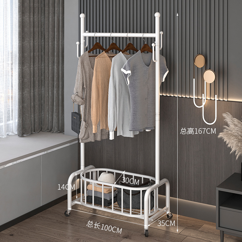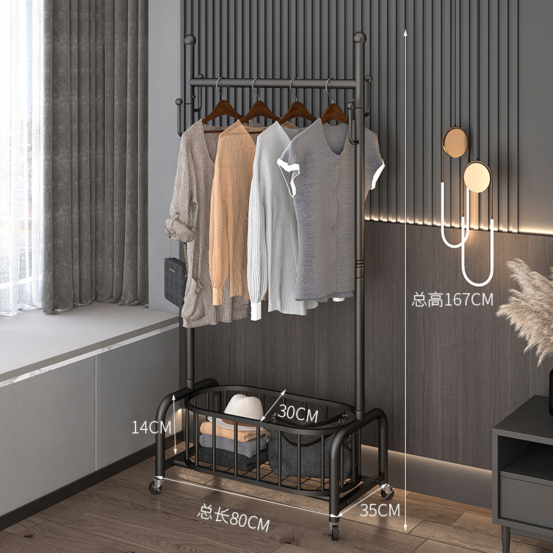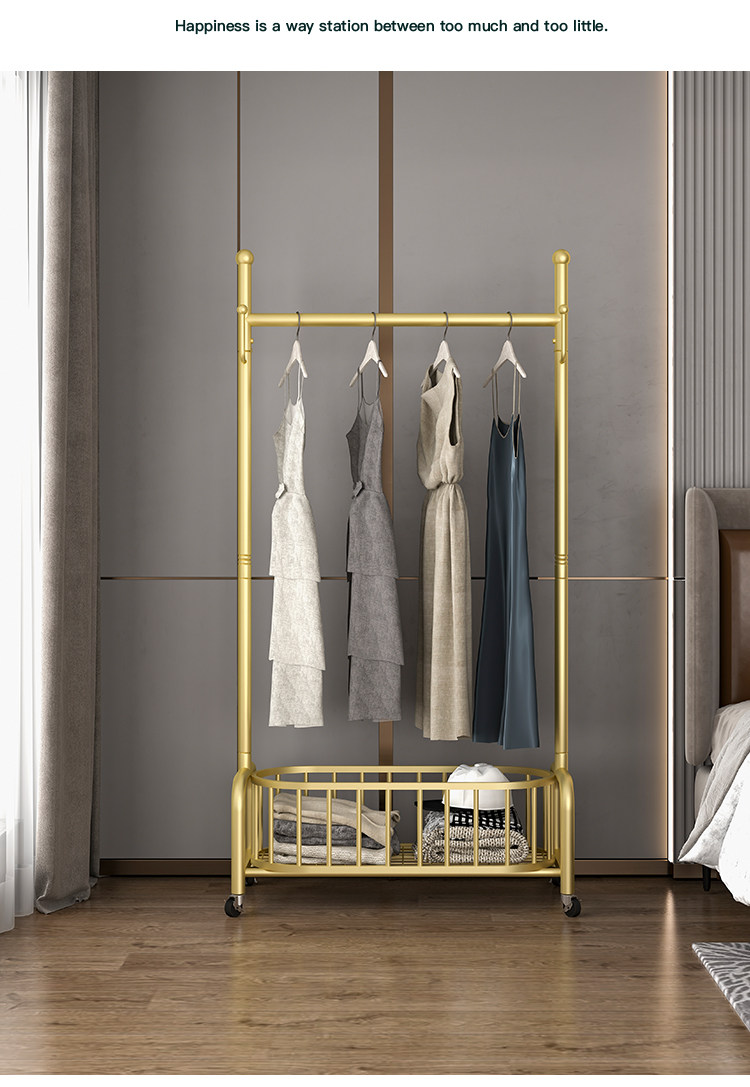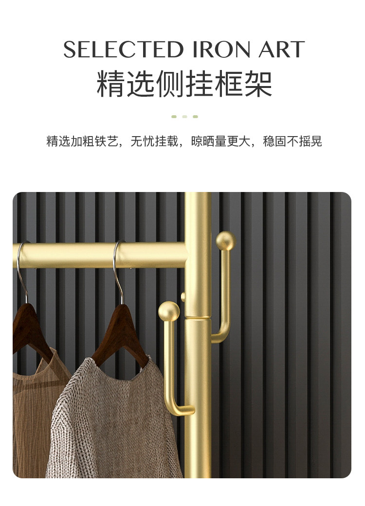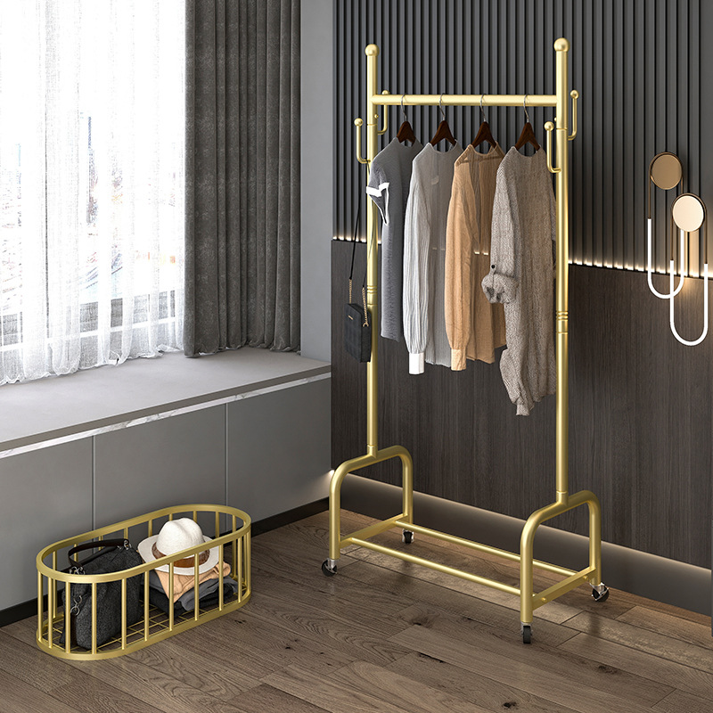 衣架落地卧室挂衣架家用轻奢客厅衣帽架可移动带轮晾衣服架子简约