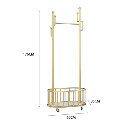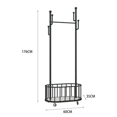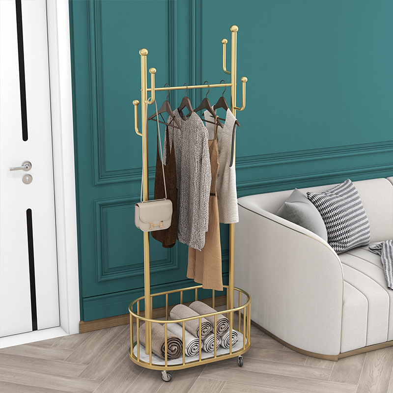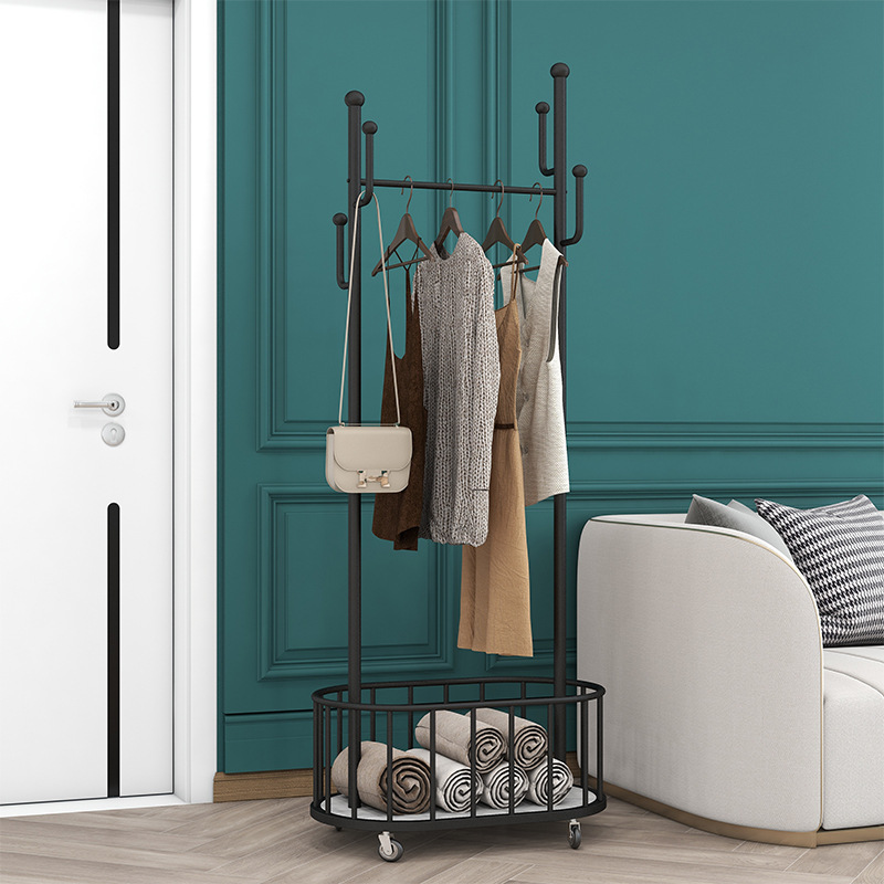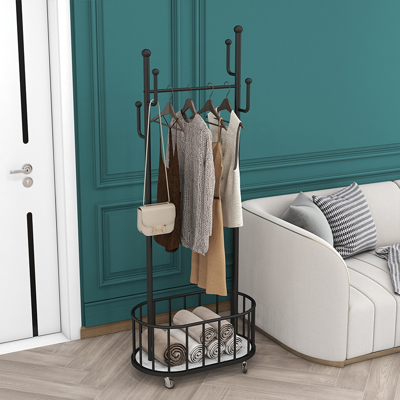 可移动挂衣架落地卧室简约铁艺架子家用多功能室内带篮子衣帽架