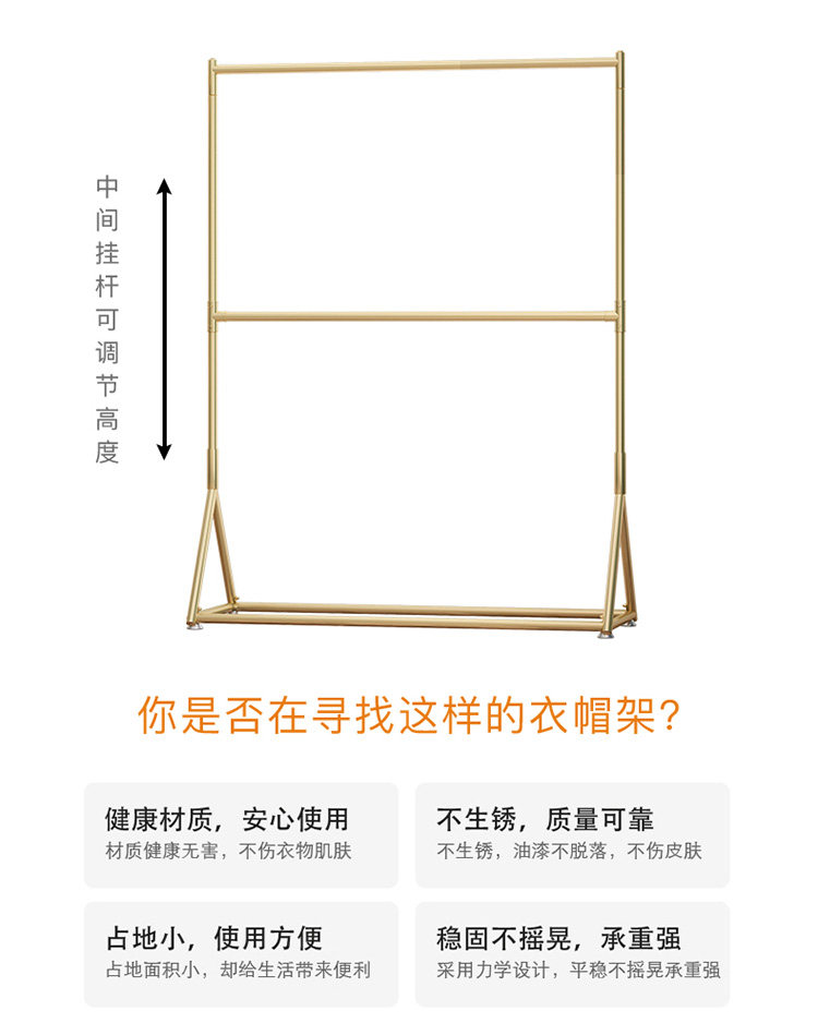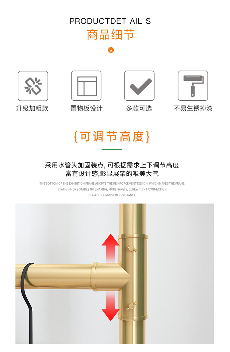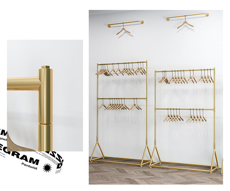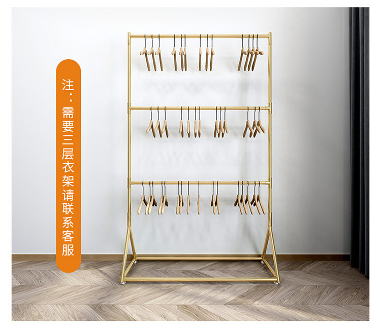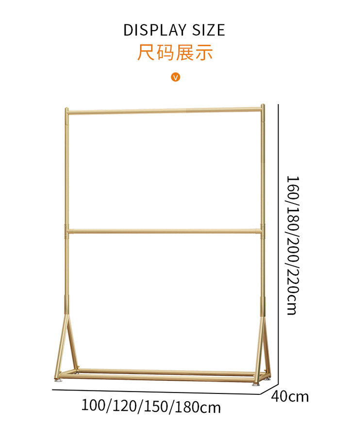 服装店金色服装架双层可升降调节挂衣架童装店展示架男女装店衣架