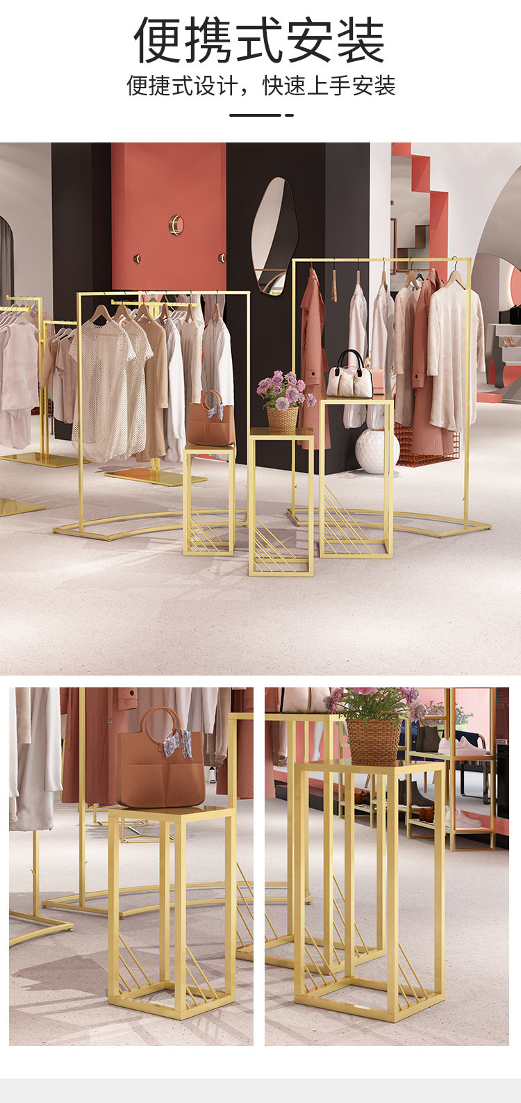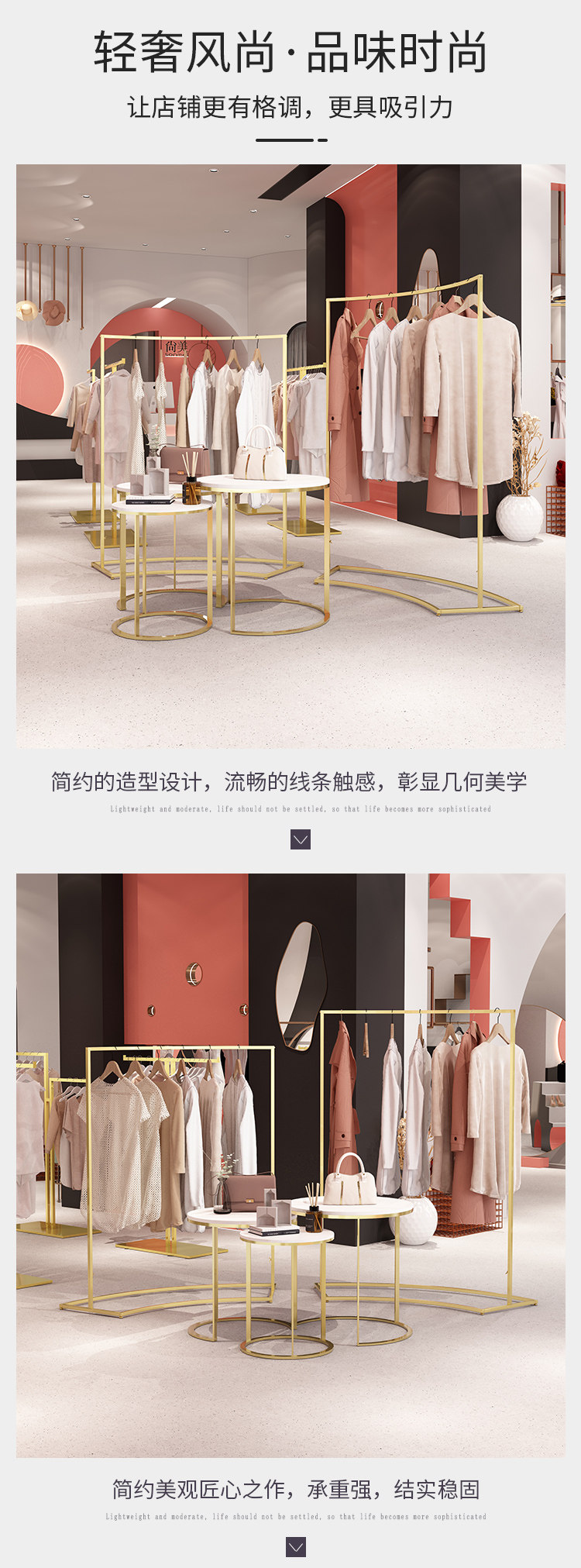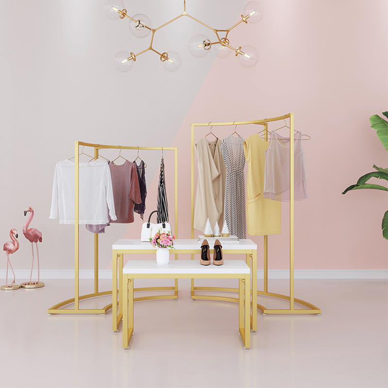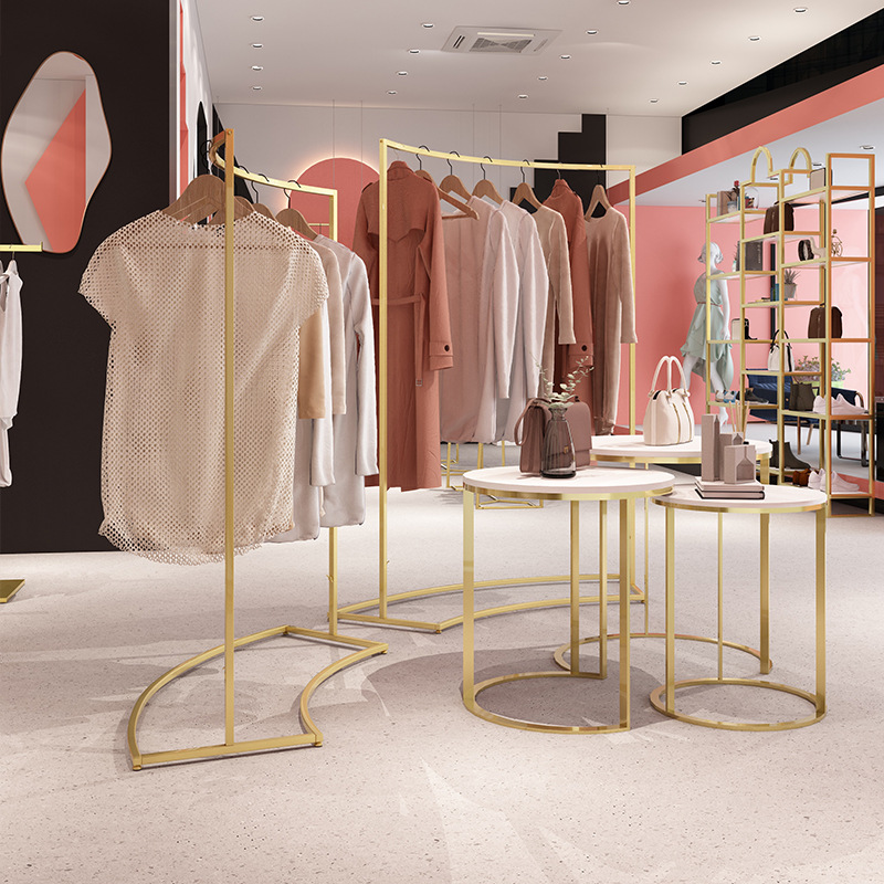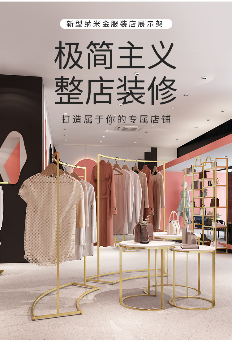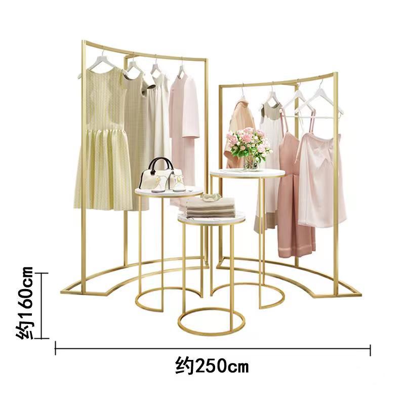 金色服装店展示架圆形中岛架简约橱窗展示桌示柜衣架流水台货架