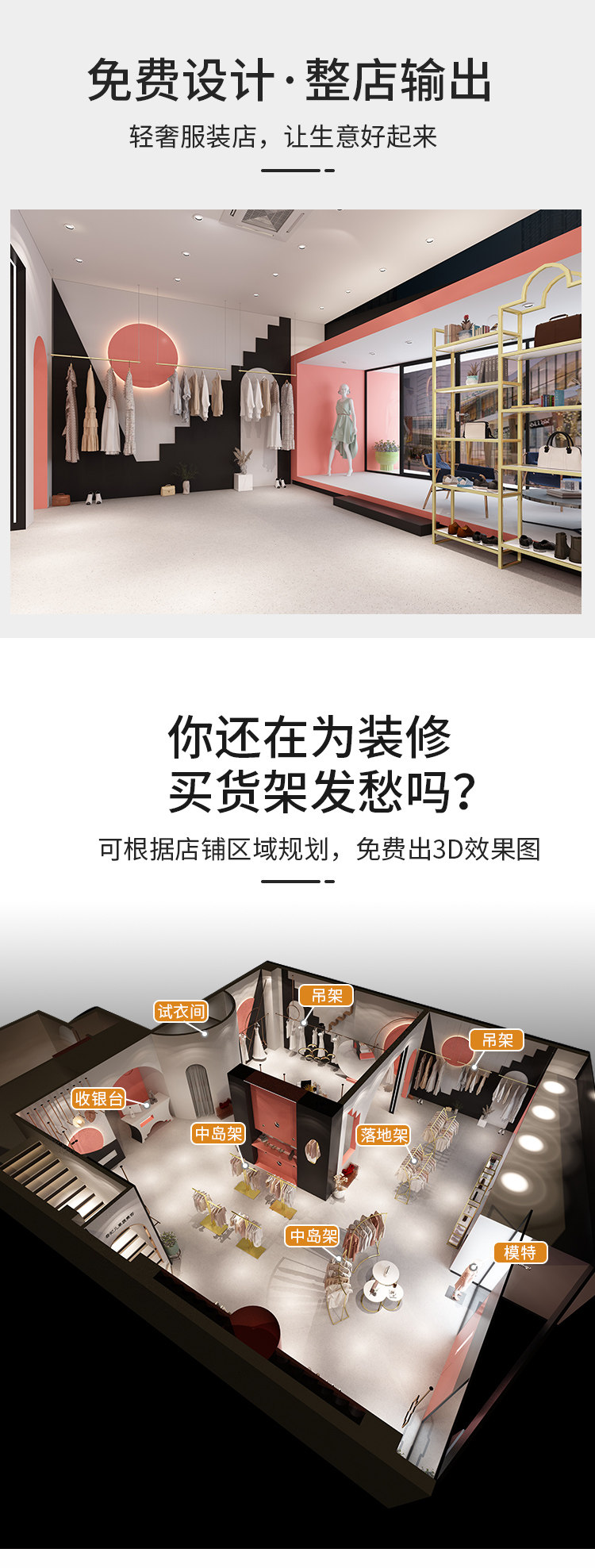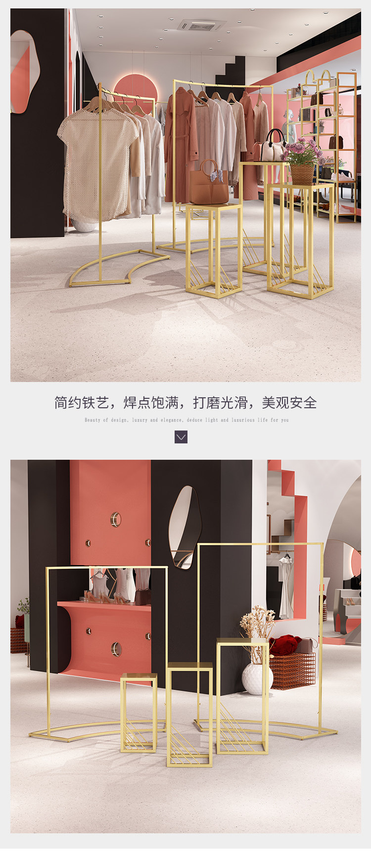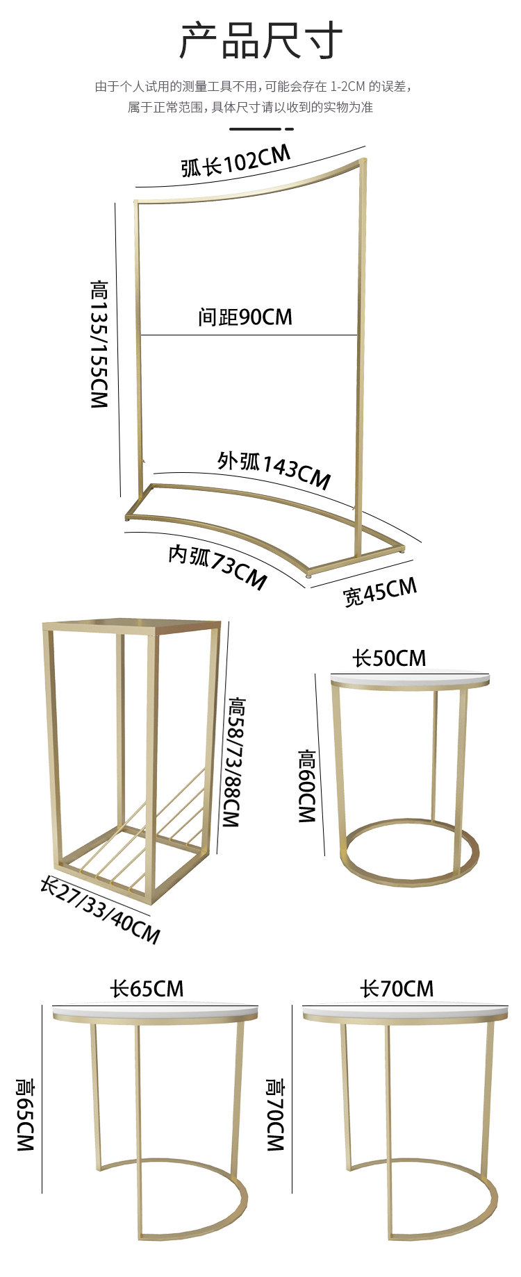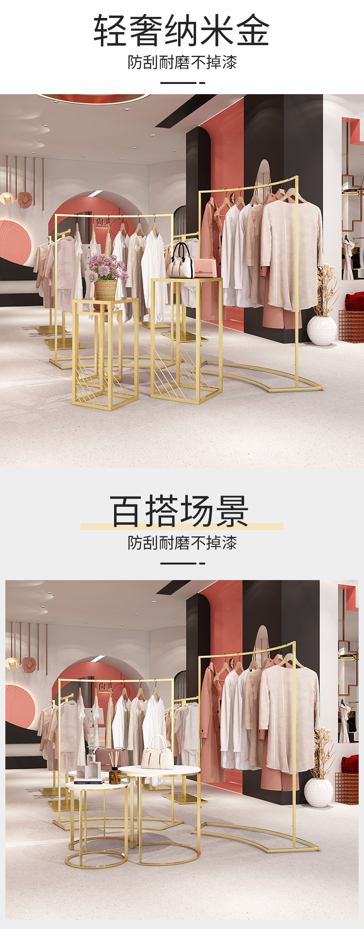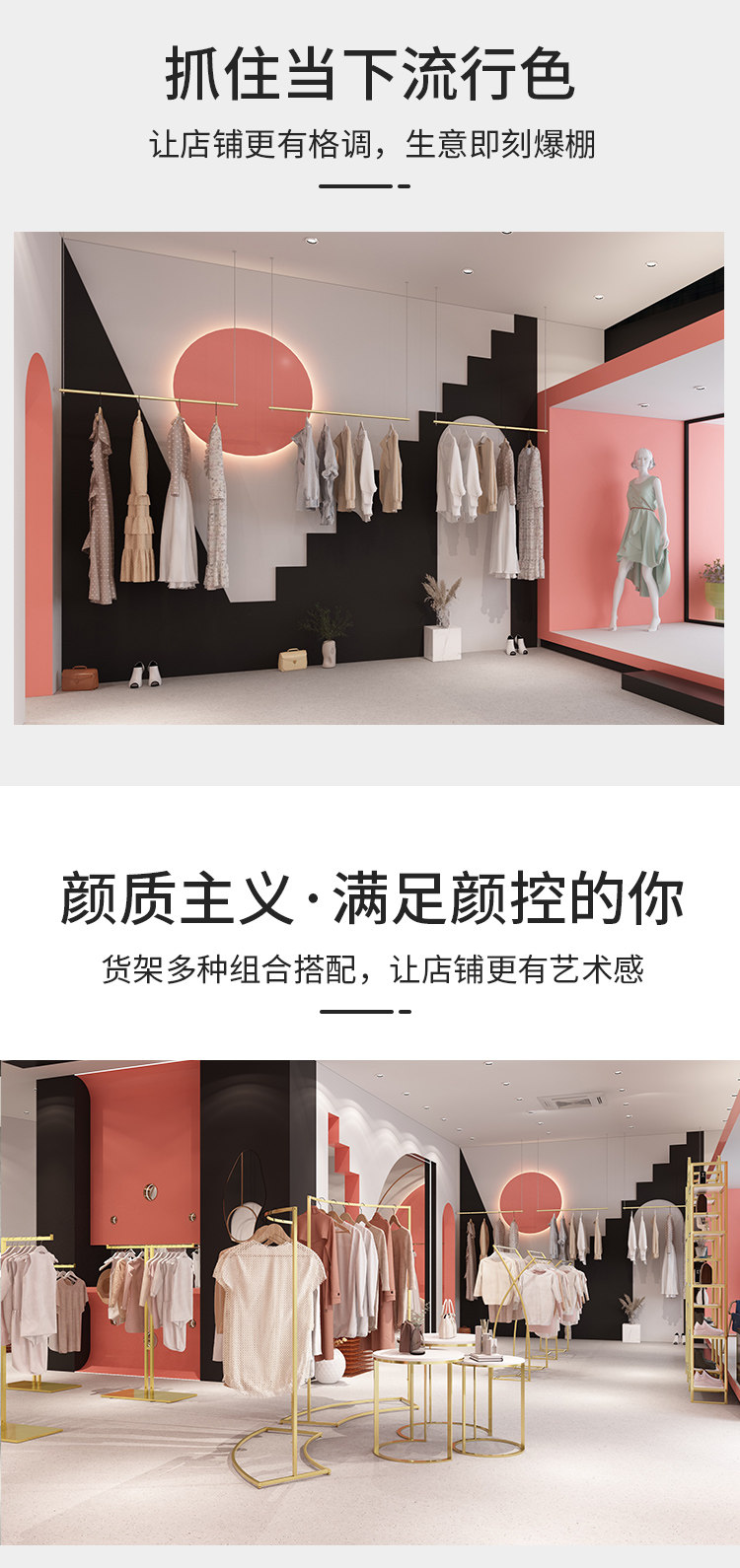 金色服装店展示架圆形中岛架简约橱窗展示桌示柜衣架流水台货架