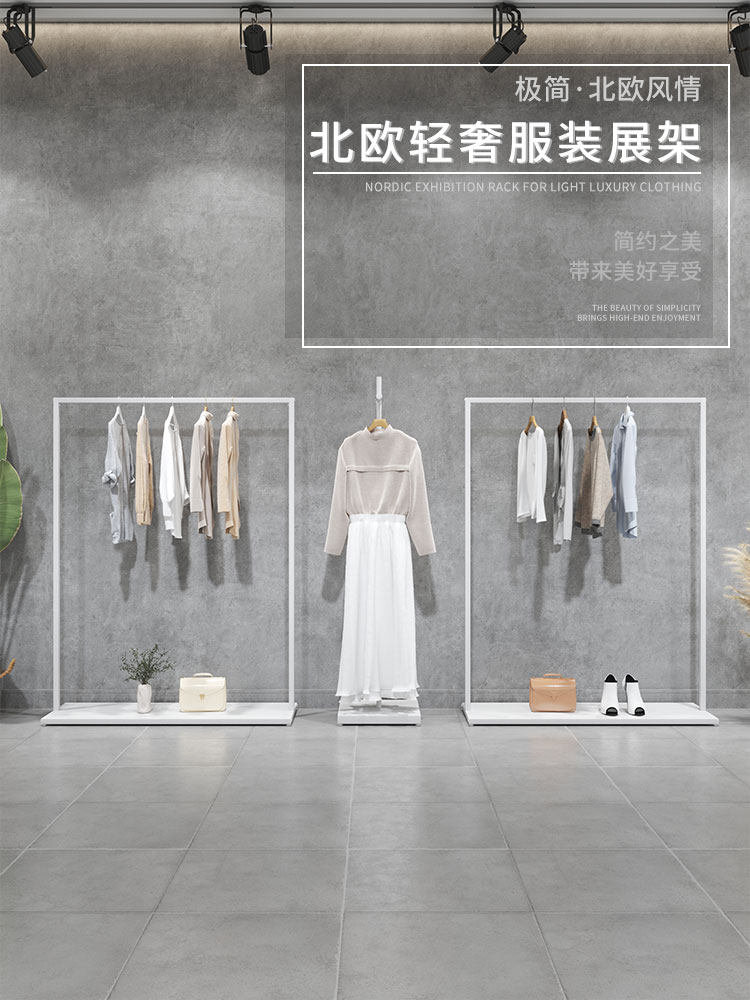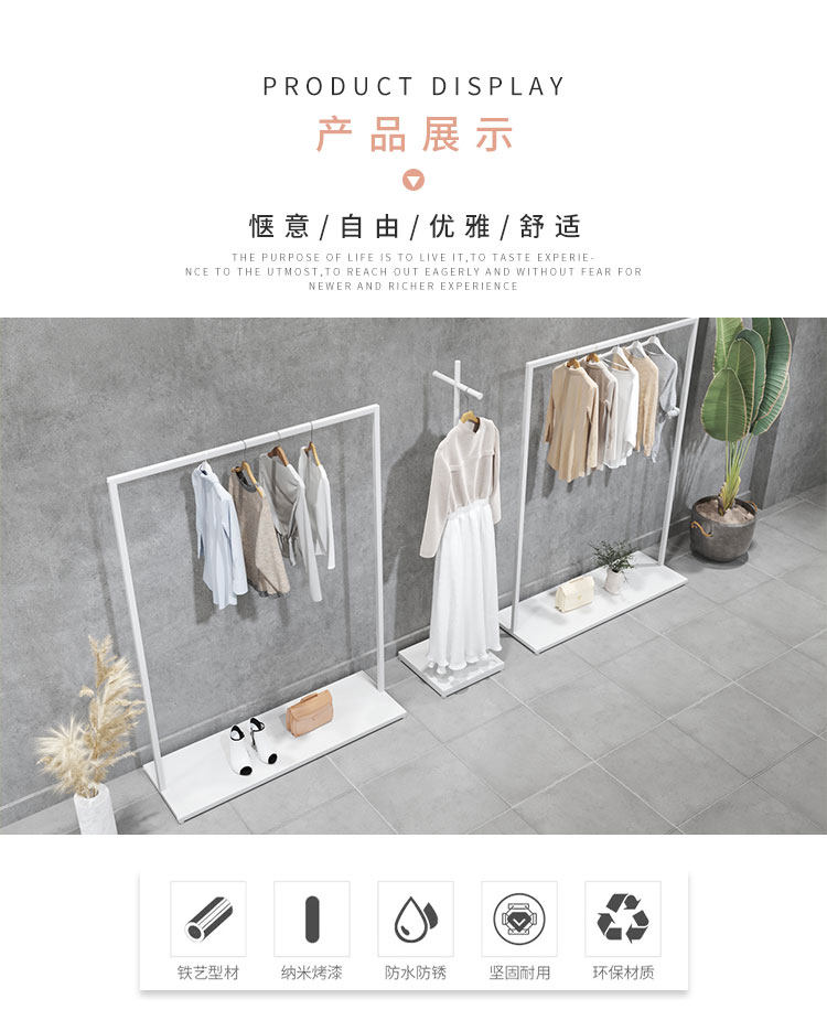 服装店展示架白色服装架简约正挂女装店货架挂衣架陈列侧挂落地式