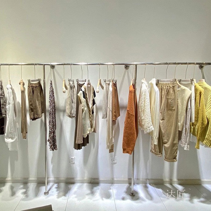 女装店加厚不锈钢上墙展示架壁挂式挂衣服架子转角靠墙服装展示架