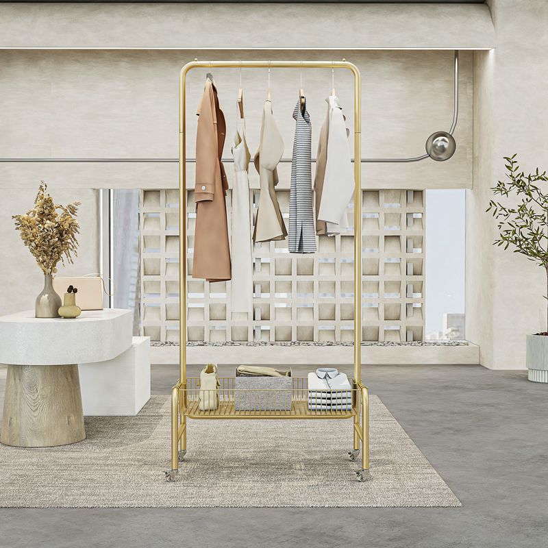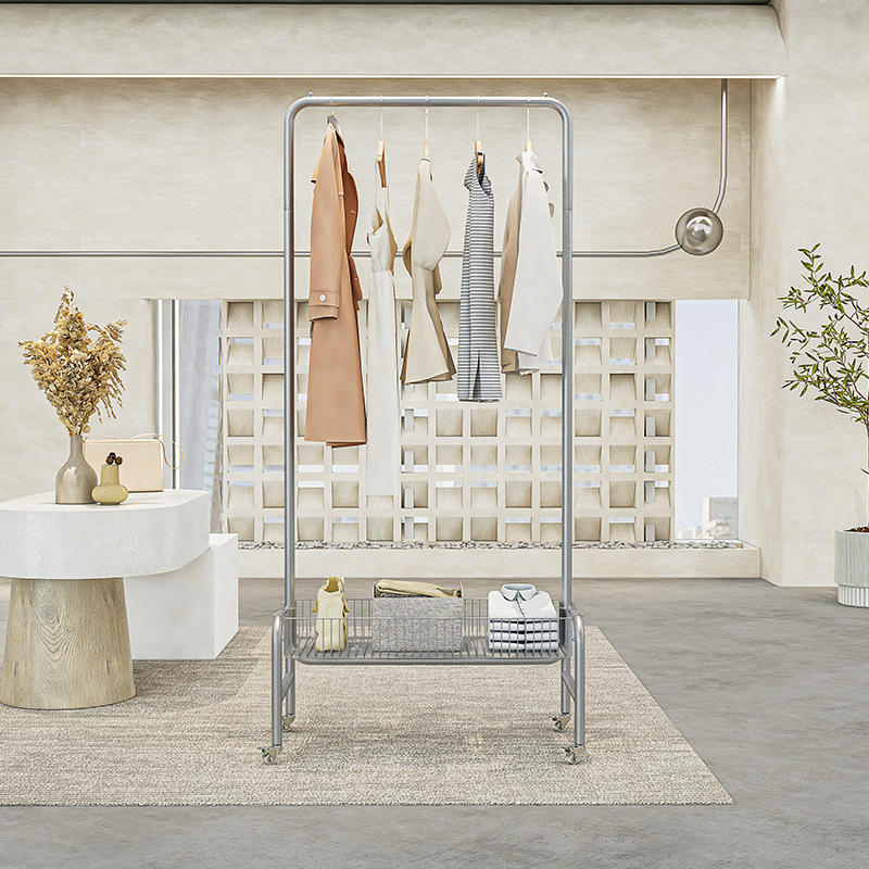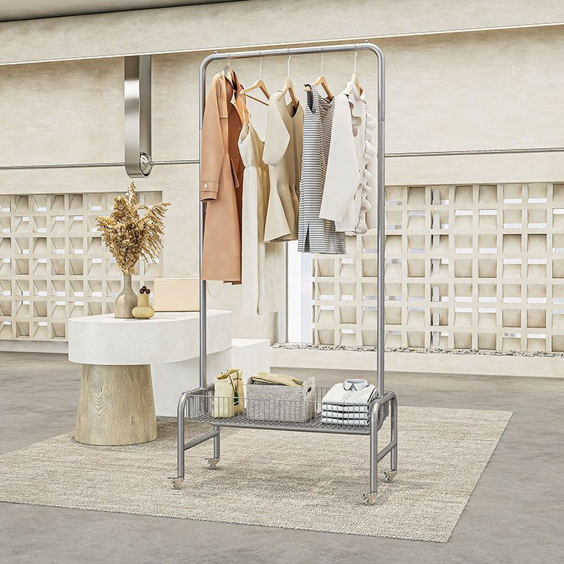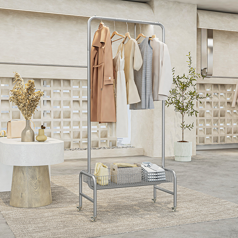 直播间可移动收纳衣帽架卧室落地衣服架子带轮服装店脏衣篮展示架