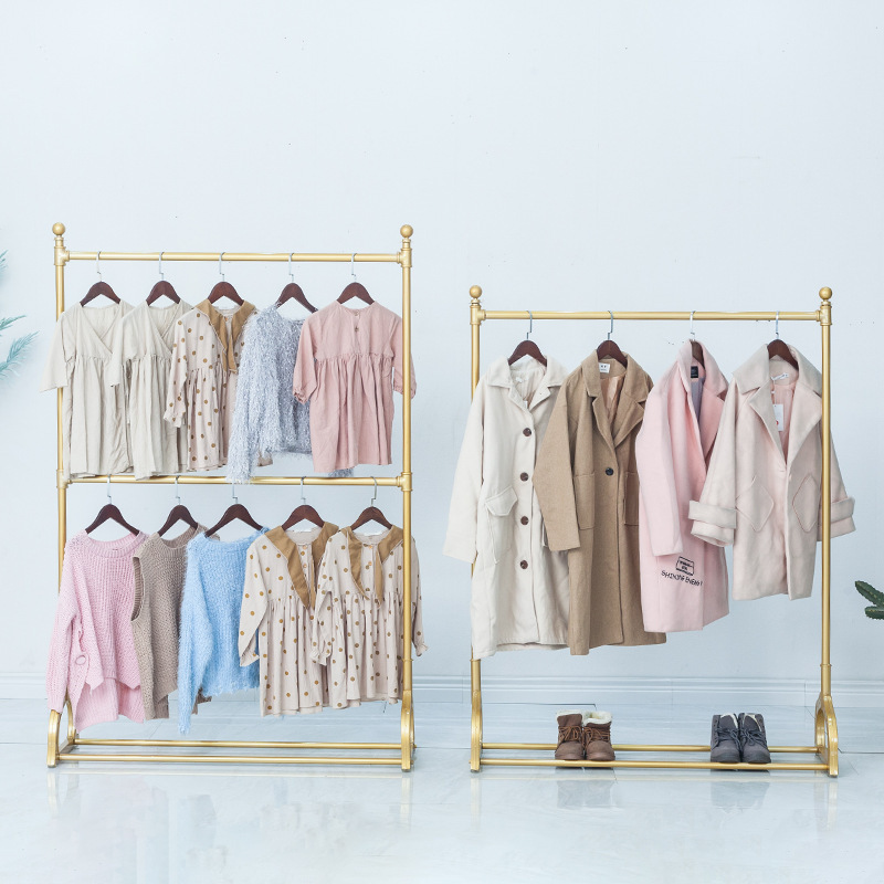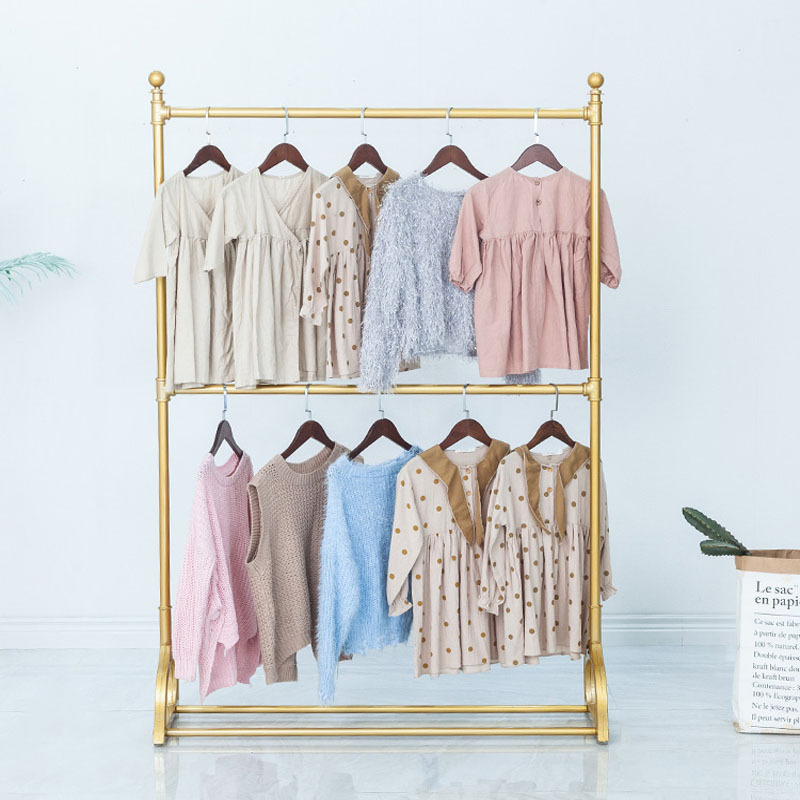 直播间双杆调节服装架升降挂衣架落地童装双层服装展示架女装货架