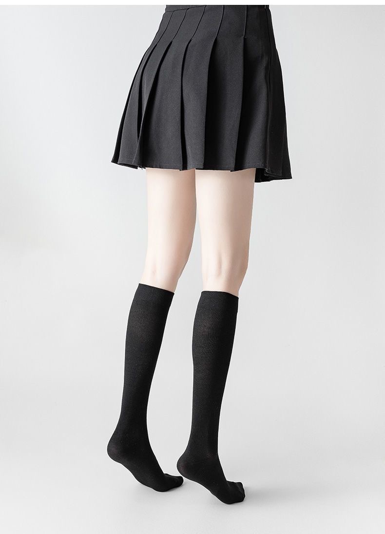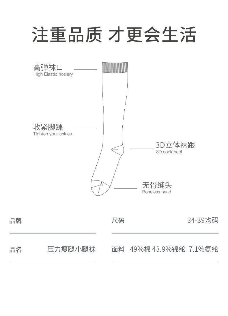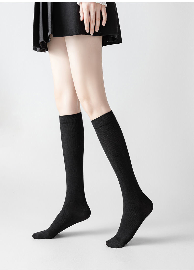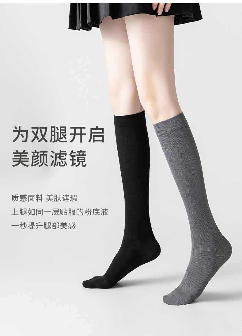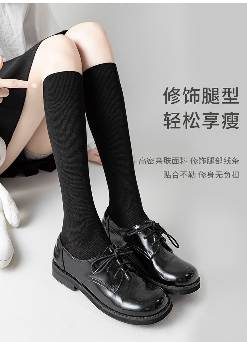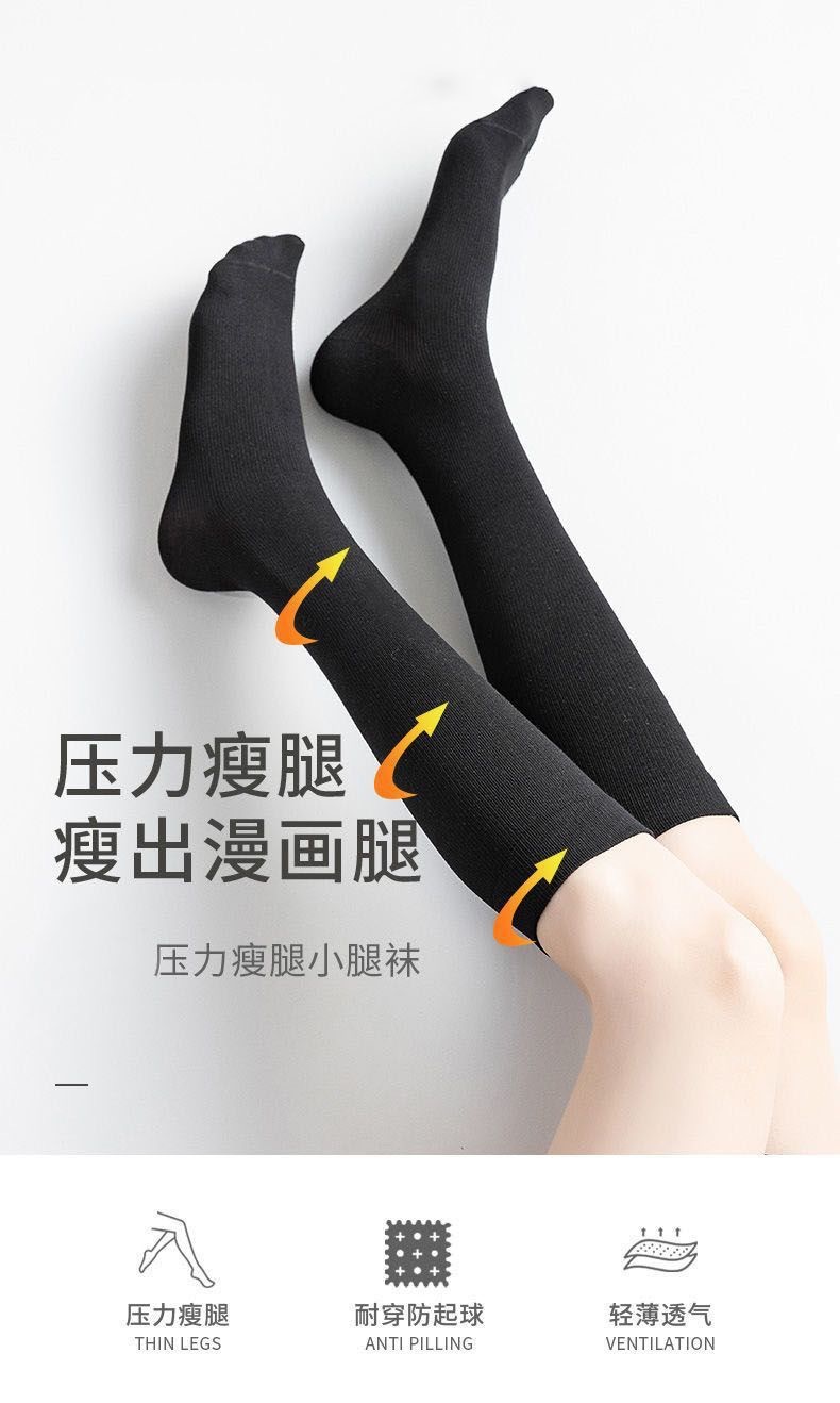 压力小腿袜女夏季薄款棉jk黑色过膝袜强压显瘦春秋长筒袜子