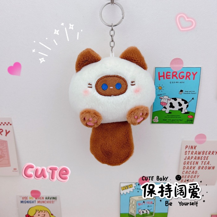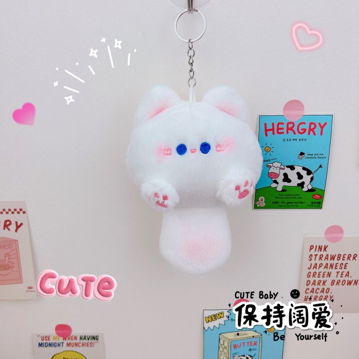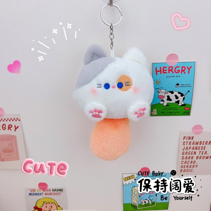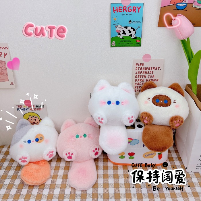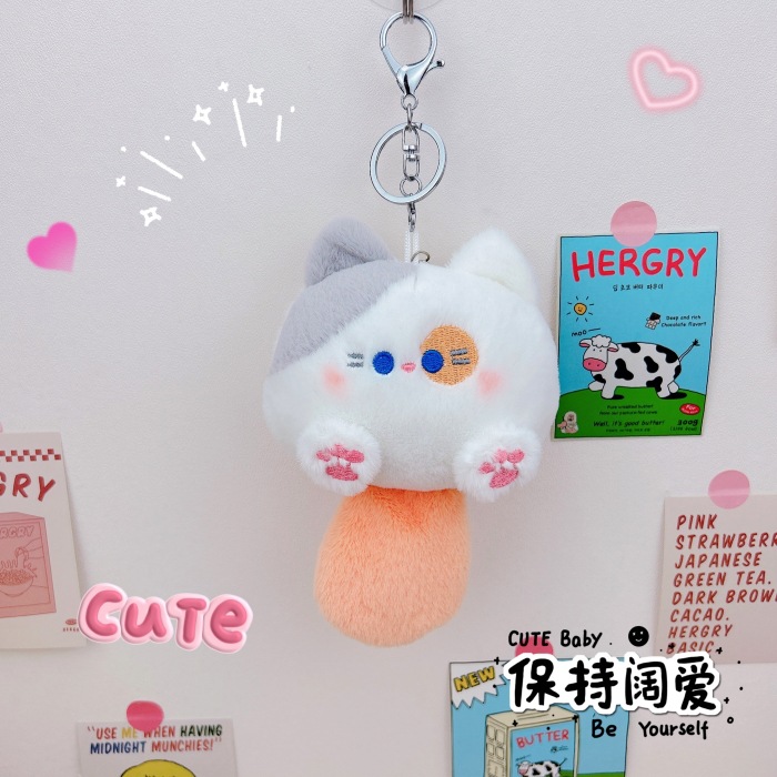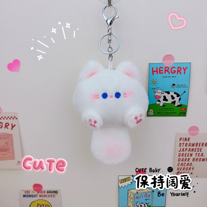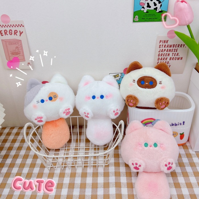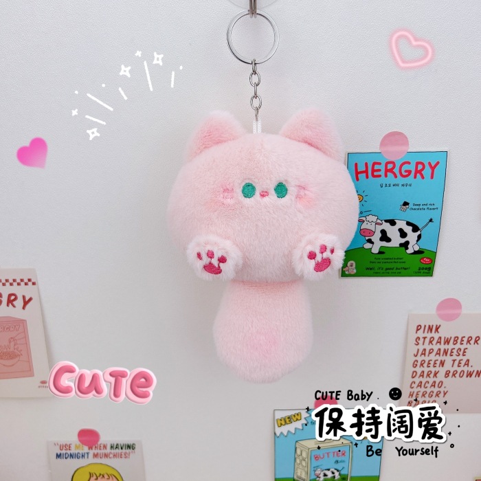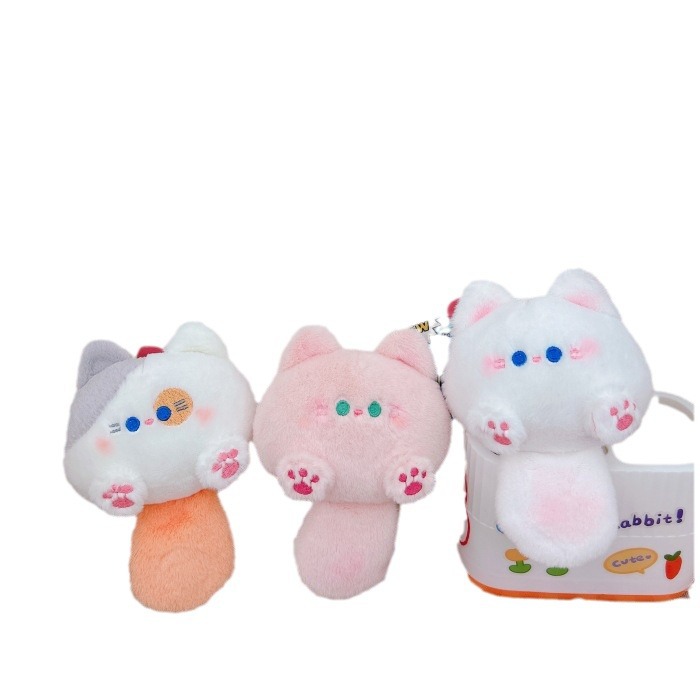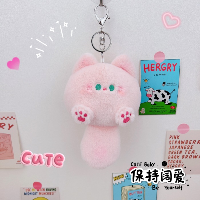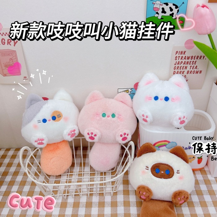 新款腮红吱吱叫小猫咪挂件毛绒抓机娃娃玩具钥匙扣可爱书包包挂饰