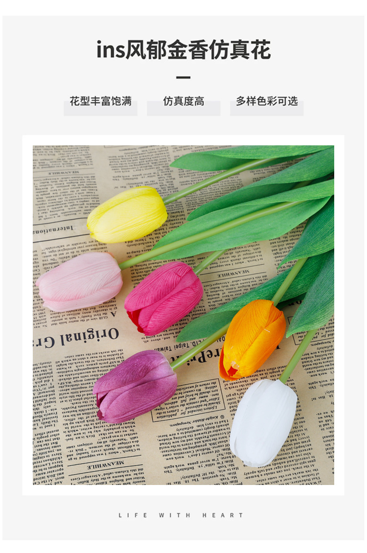 手感郁金香仿真花 仿真花束高级湿感假花室内 家居装饰拉菲郁金香