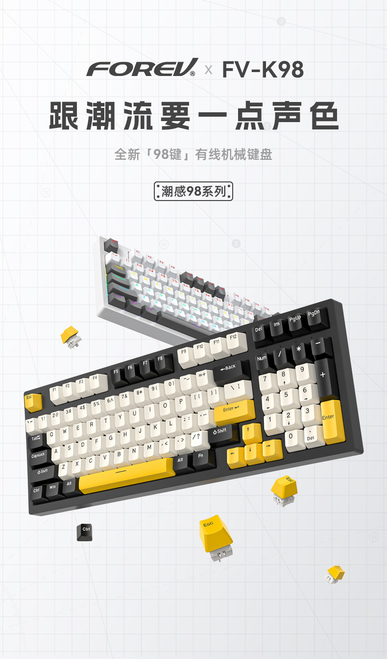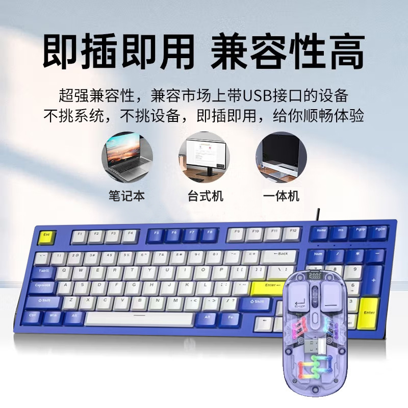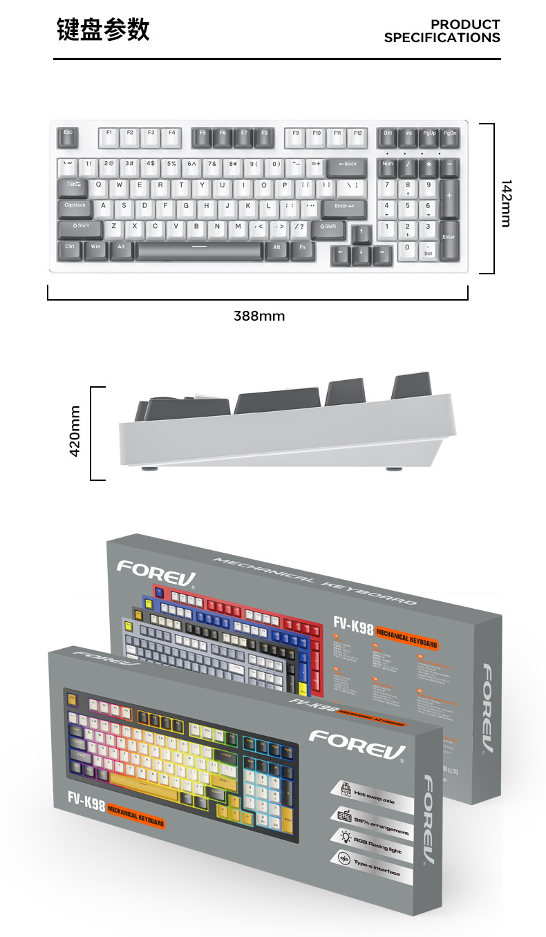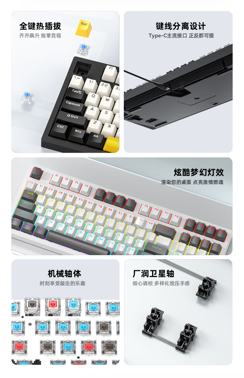 RGB宏定义K98热插拔联名款高颜值机械键盘客制化三模机械键鼠套装