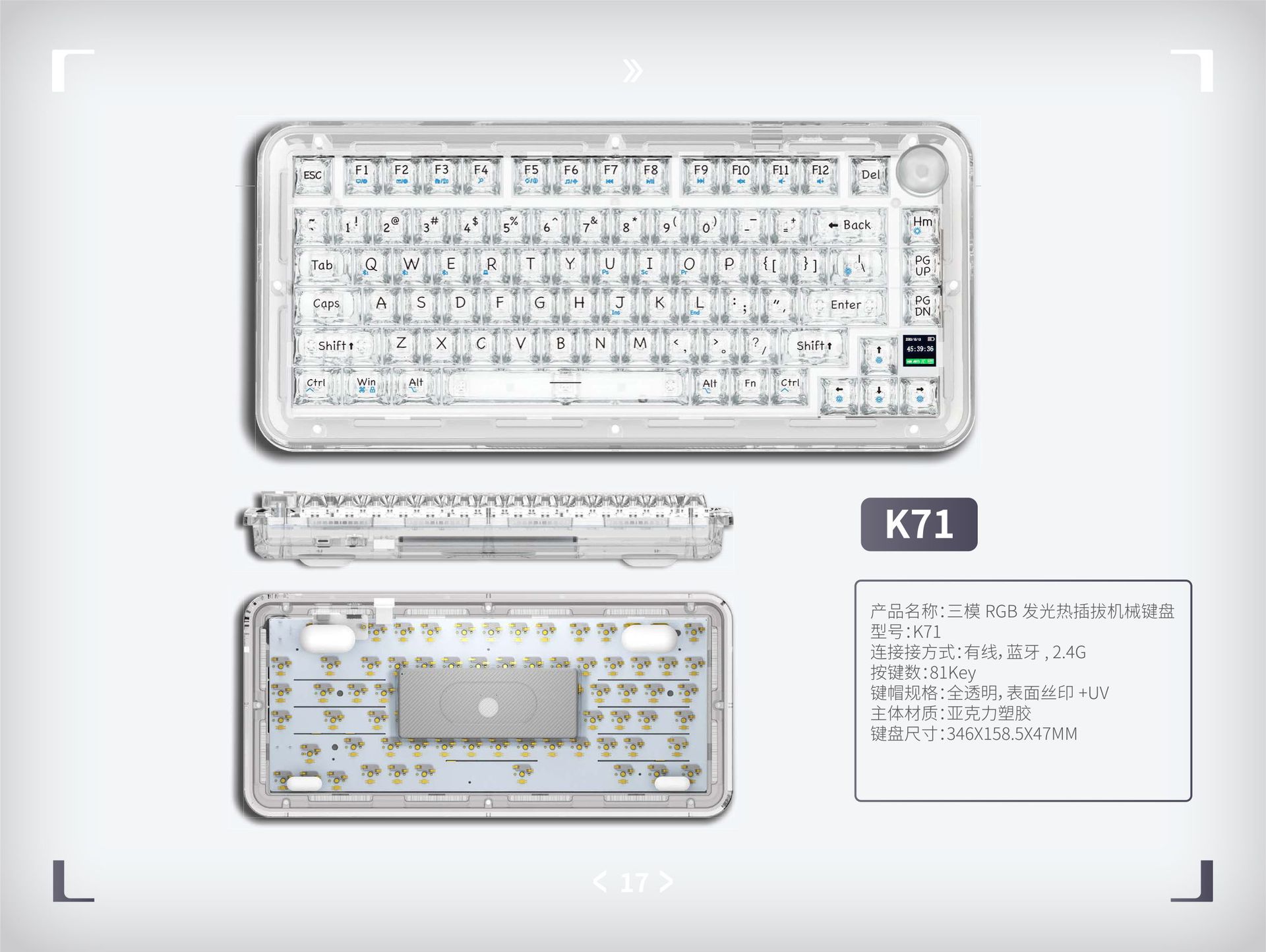 | 81 key transparent keyboard three-mode knob 81 key transparent keyboard three-mode knob matte(81键透明键盘三模旋钮款 81键透明键盘三模旋钮款 雾面) | USD $67.34 | 5464 piece available |