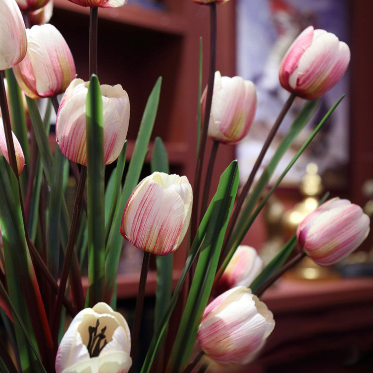 欧丽菲热销仿真5头中郁金香 家居装饰婚庆单支落地郁金香假花