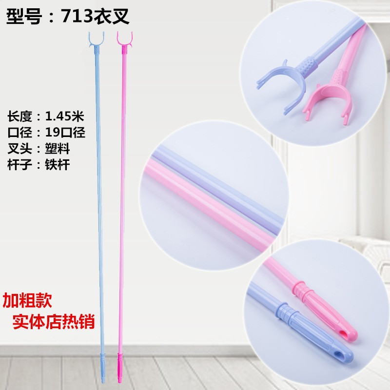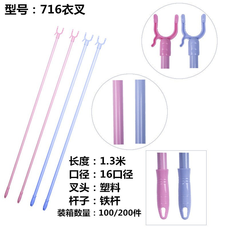 厂家批发晾衣杆 家用衣叉塑料头撑衣杆喷漆铁柄衣叉日用百货家用