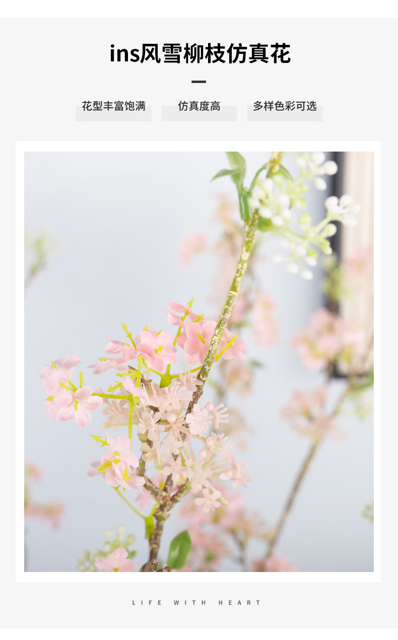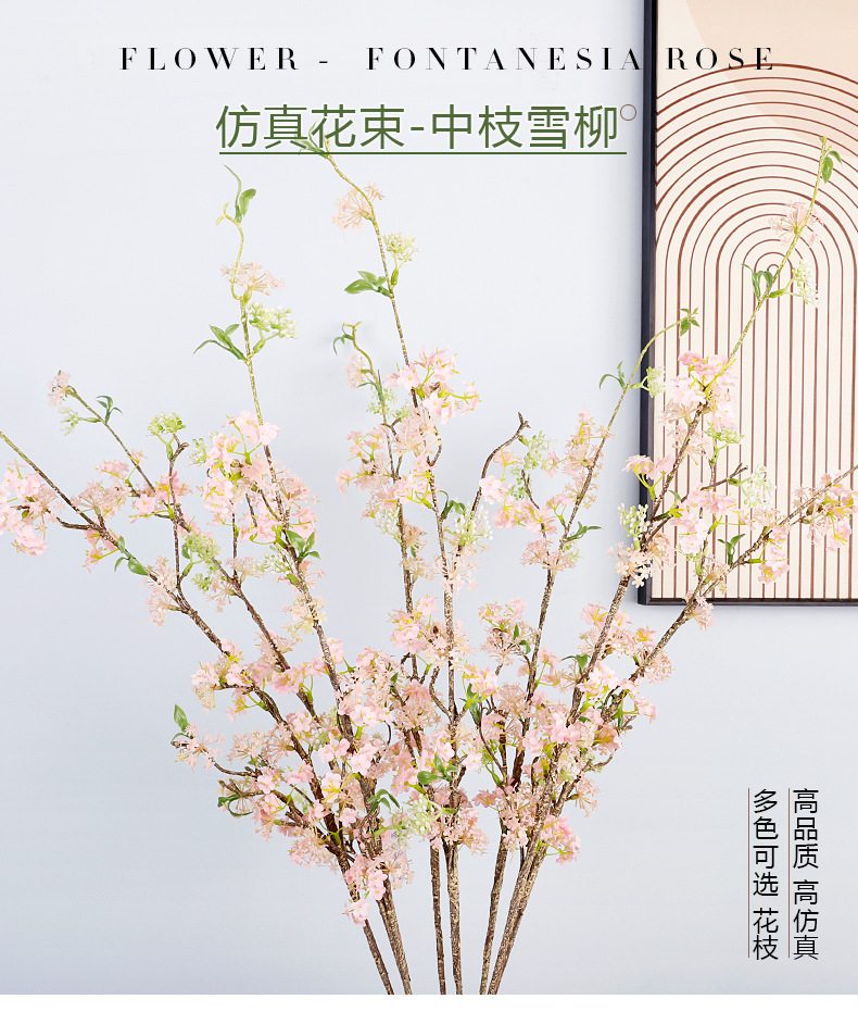 仿真雪柳 飘雪迎春花假花束高级感摆件装饰桃花 婚庆雪柳仿真花