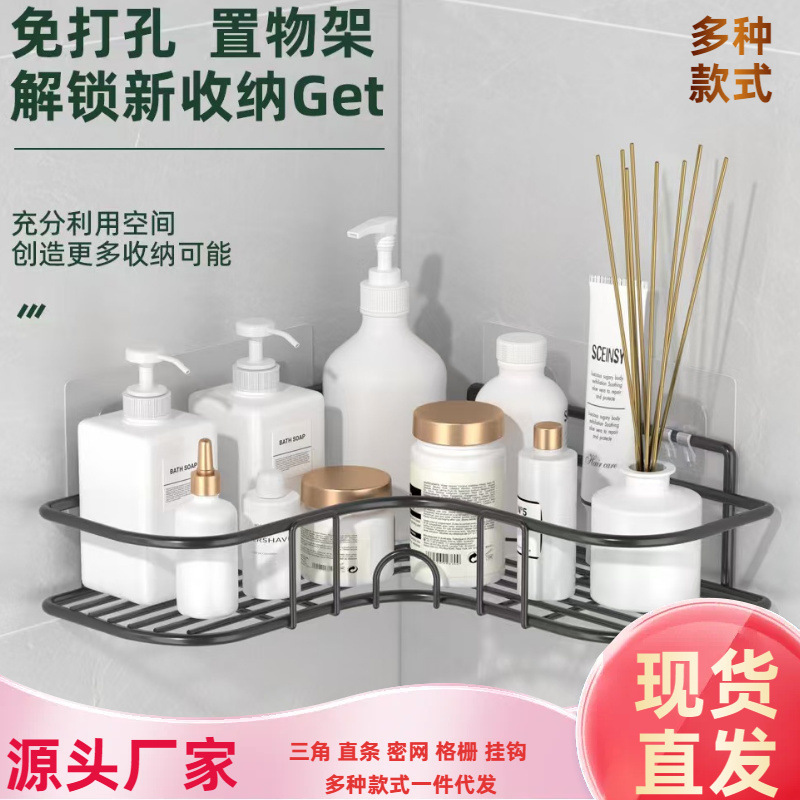 卫生间置物架厕所洗手间免打孔壁挂无痕多功能铁艺密网长条收纳架