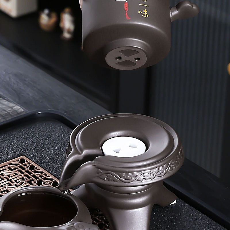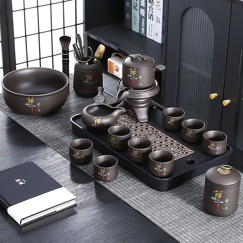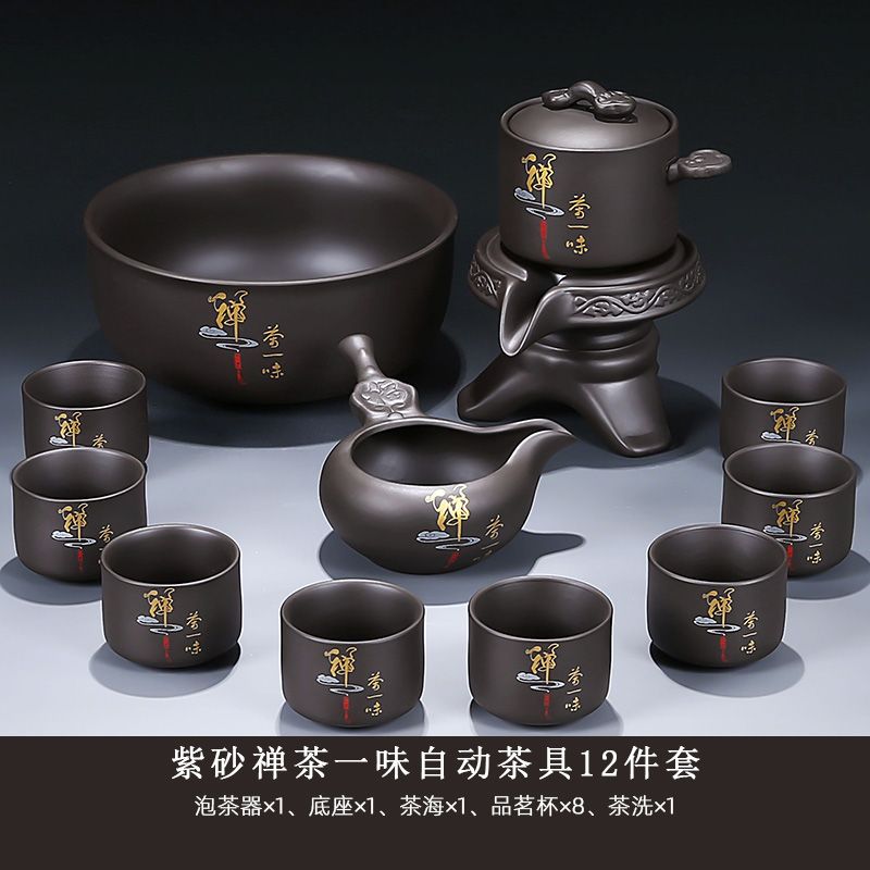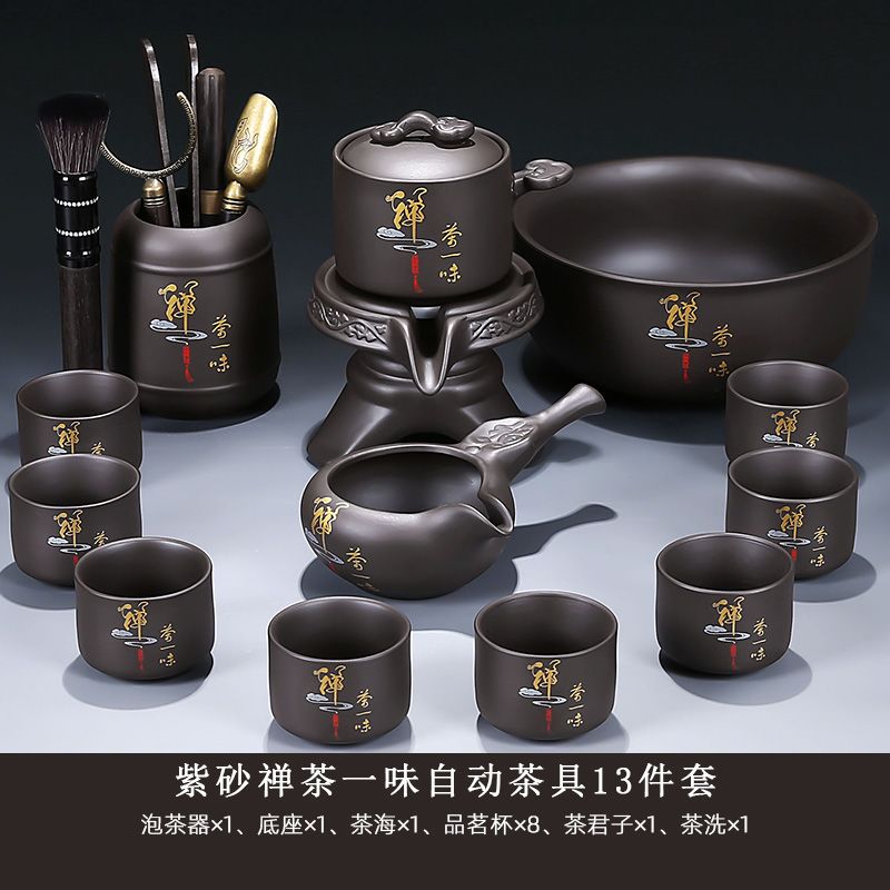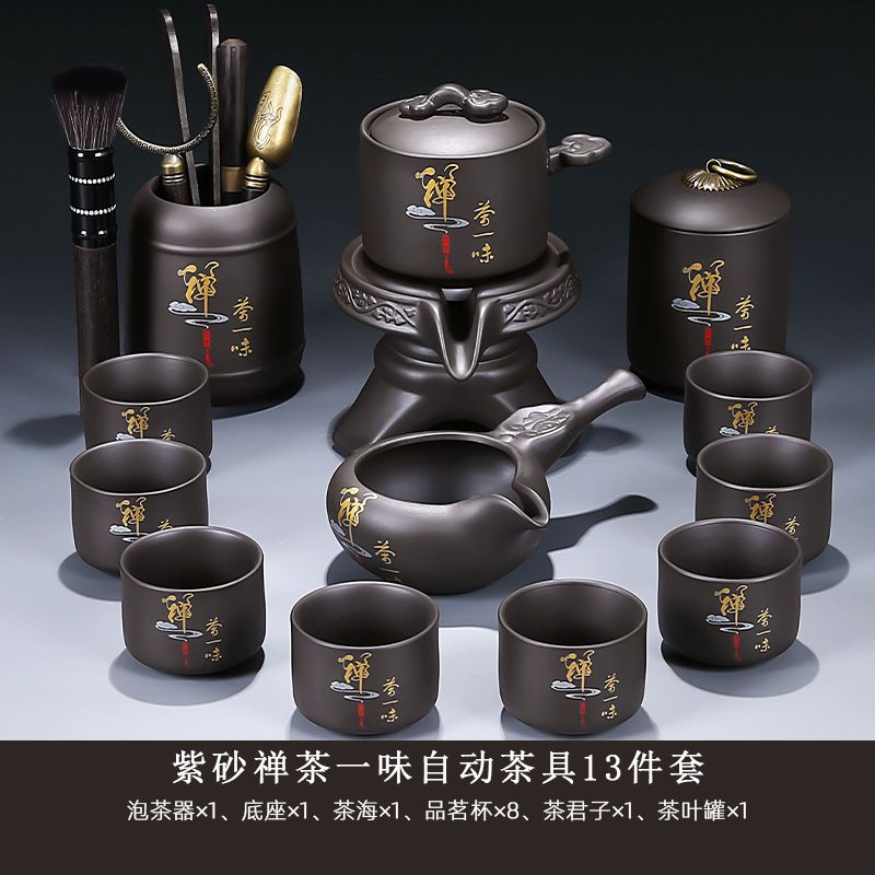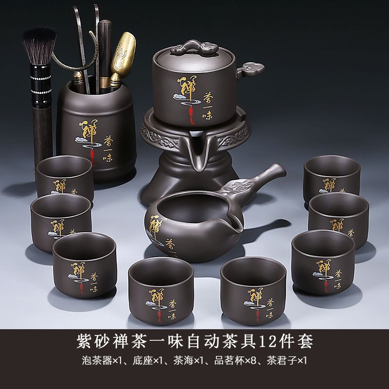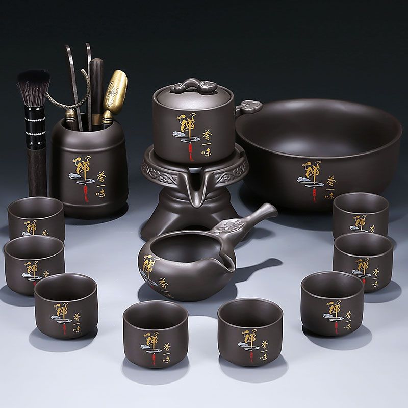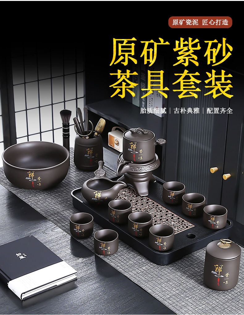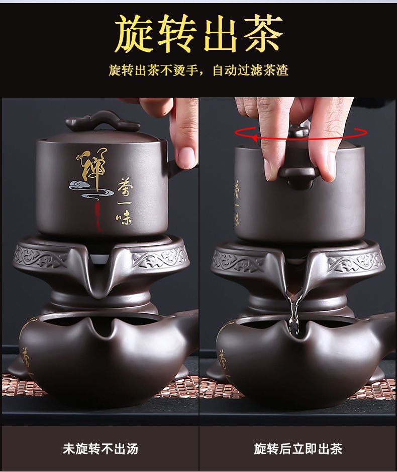 中式紫砂半自动懒人石磨茶具套装家用旋转泡茶器功夫茶具茶壶杯子