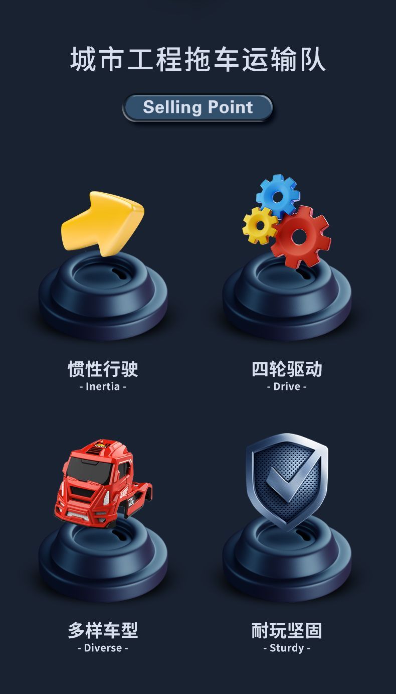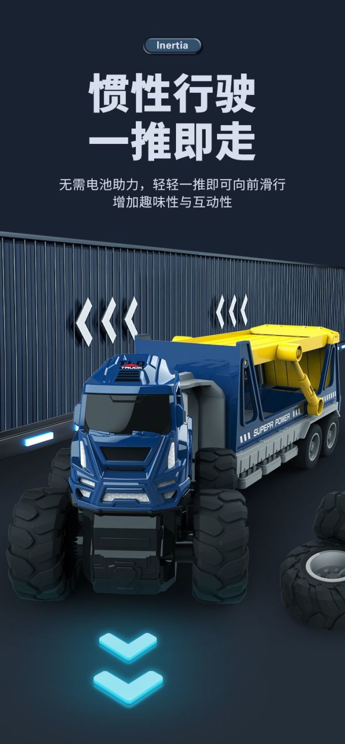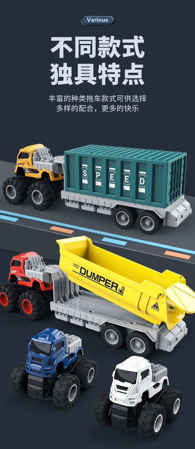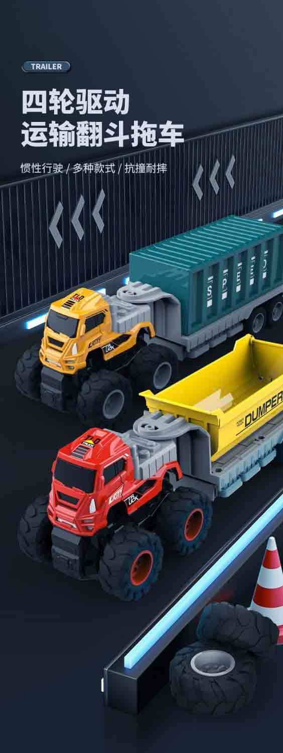 新款工程车拖车儿童玩具惯性玩具车模型仿真儿童玩具男孩四驱
