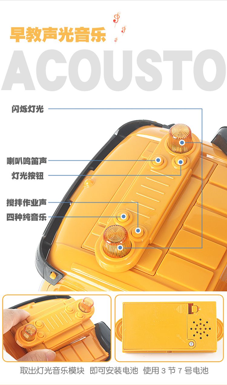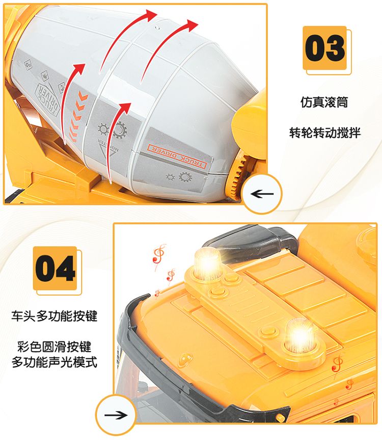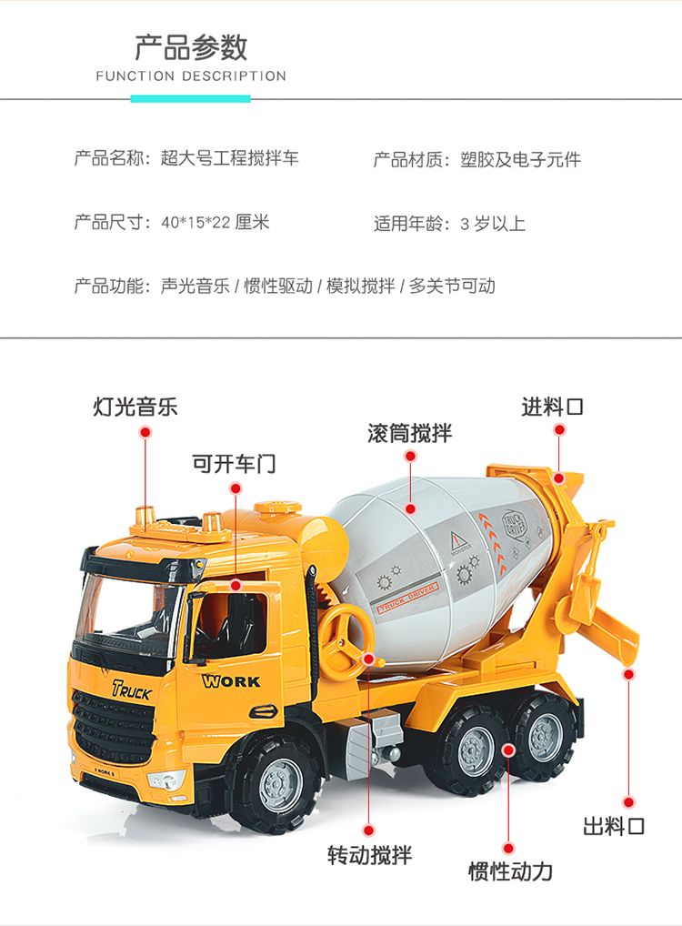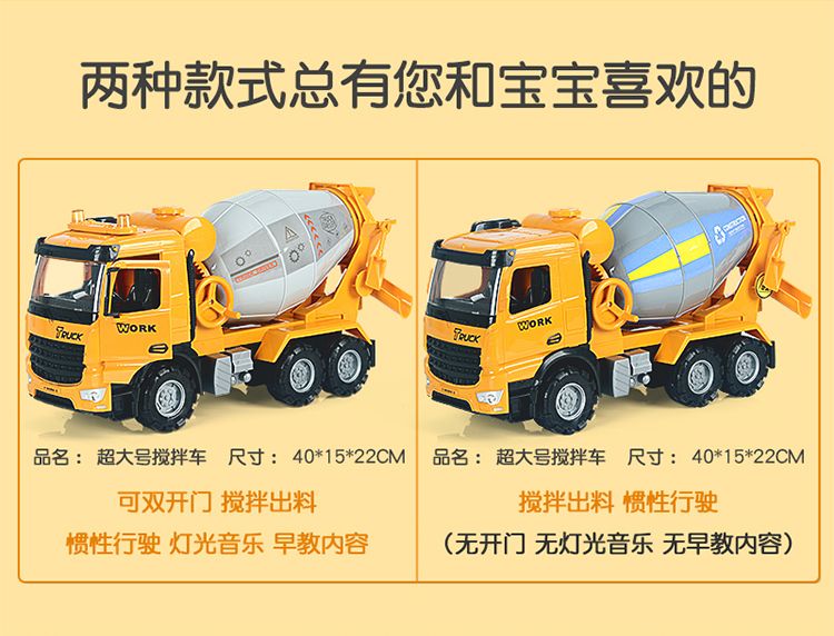 | oversized mixer truck sound and light version can open the door [send bucket + beans]](超大号搅拌车声光版可开门【送桶+豆】) | USD $12.35 | 999999 piece available |