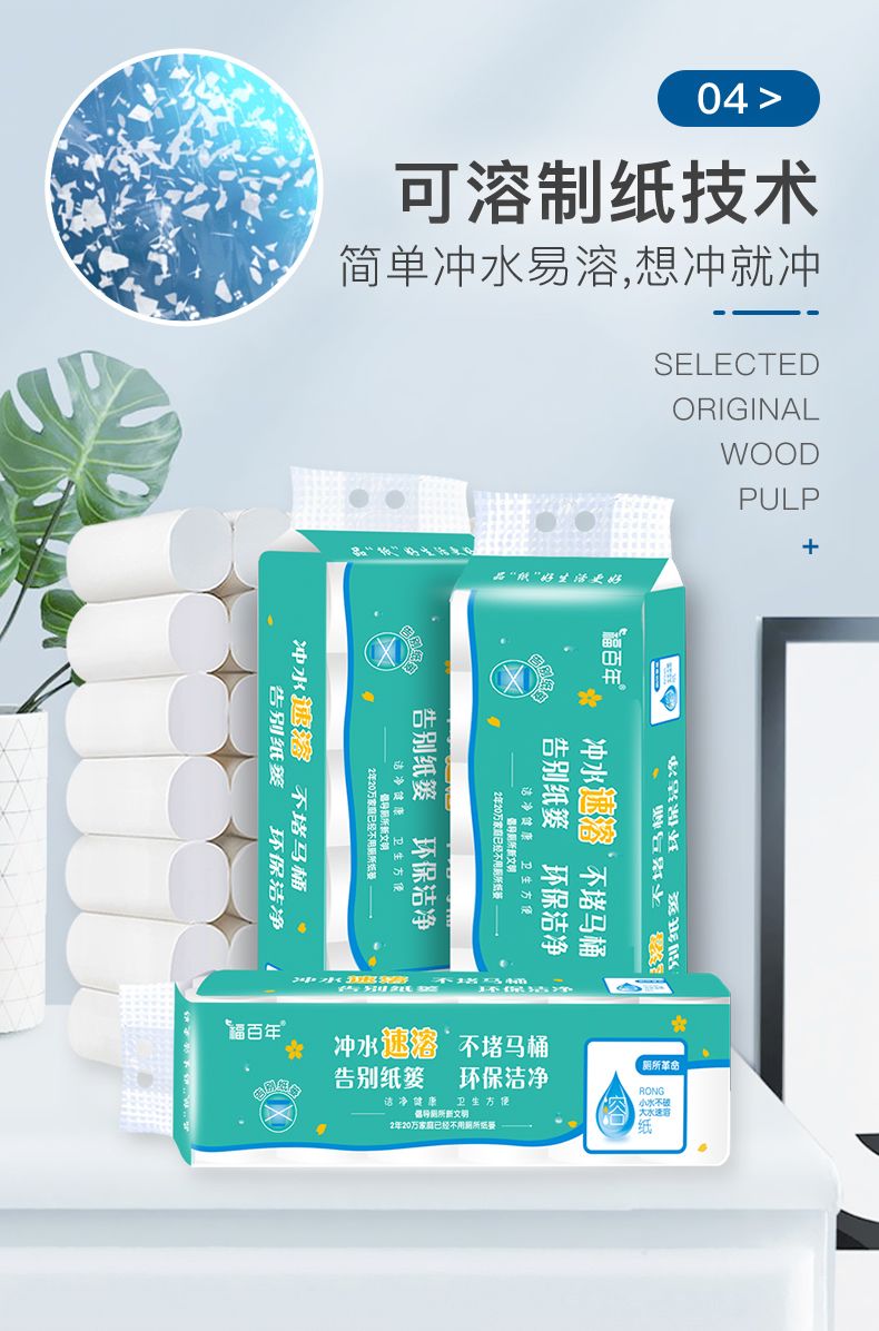 福百年新款速溶水溶性卫生纸厕纸卫生间马桶可溶解速溶卫生纸卷纸