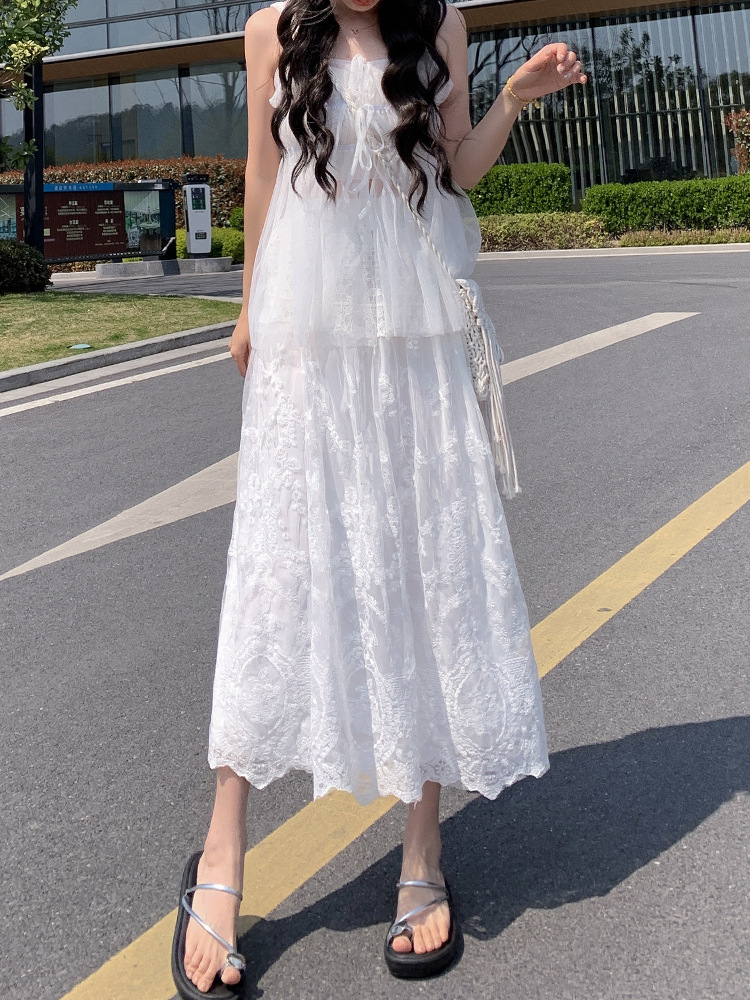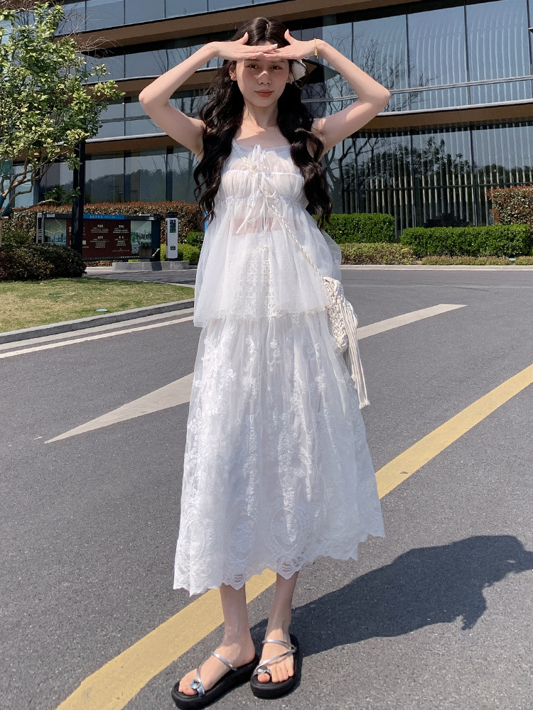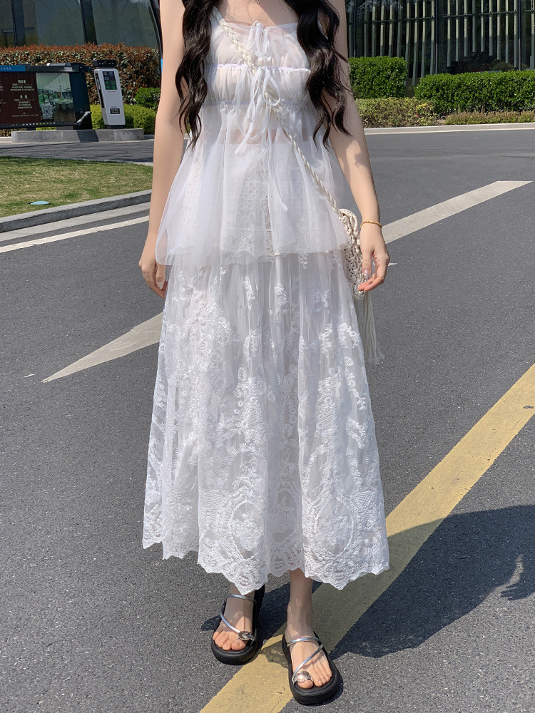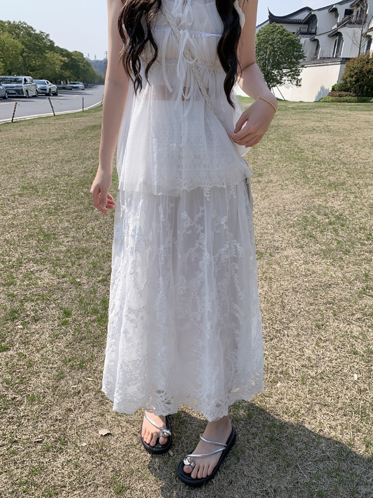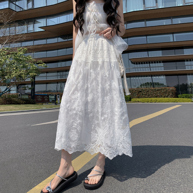 复古蕾丝钩花半身裙女春夏新款高腰显瘦a字半裙温柔风蛋糕长裙子