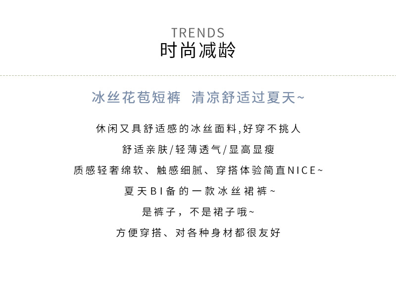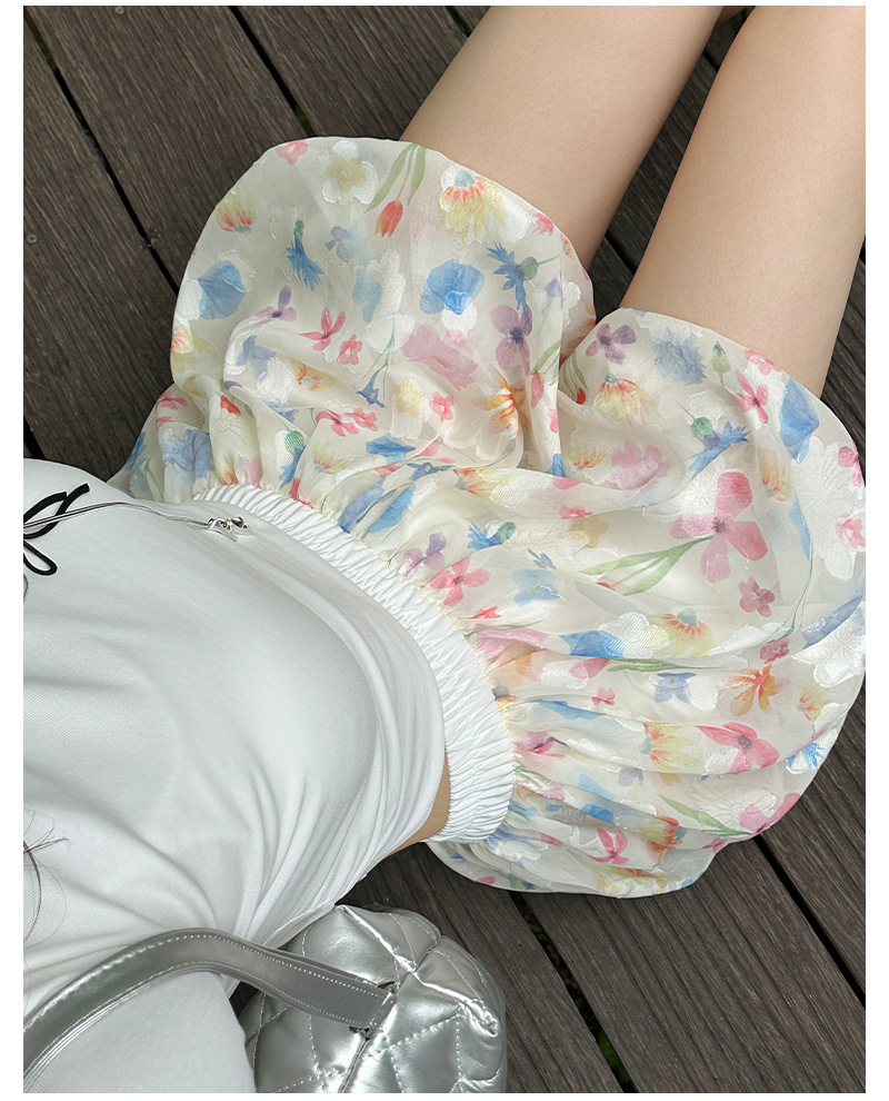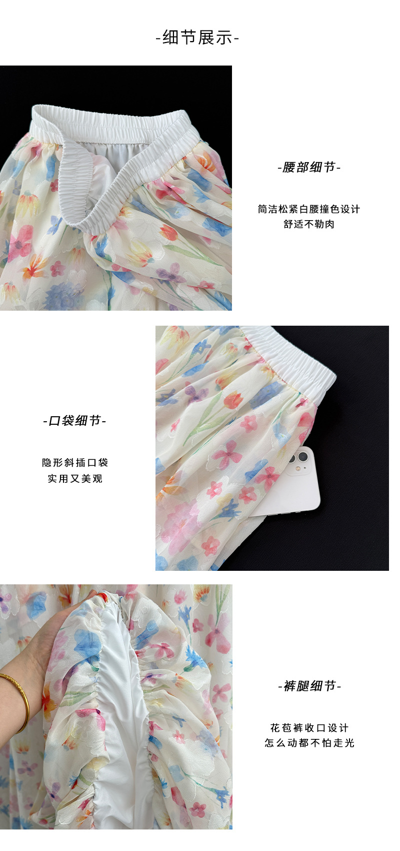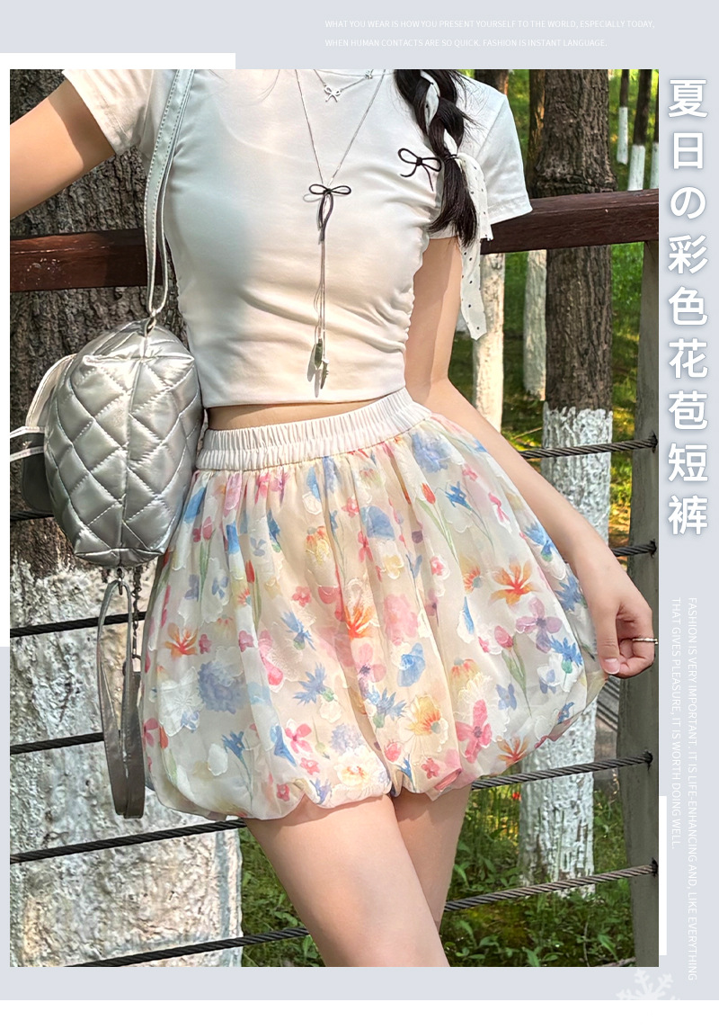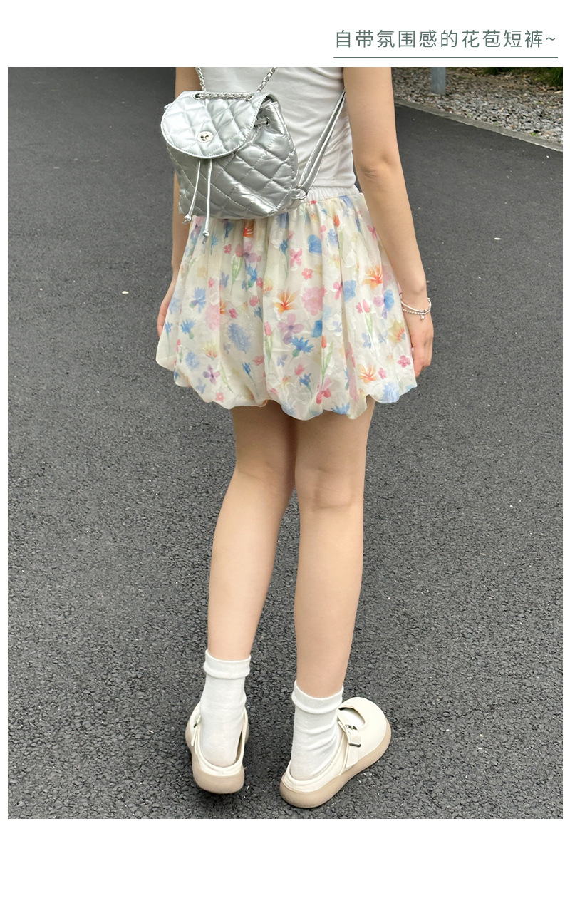 冰丝碎花花苞短裤女夏季白腰宽松a字防走光裙裤外穿阔腿休闲裤子