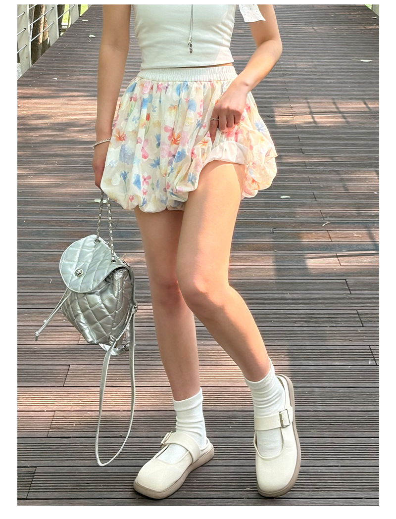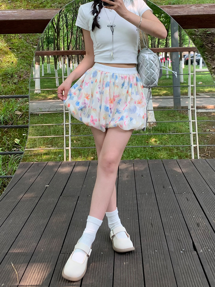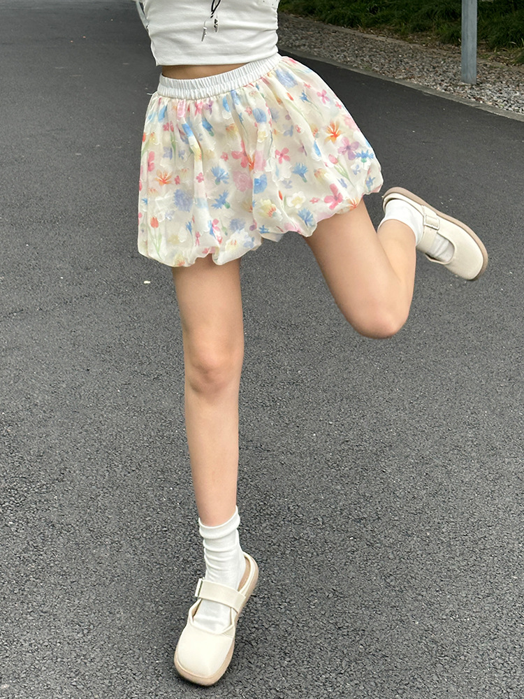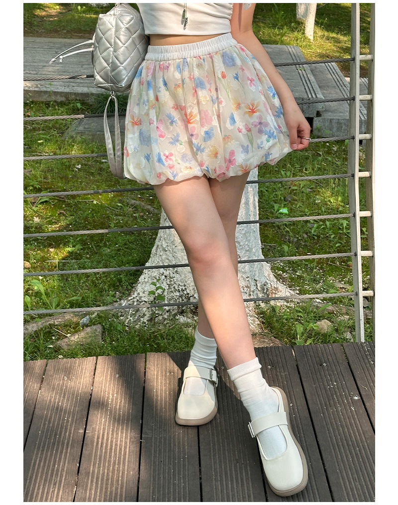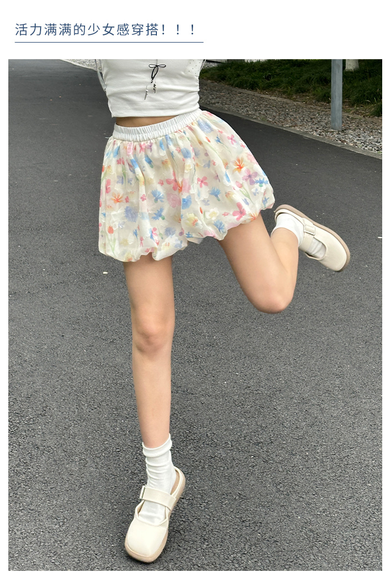冰丝碎花花苞短裤女夏季白腰宽松a字防走光裙裤外穿阔腿休闲裤子