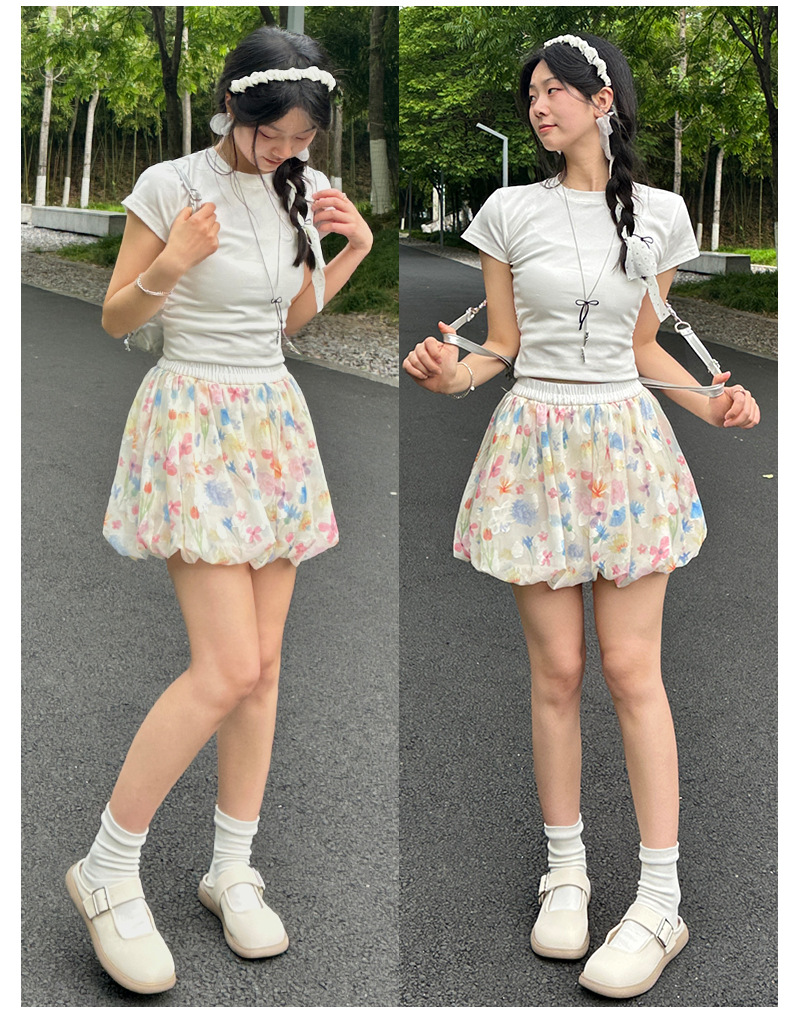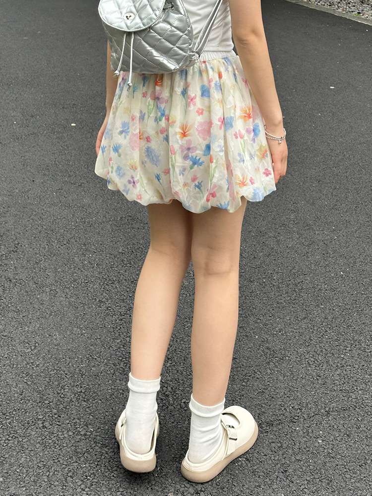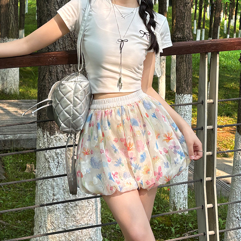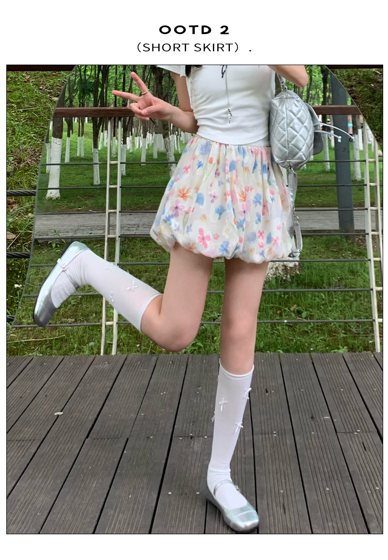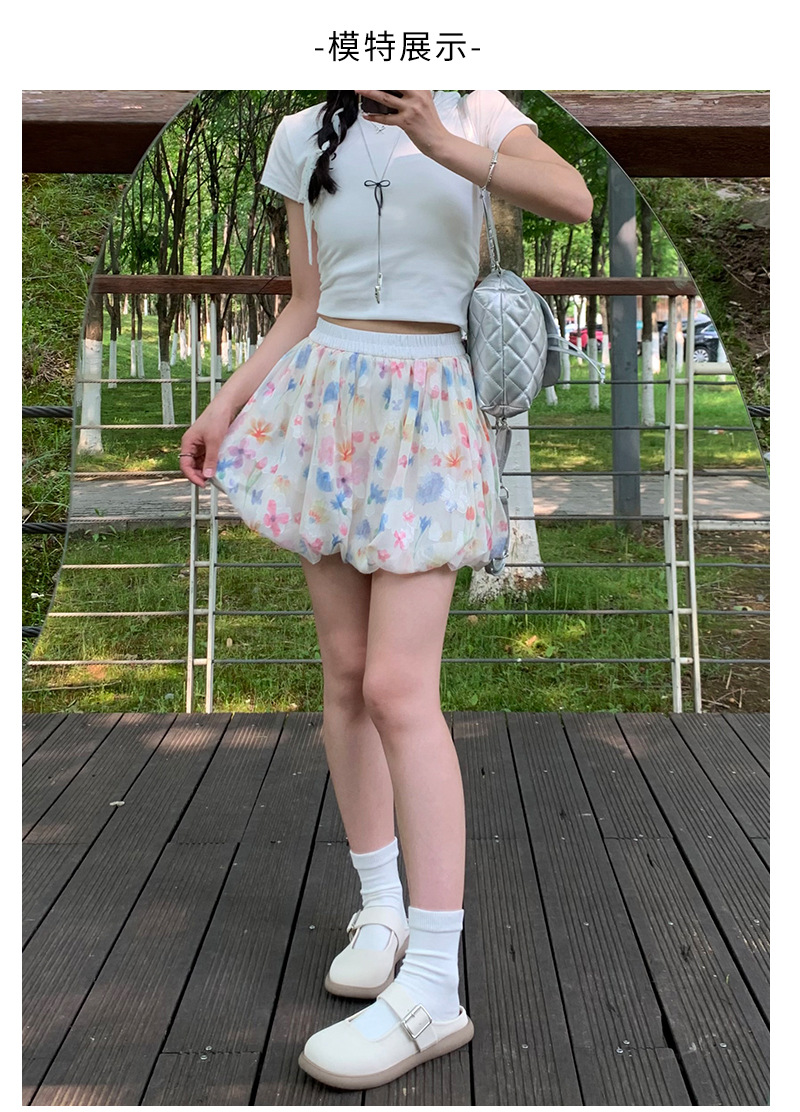 冰丝碎花花苞短裤女夏季白腰宽松a字防走光裙裤外穿阔腿休闲裤子