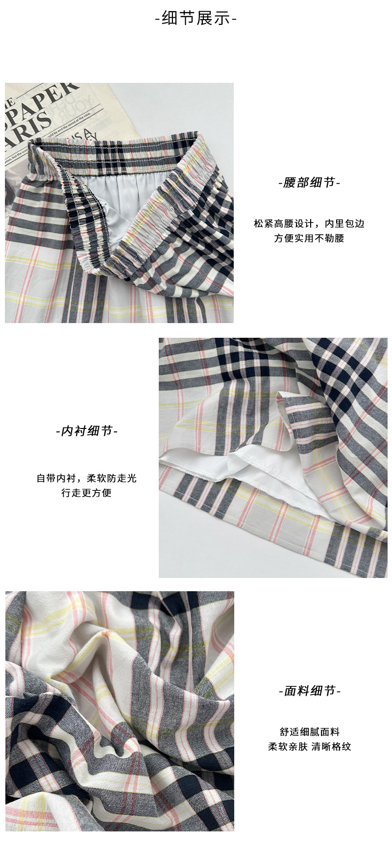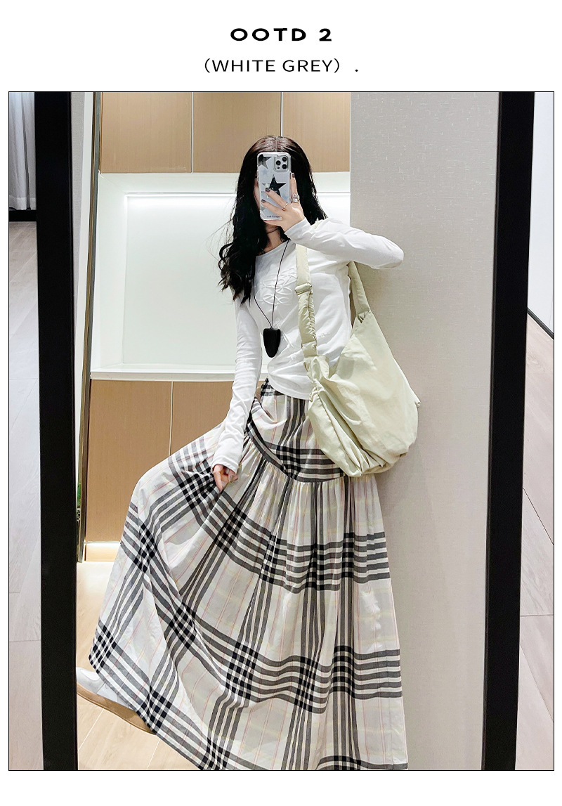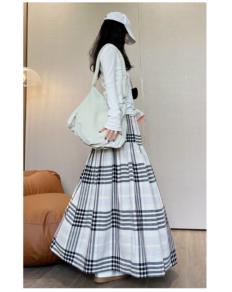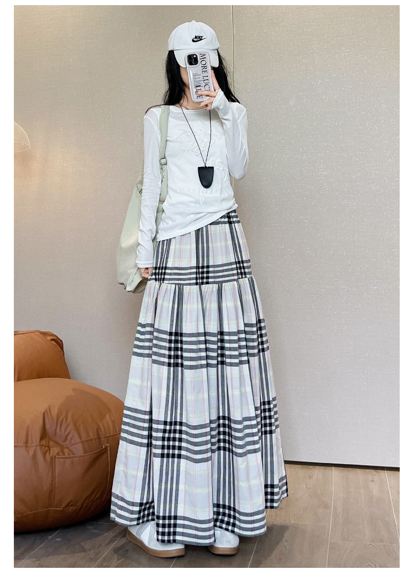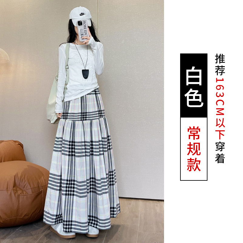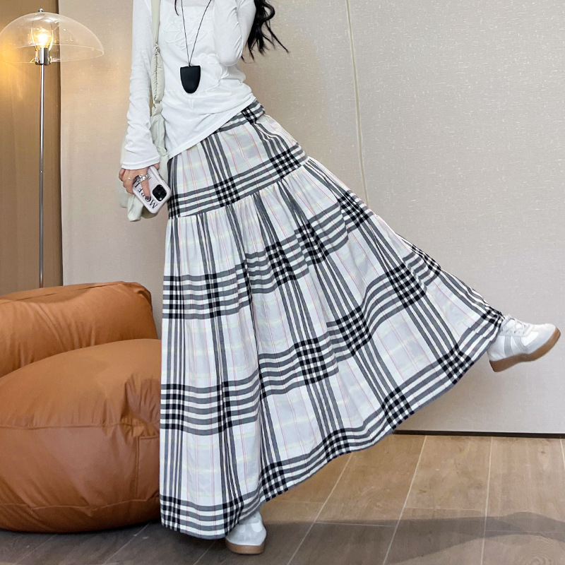 马德拉斯格纹宽摆长裙子女夏季高腰大裙摆A字遮肉文艺复古半身裙