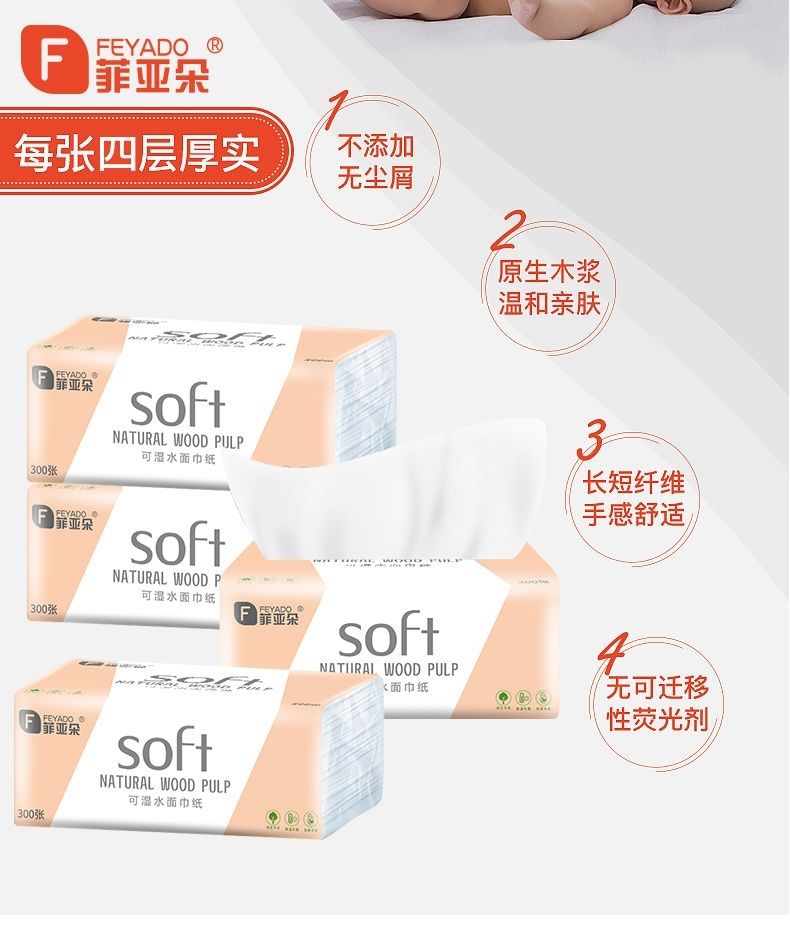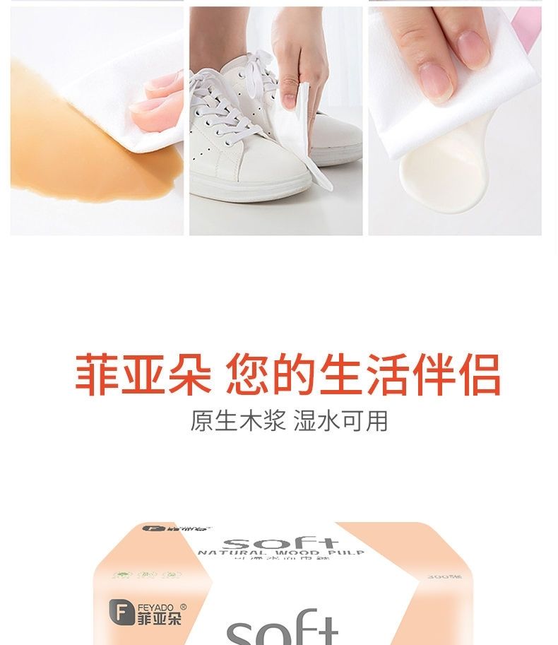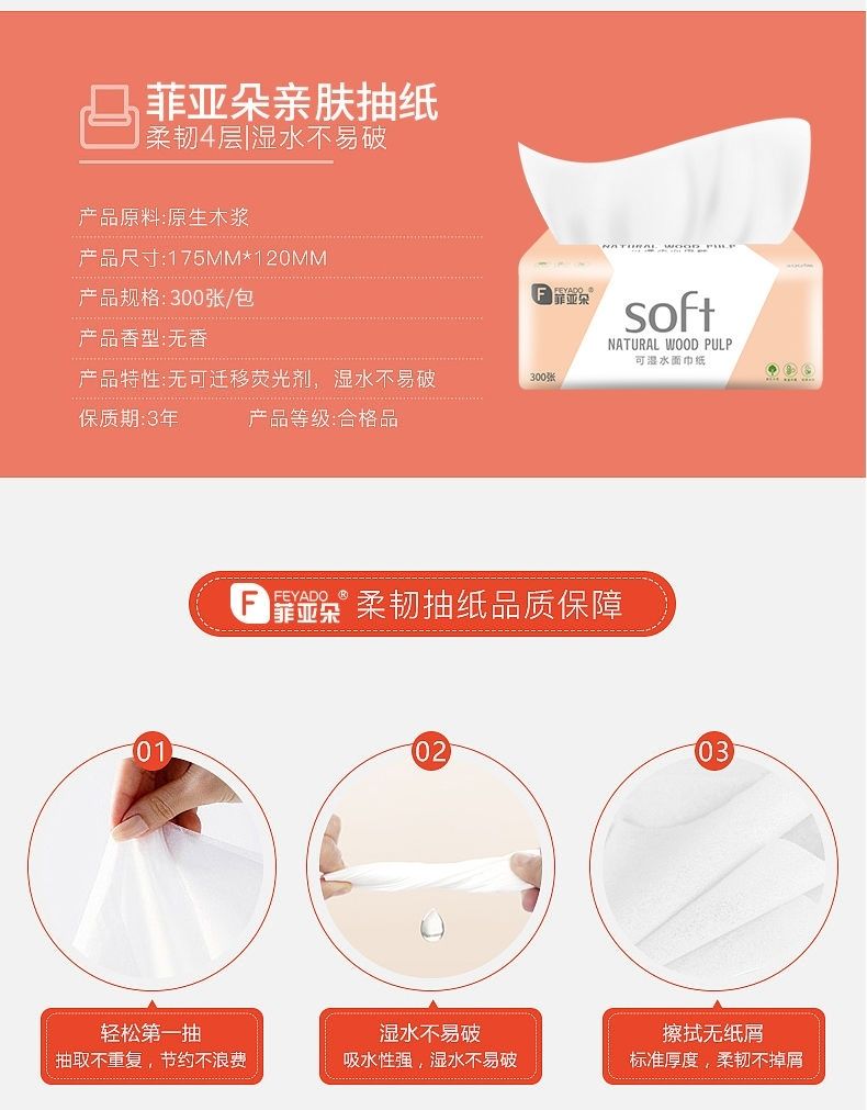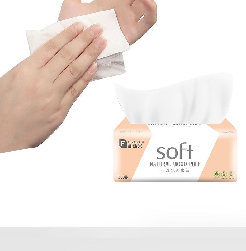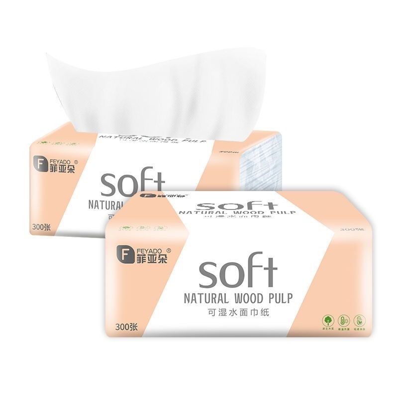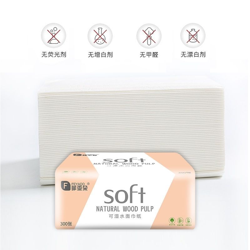 菲朵纸巾300张餐巾纸面巾纸擦手纸家用带原生木浆纸巾可湿水抽纸