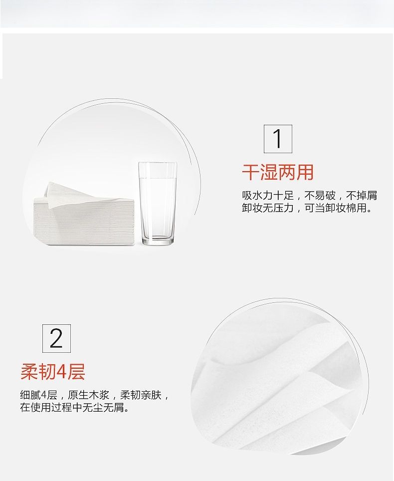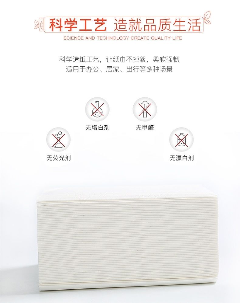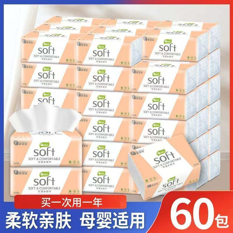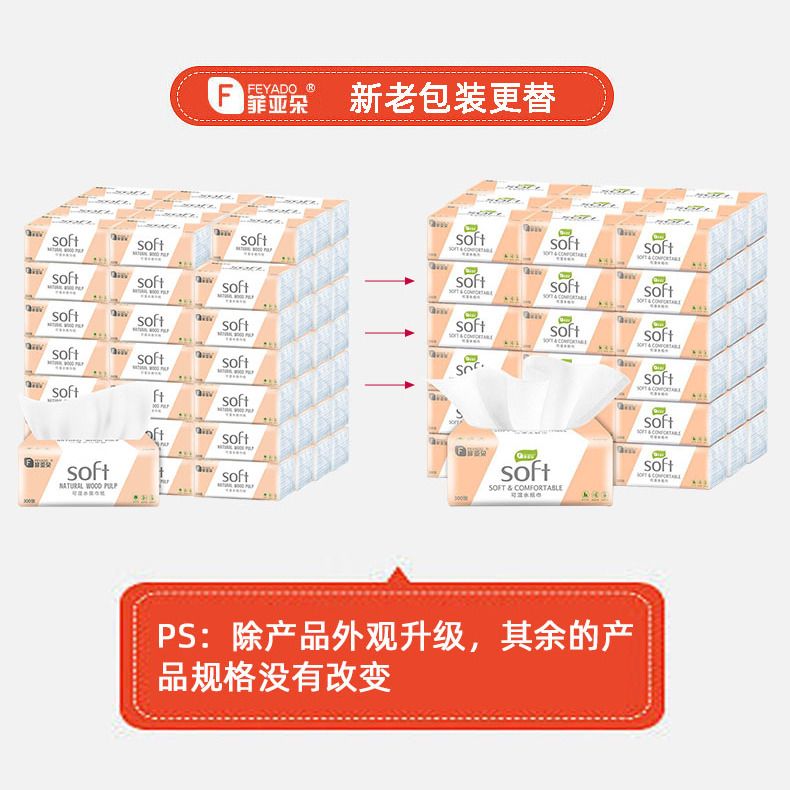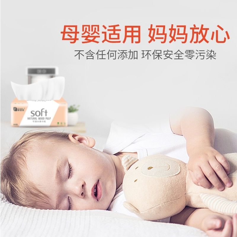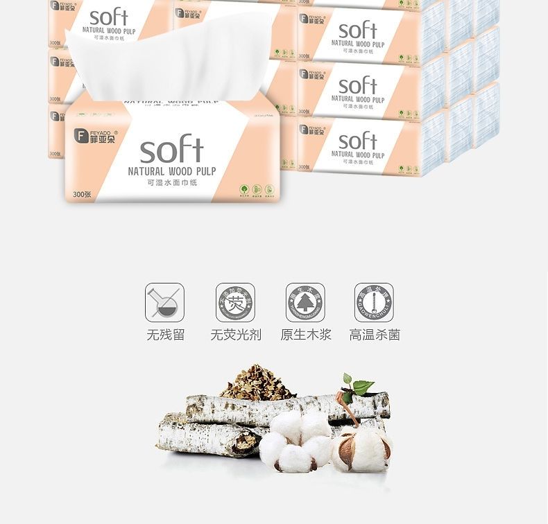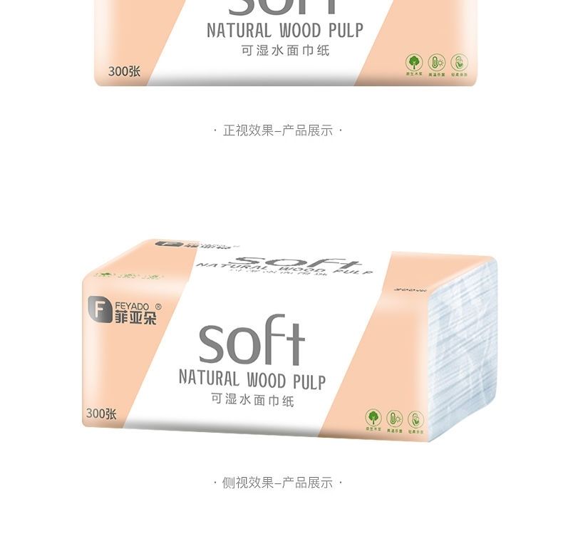 菲朵纸巾300张餐巾纸面巾纸擦手纸家用带原生木浆纸巾可湿水抽纸