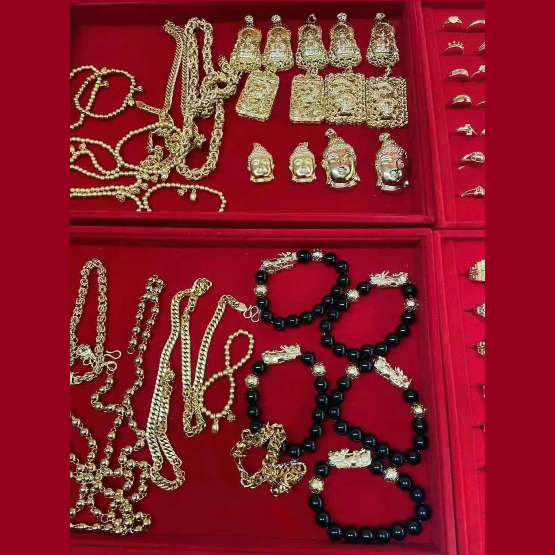跑地摊热卖沙金手饰戒子手镯项链手链耳环耳钉饰品火烧不易变色