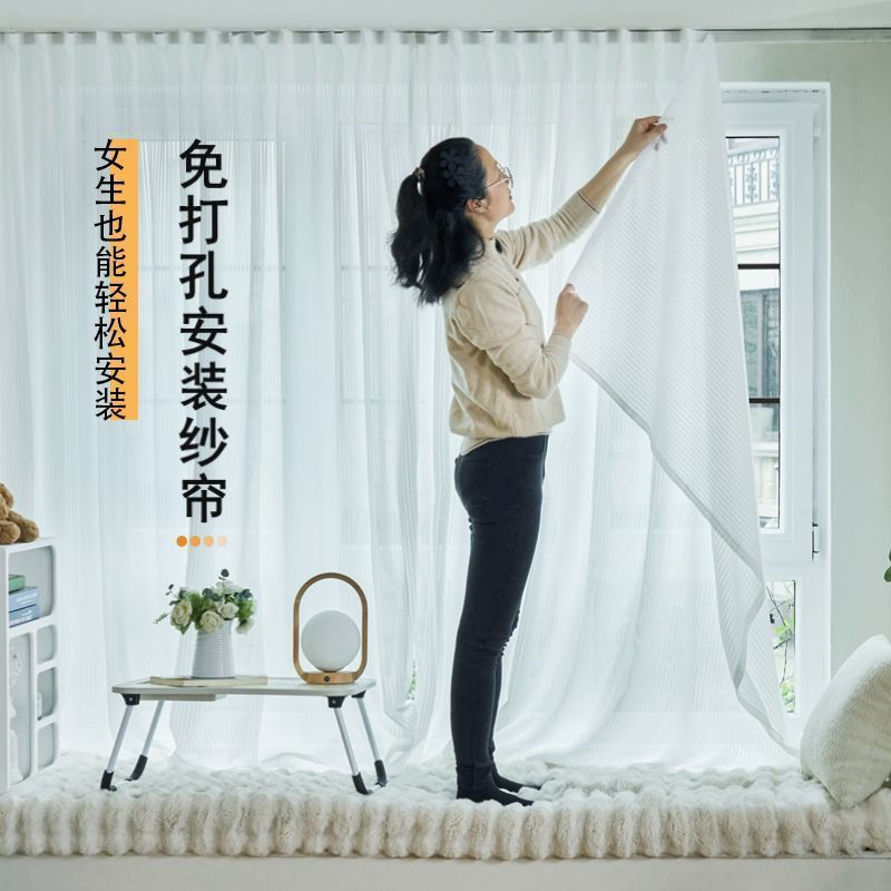 竖百叶纱2025新款魔术贴免打孔安装纱帘阳台飘窗纱透光不透人窗帘