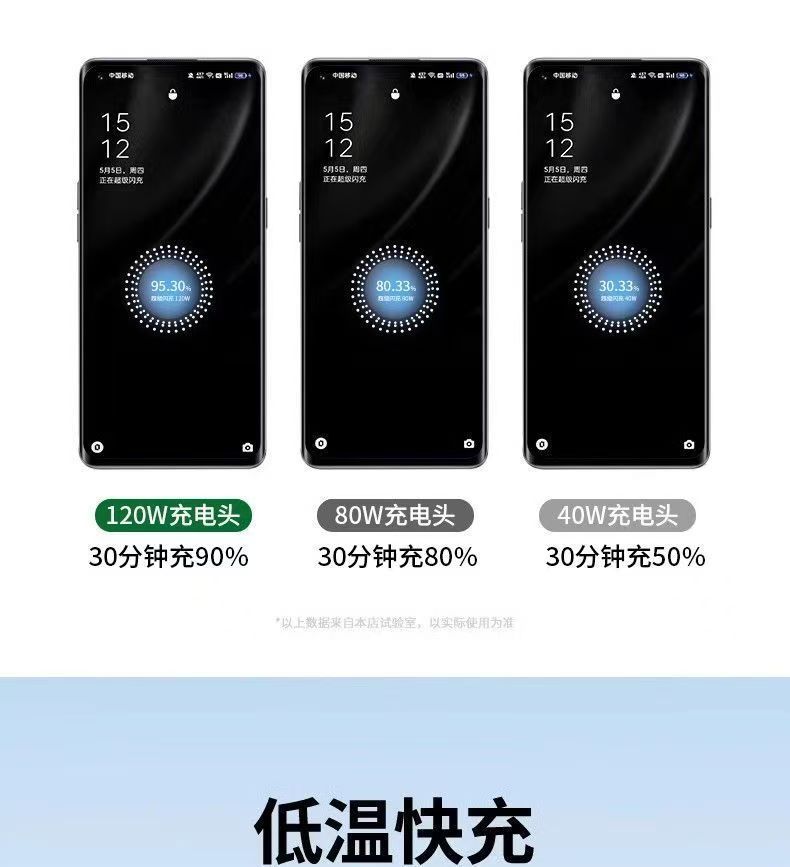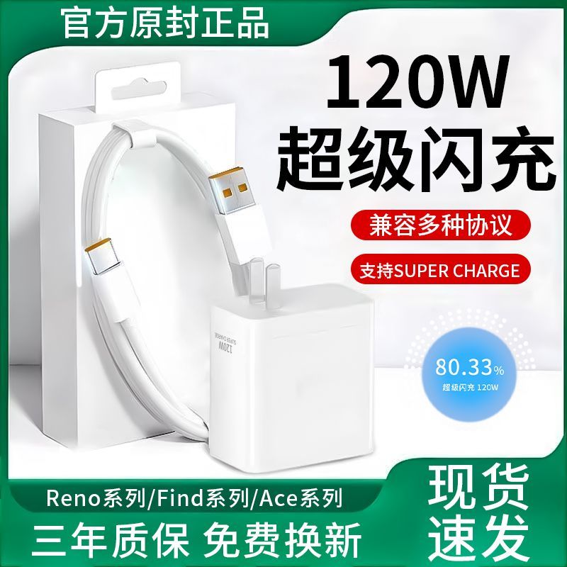 适用OPPO120W快充Reno10/9/8/7/6真我荣耀6A数据线闪充头充电套装