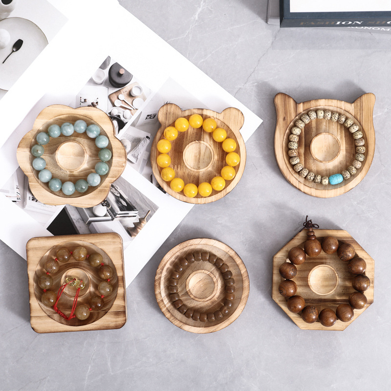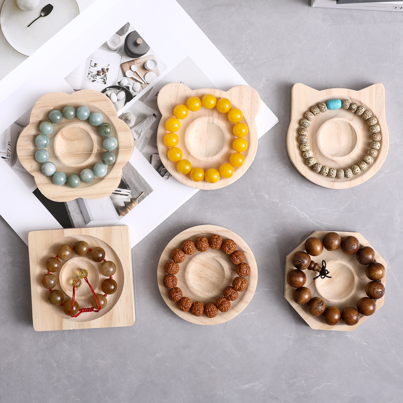 手串盘展示架木质饰品拍摄道具木制托盘手链手镯珠宝首饰架展示盘