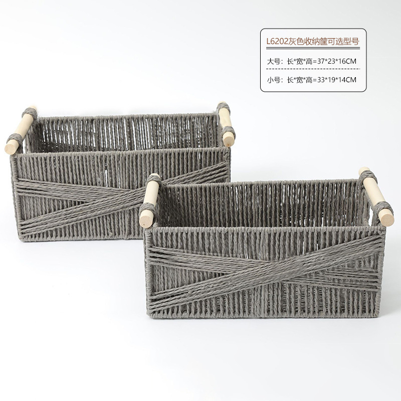 跨境桌面整理收纳篮带把收纳筐藤编收纳箱布艺玩具零食收纳置物筐