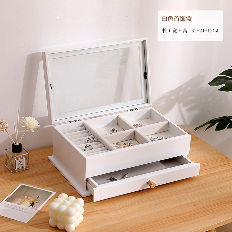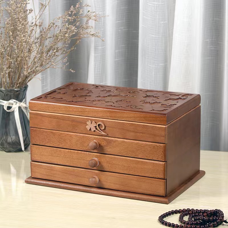 跨境实木结婚饰品盒首饰盒大容量带锁中式复古耳钉项链首饰收纳盒