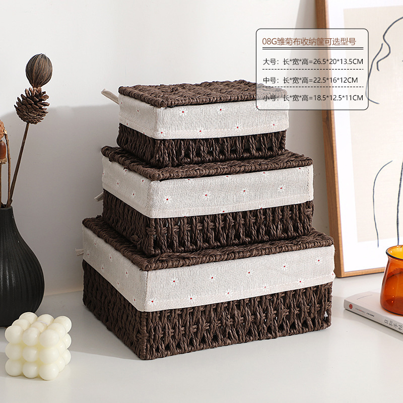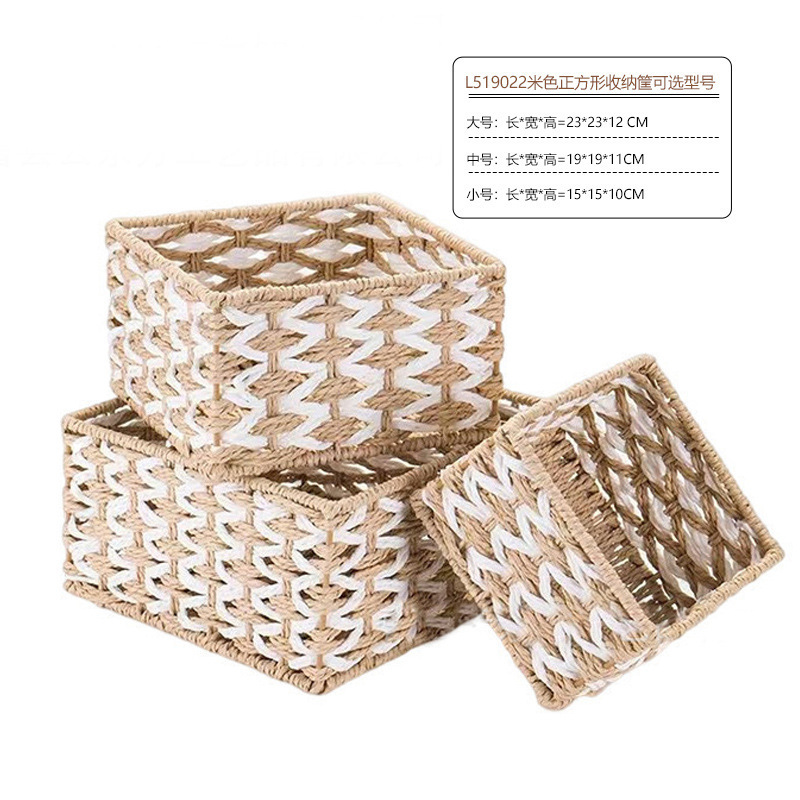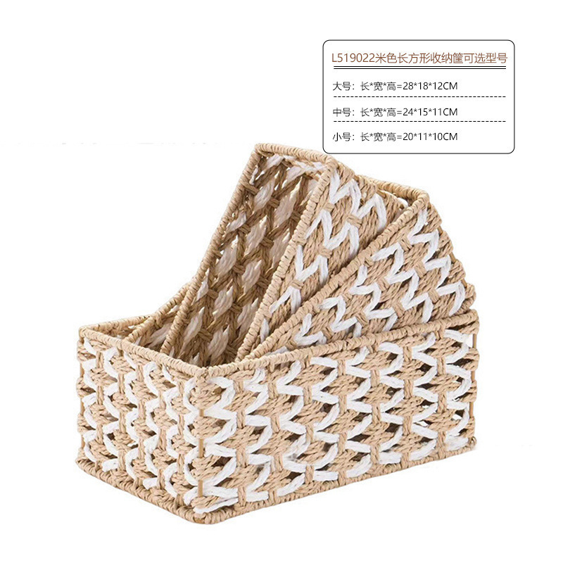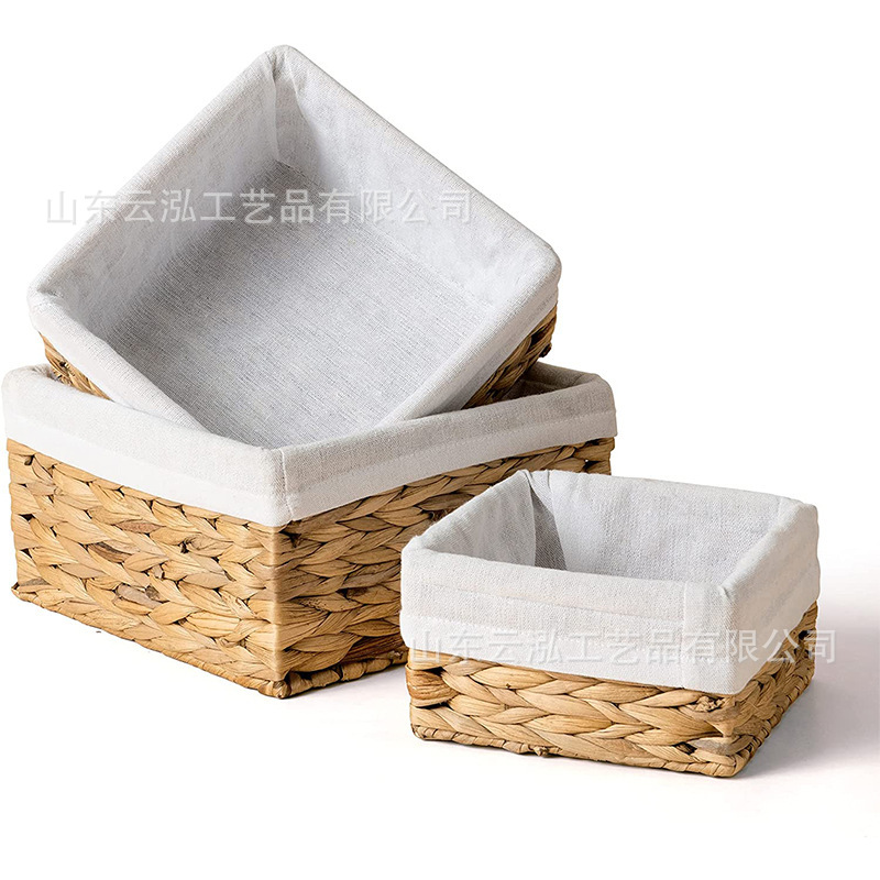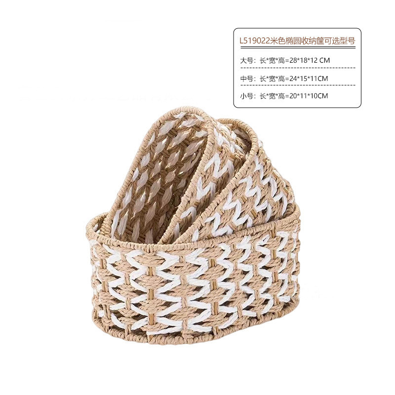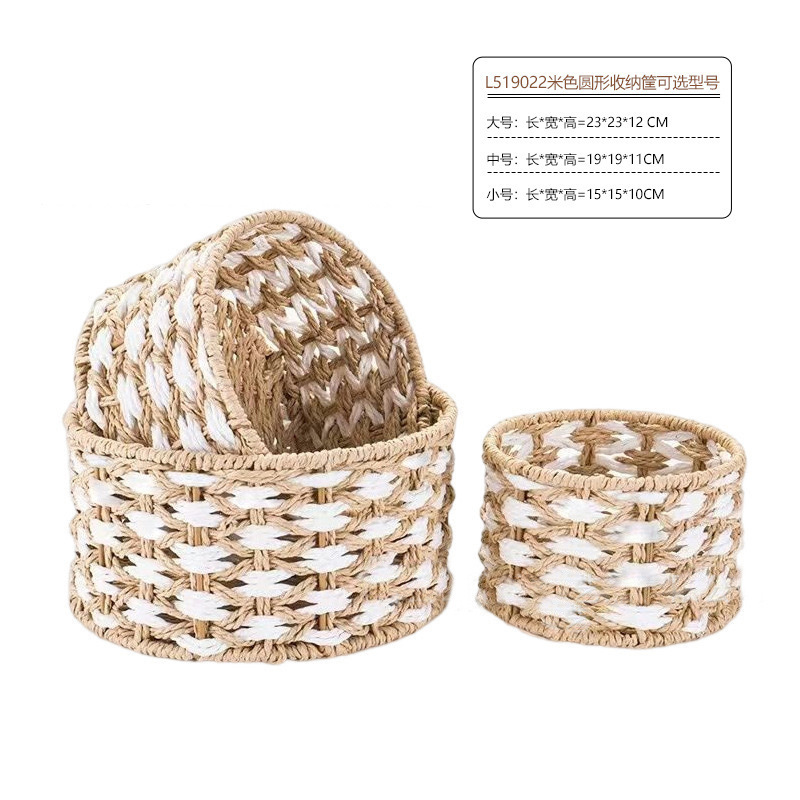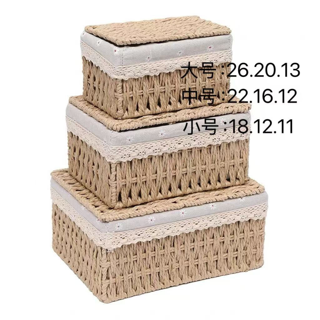 跨境批发田园藤编脏衣篮筐收纳筐化妆品首饰收纳篮布艺草编织篮子