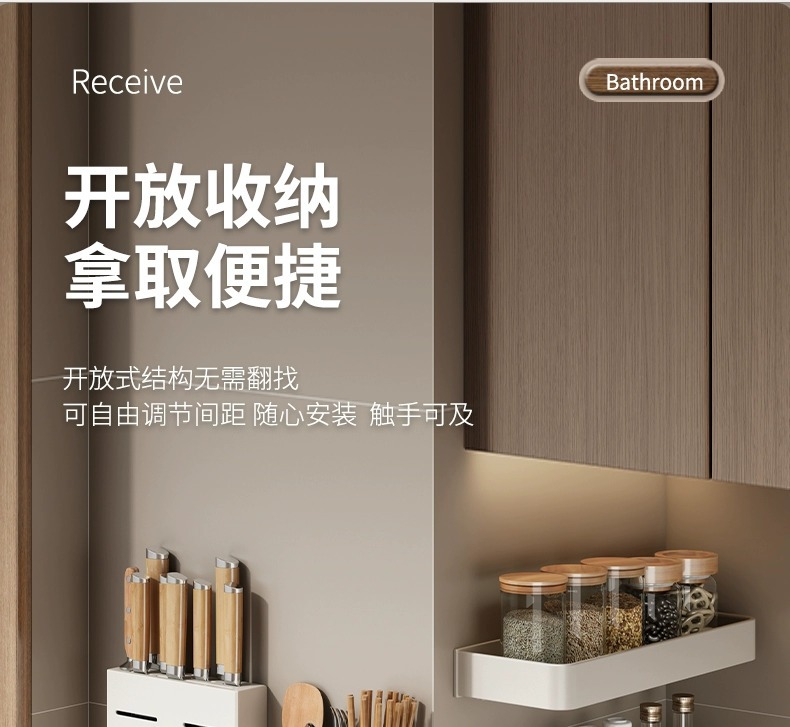 白色厨房置物架壁挂式免打孔家用太空铝调味品转角菜板收纳调料架