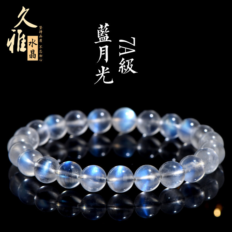 久雅水晶 天然奶油体蓝月光手链 清新蓝色月光石手链 厂家直销