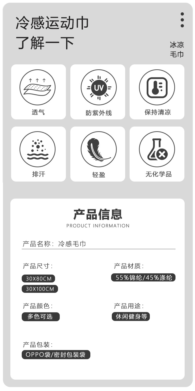 涤锦高版本 专注品牌代工 冰丝冷感毛巾定制logo速干运动巾冰凉巾