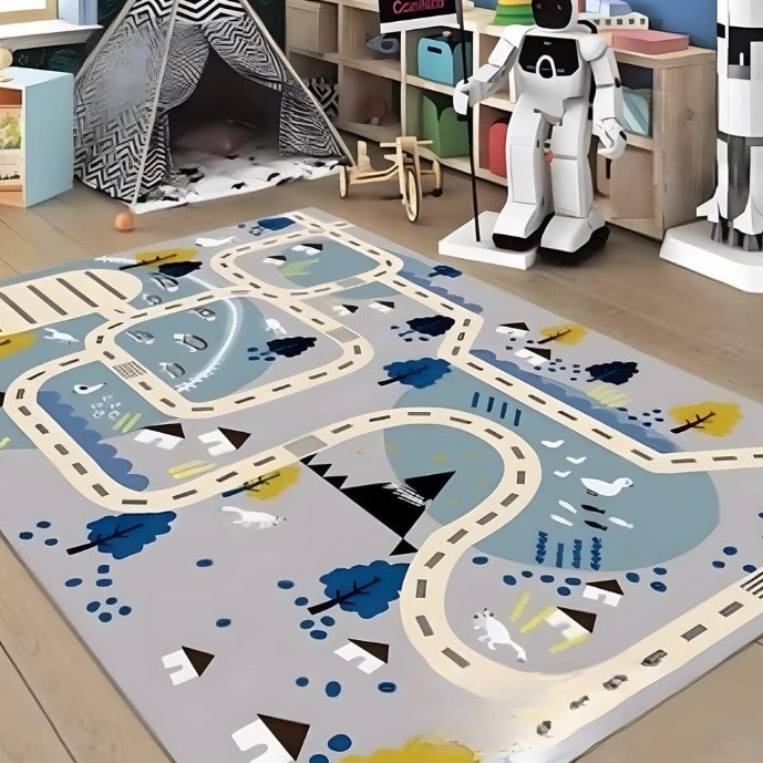 幼儿园数字地毯早教中心儿童地垫游戏益智水洗轨道迷宫水晶绒地毯