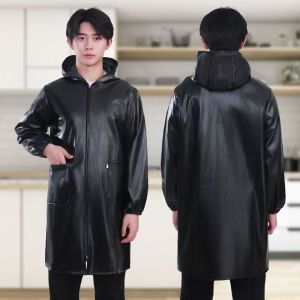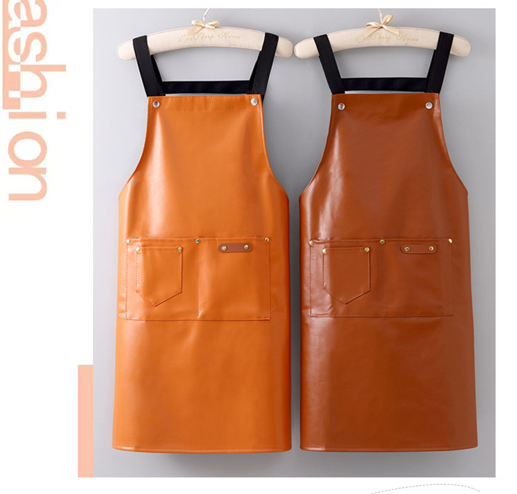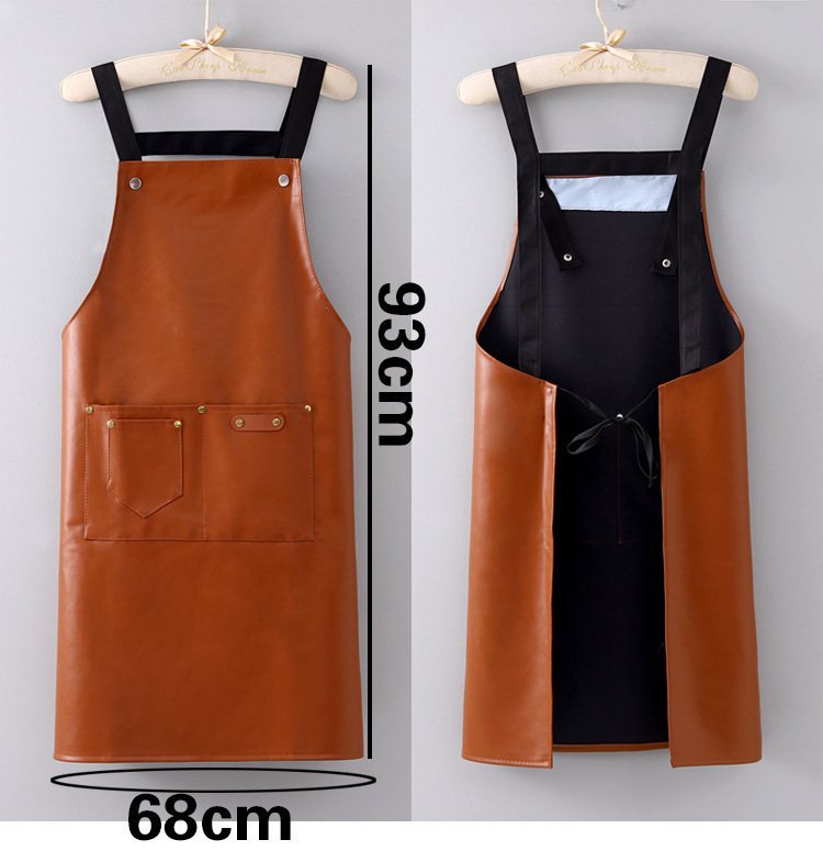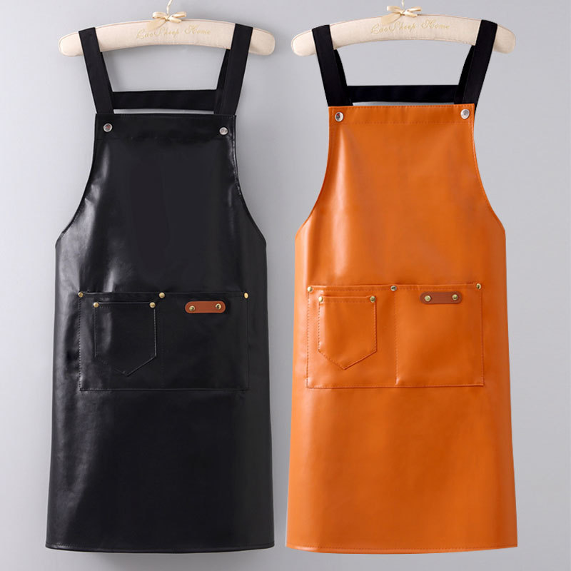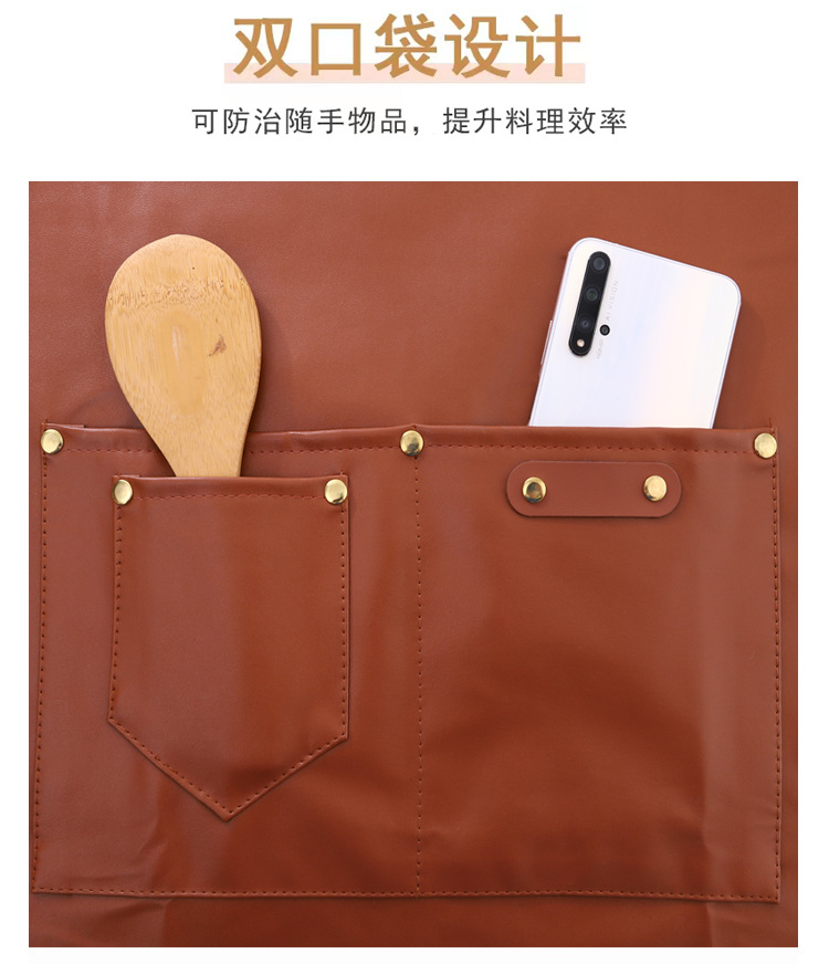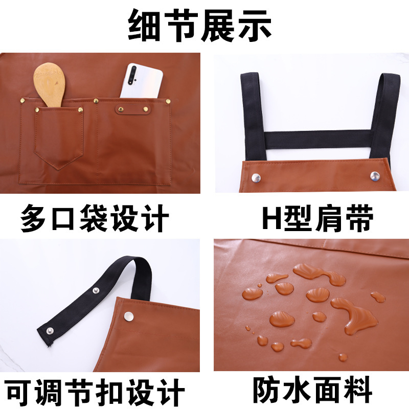 批发皮革软皮围裙家用厨房做饭防水防油时尚洋气上班PU工作服围腰