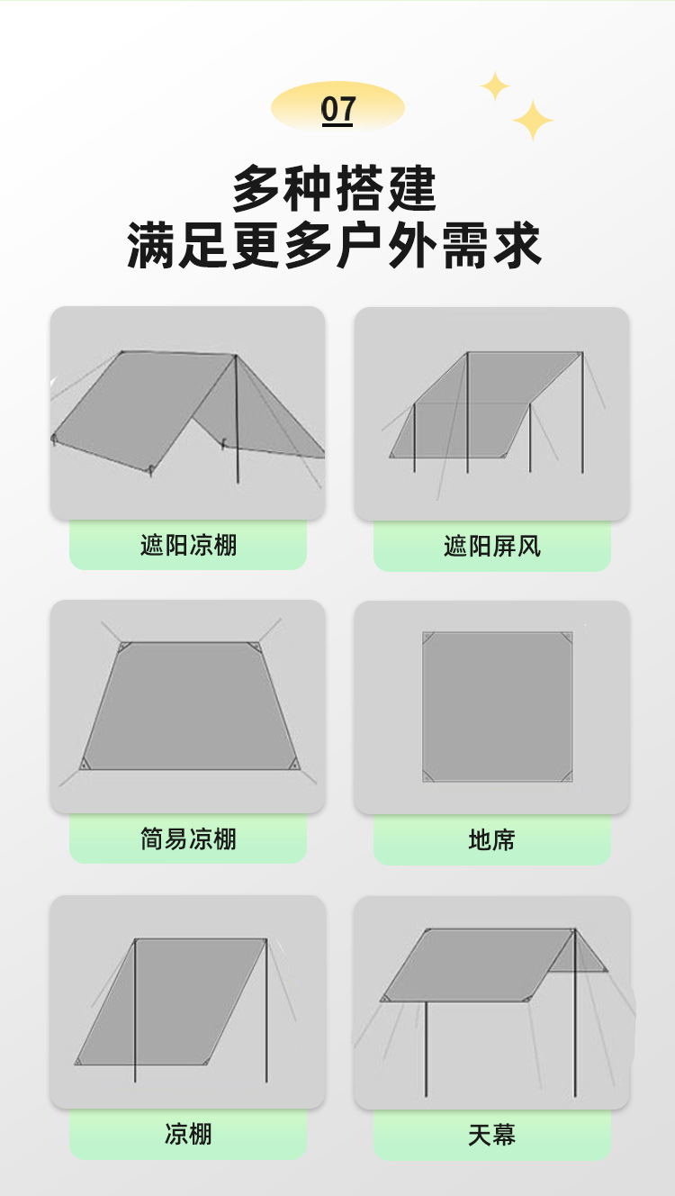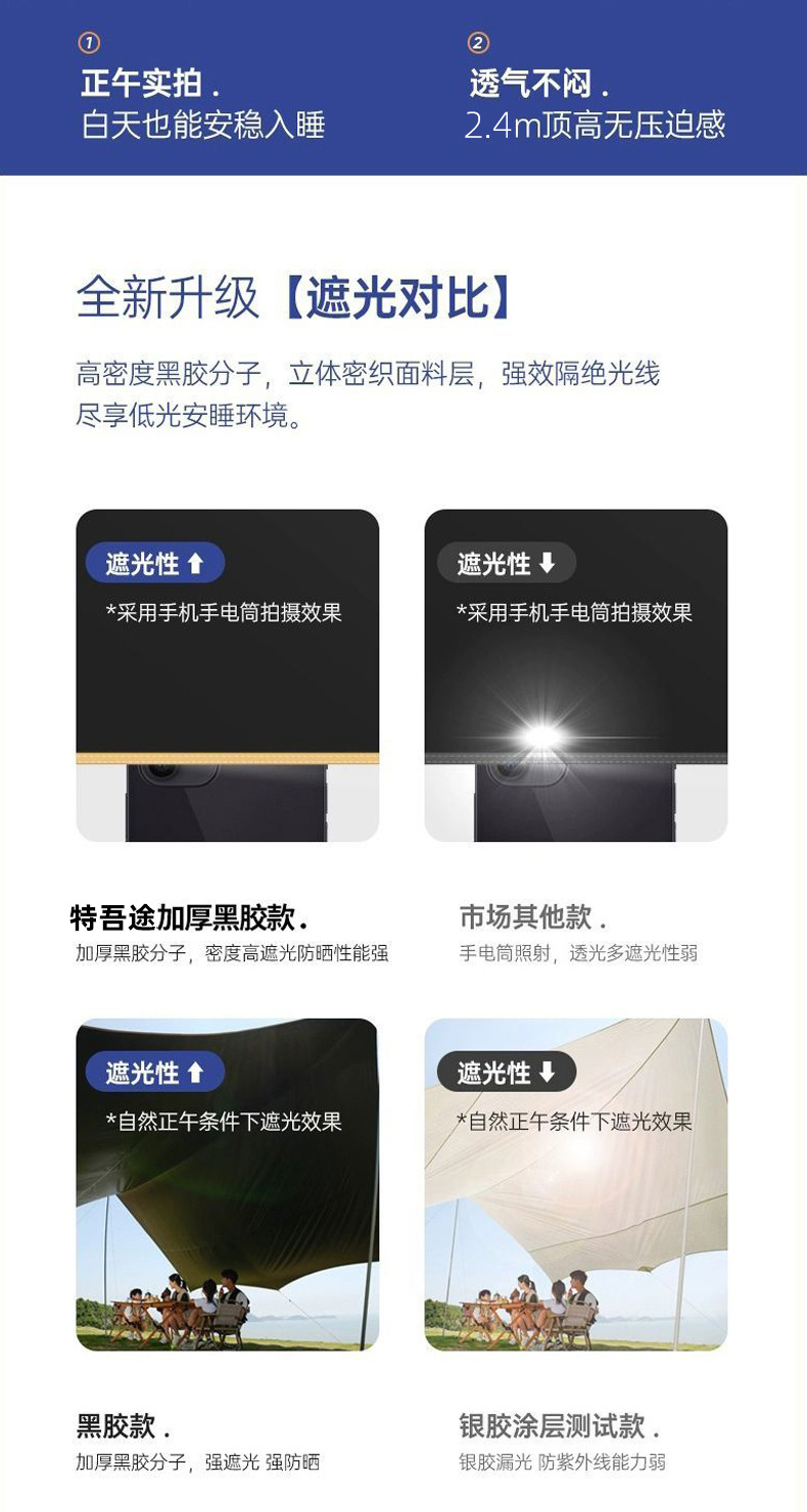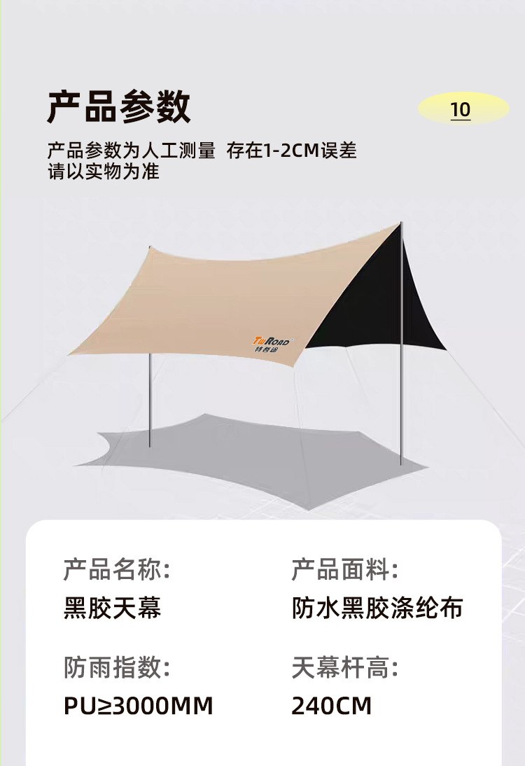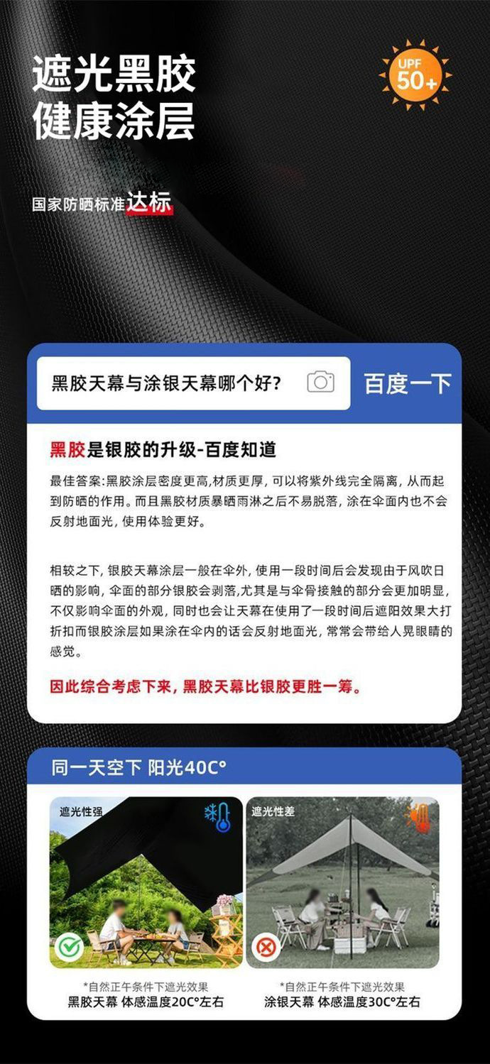天幕帐篷户外露营遮阳六角黑胶涂银加厚幕布防晒凉棚野营野餐装备