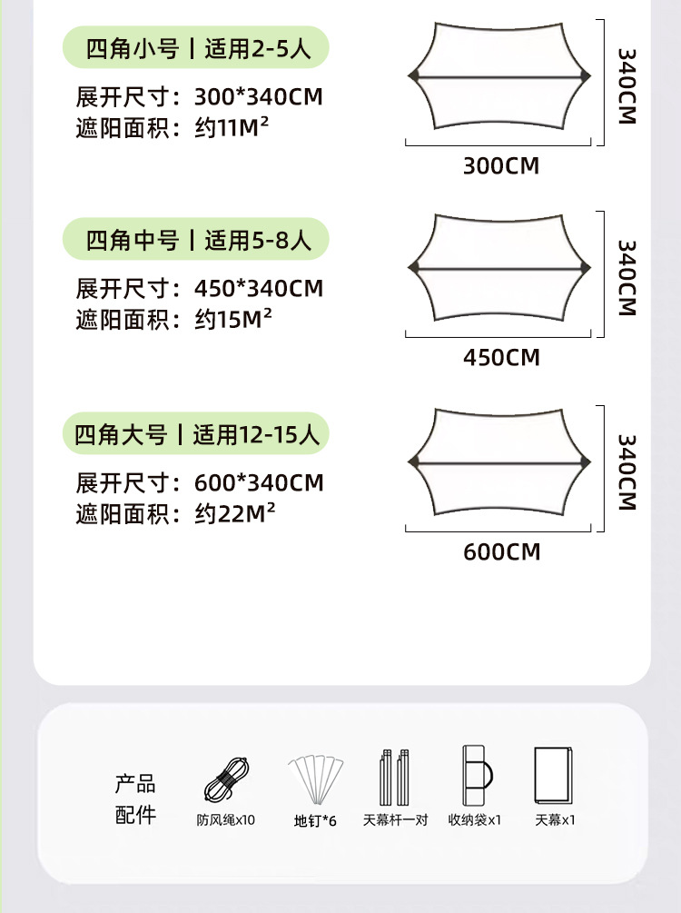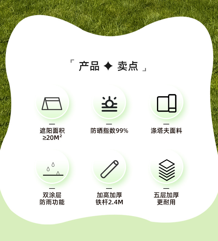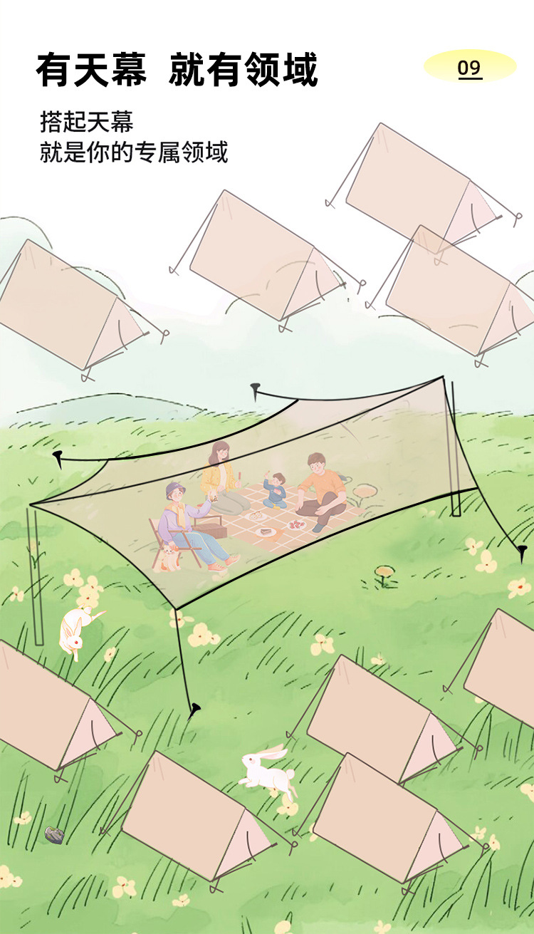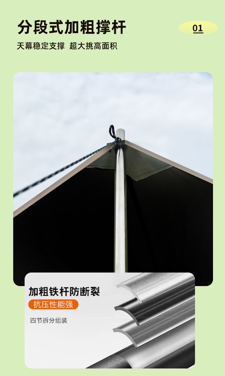 天幕帐篷户外露营遮阳六角黑胶涂银加厚幕布防晒凉棚野营野餐装备
