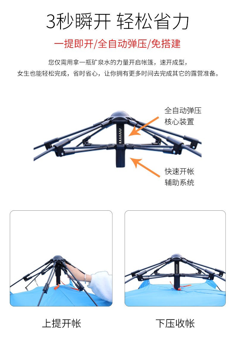 1-2人速开双人露营沙滩帐篷户外防晒加厚防雨一门一窗全自动帐篷