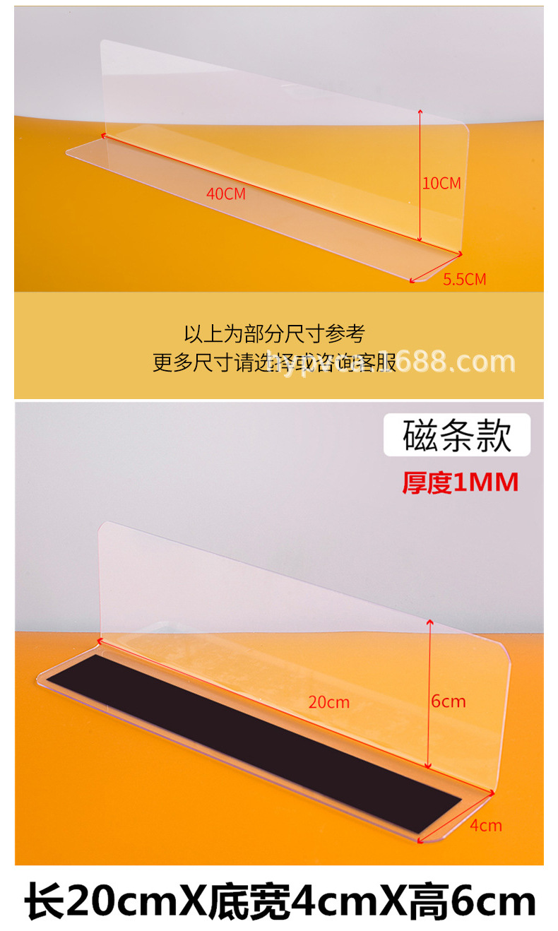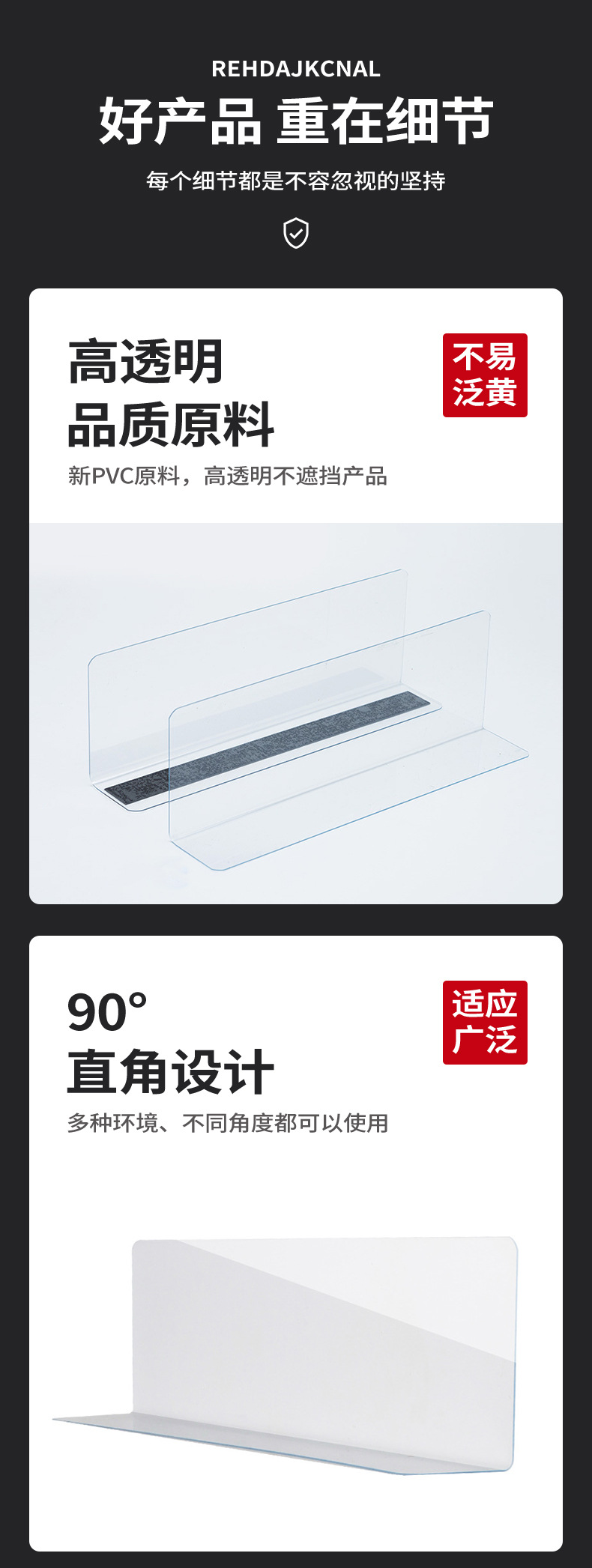 超市货架分隔板 超市商品挡板L型PVC透明塑料便利店陈列货架挡板